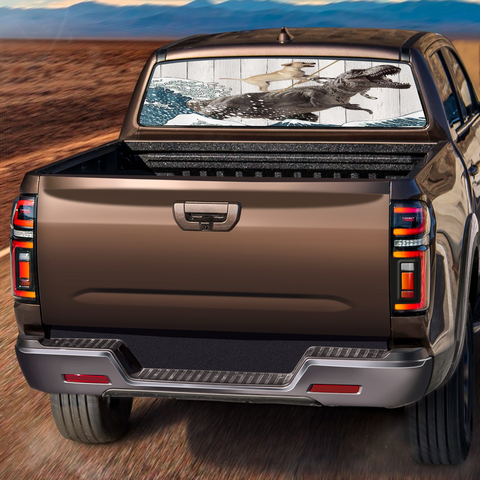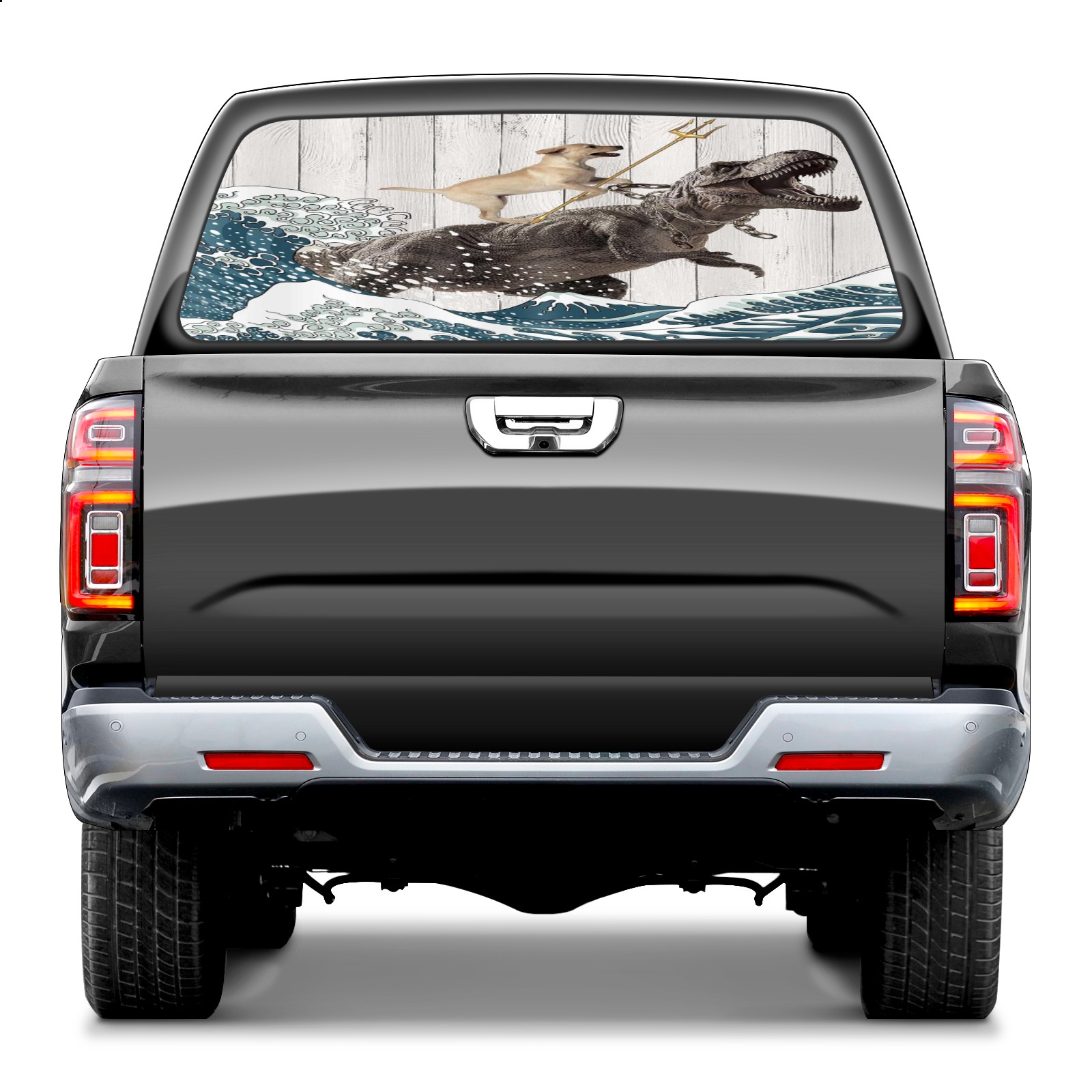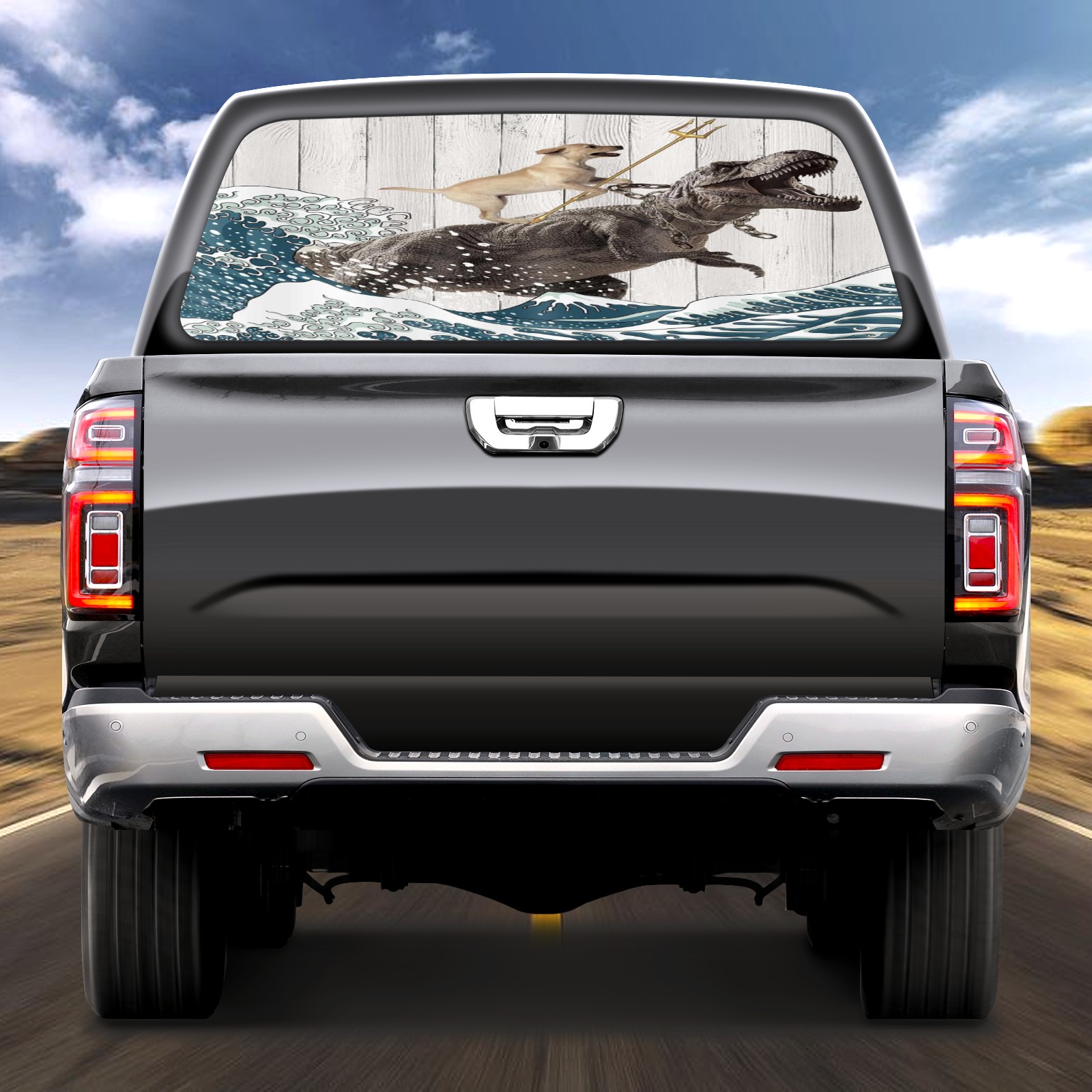 Dog Vs. Waves Rear Window Decals for Trucks- Pickup Car Window Stickers Decal- Truck Back Window Tint Decal Graphic Perforated Vinyl Truck Stickers 66" X 22"
