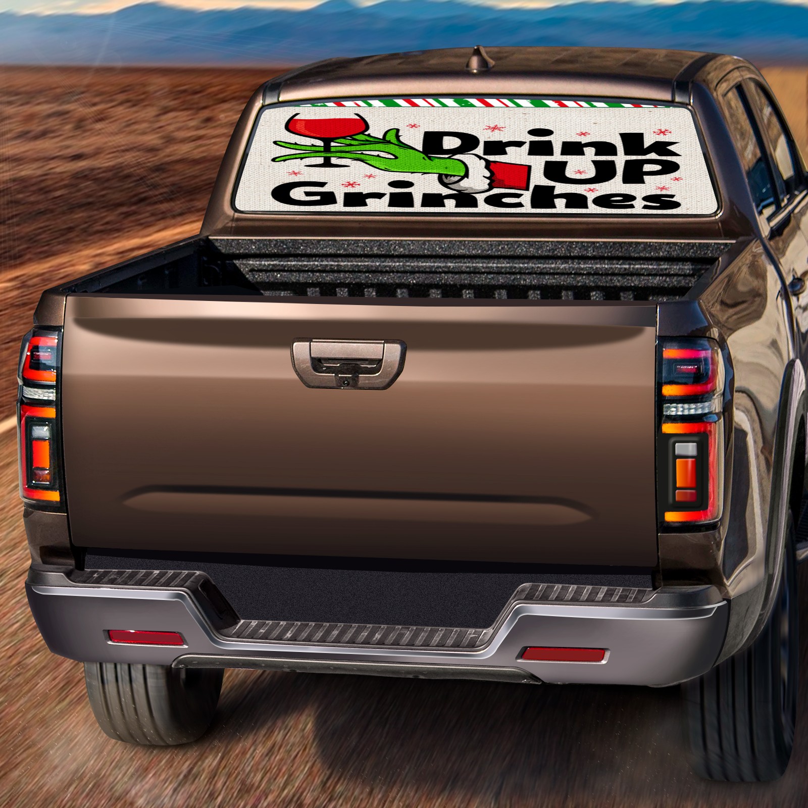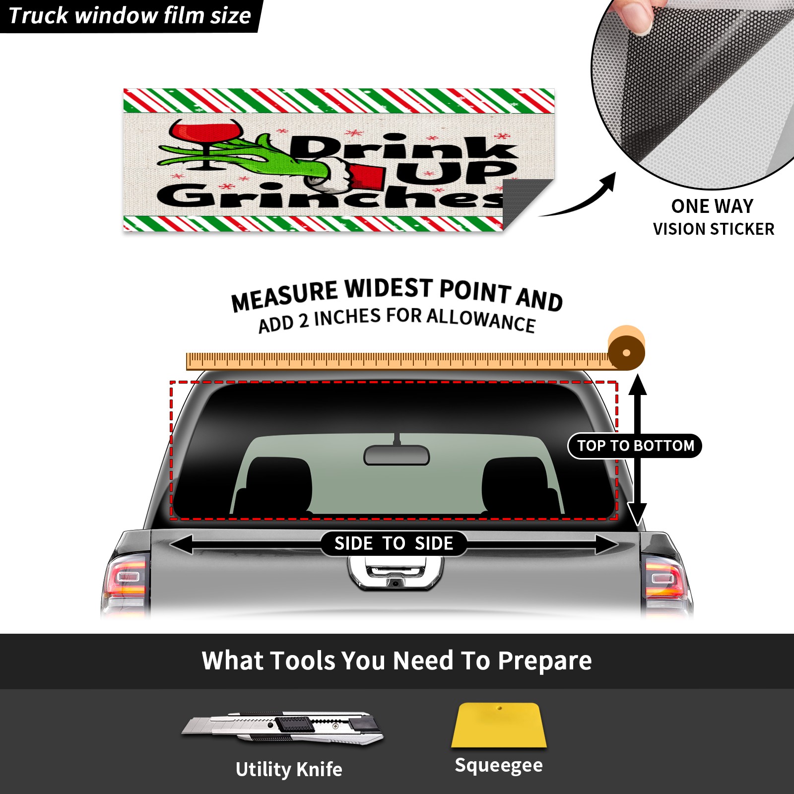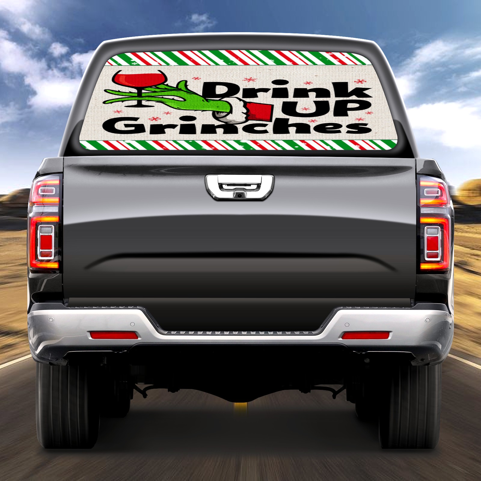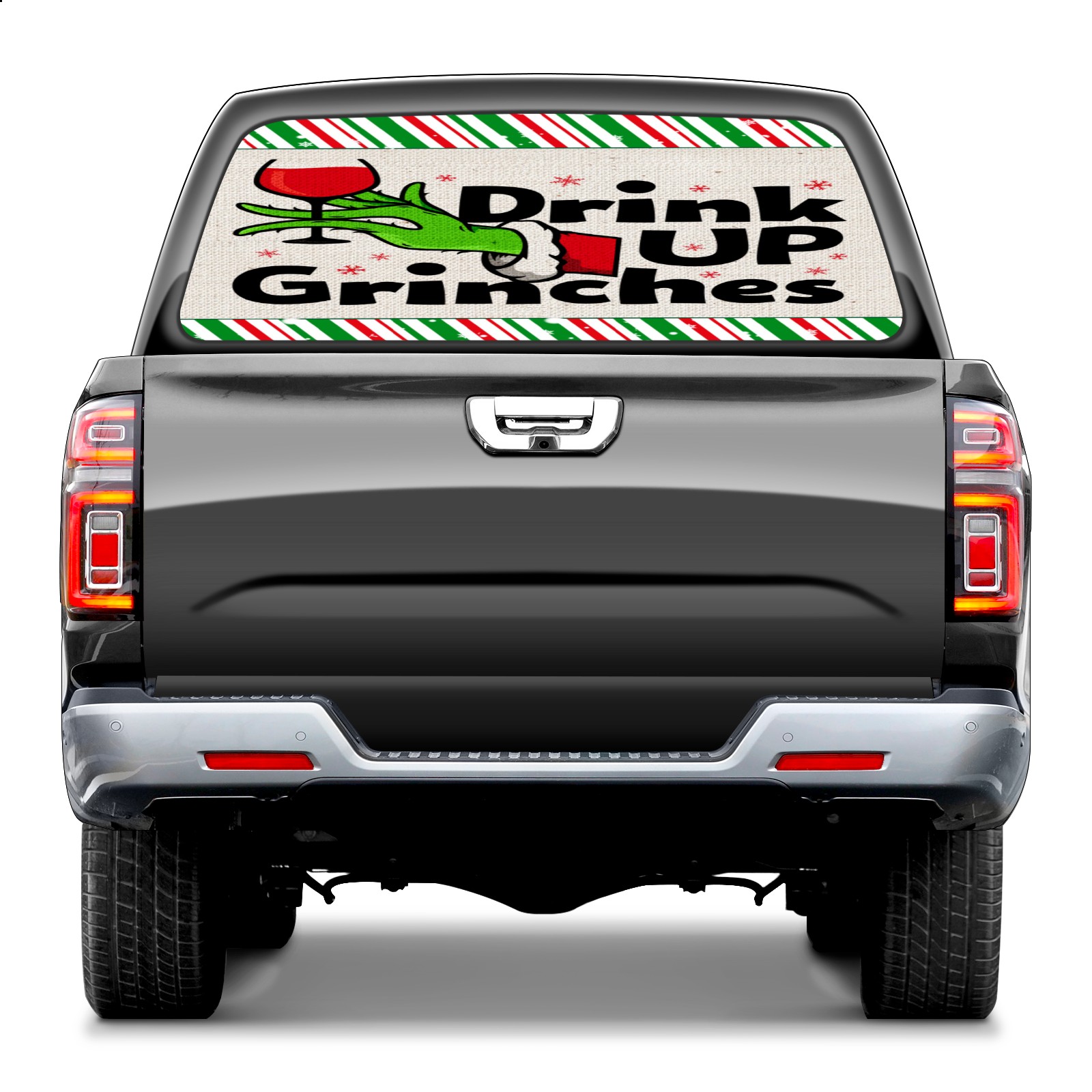 Christmas Drink Up Grinches Rear Window Decals for Trucks- Pickup Car Window Stickers Decal- Truck Back Window Tint Decal Graphic Perforated Vinyl Truck Stickers 66" X 22"