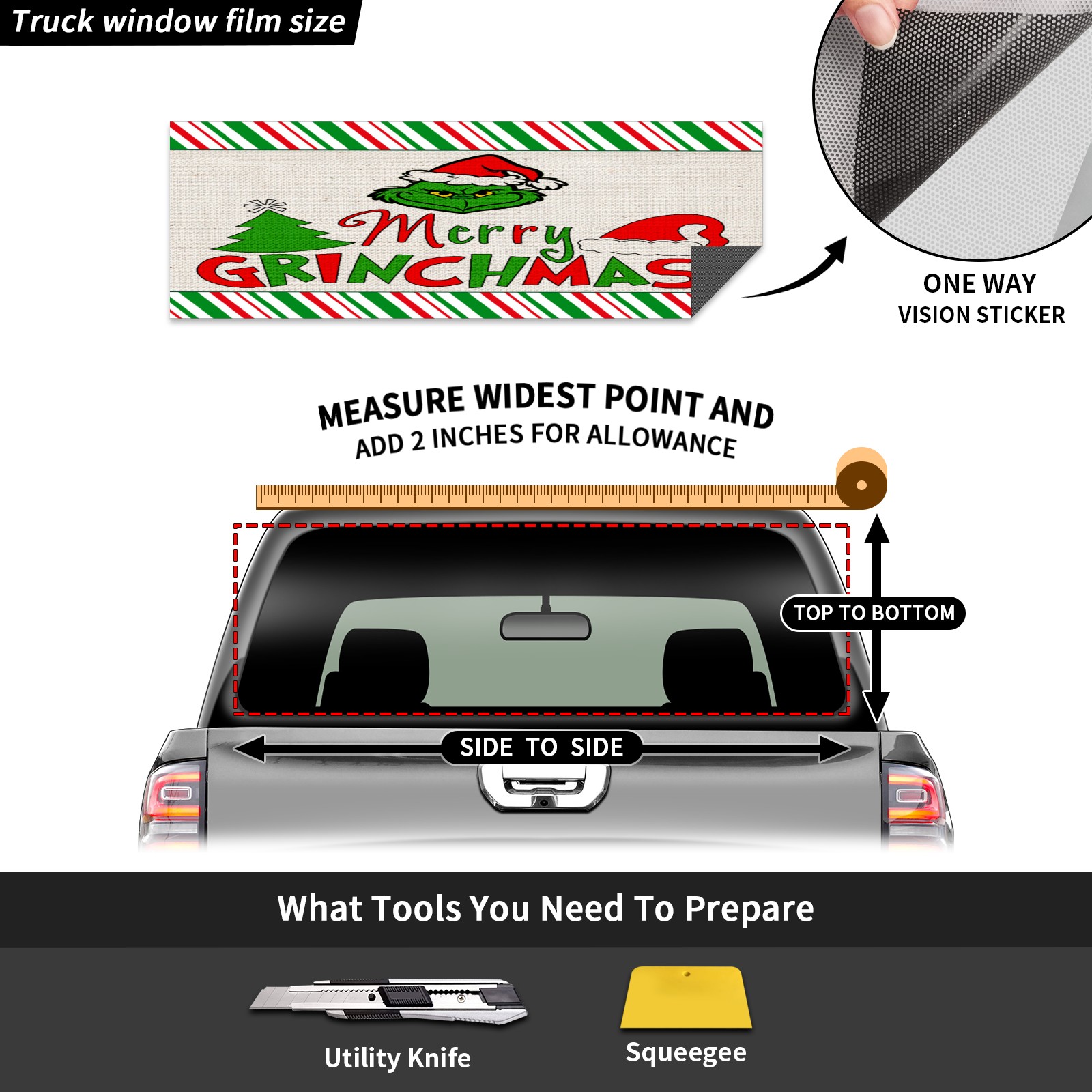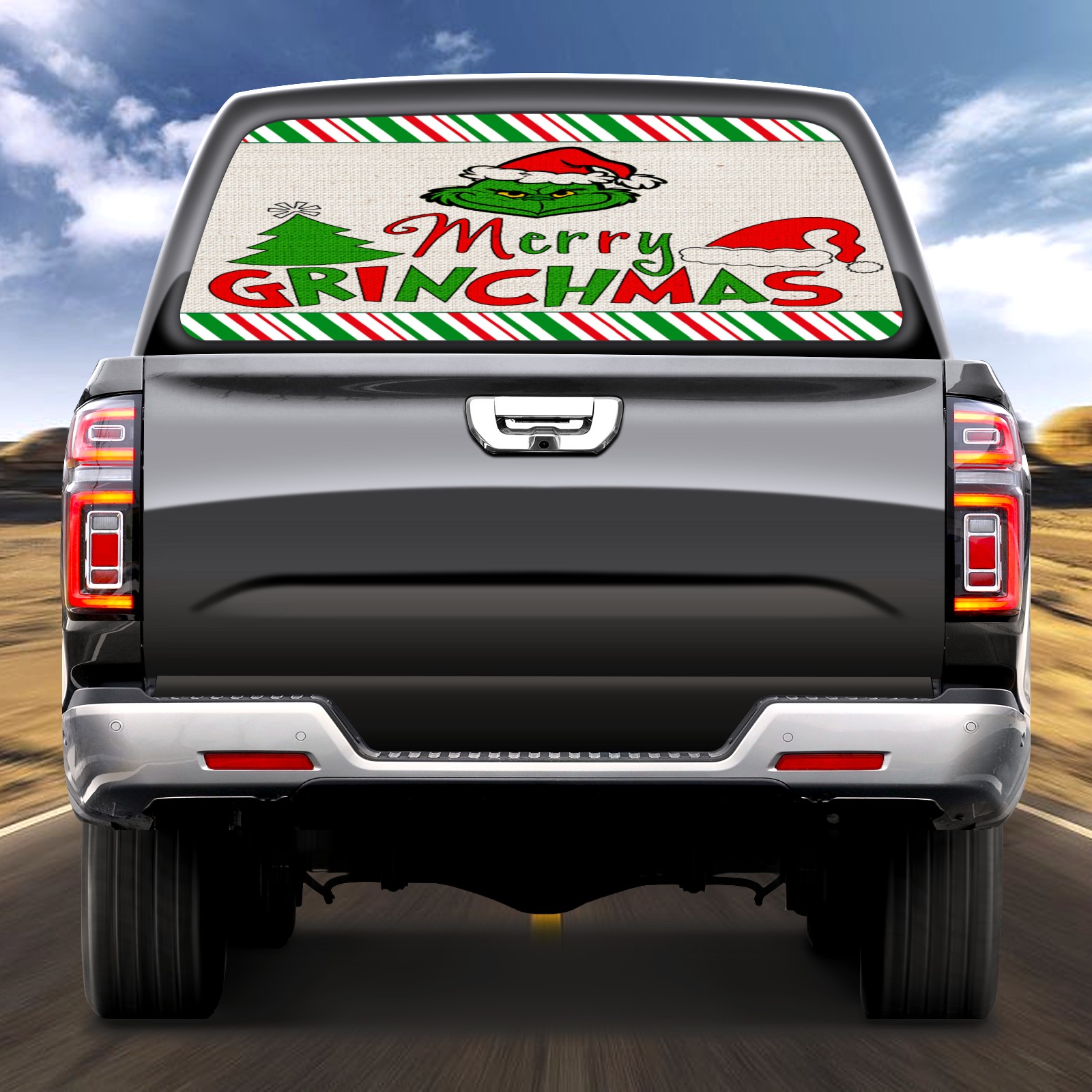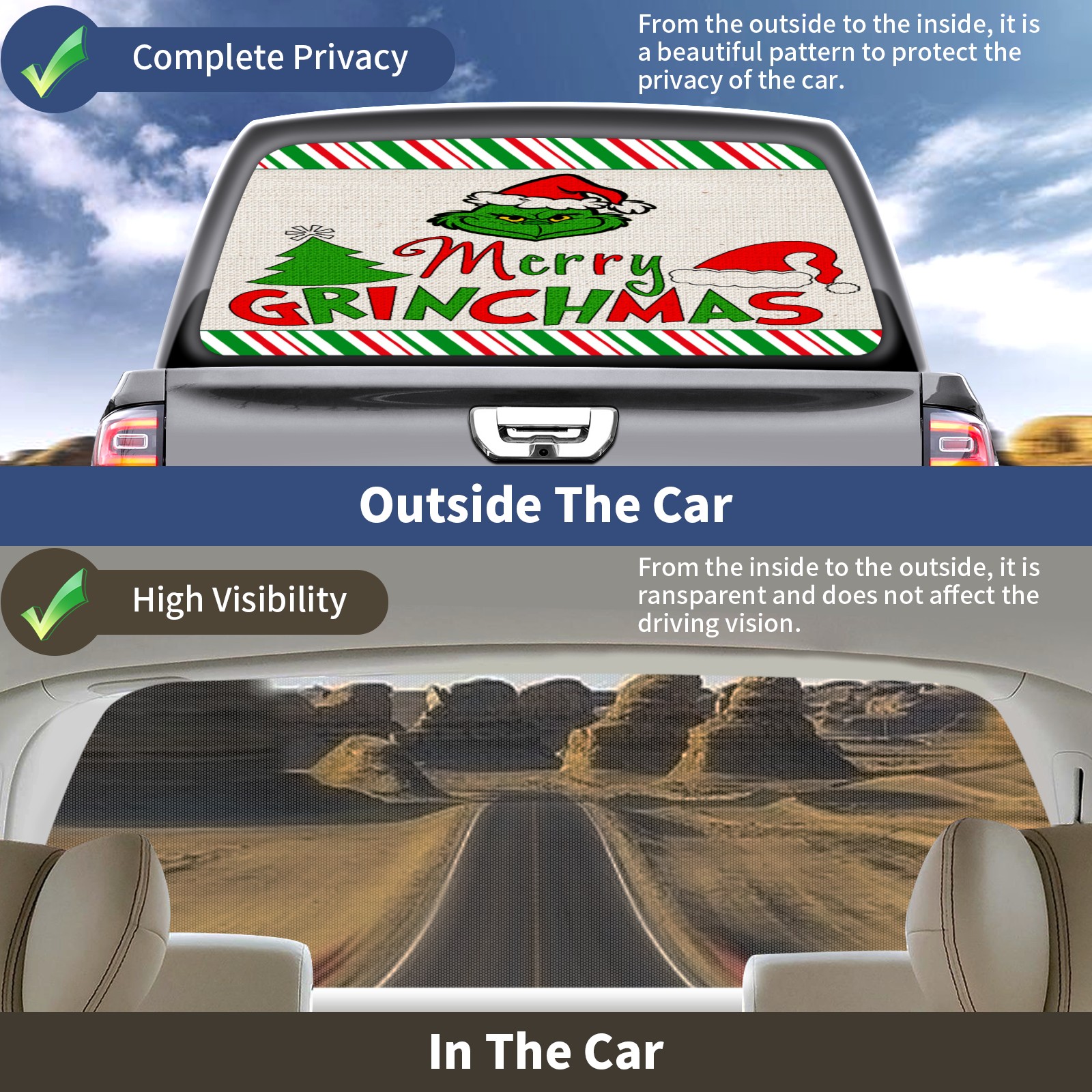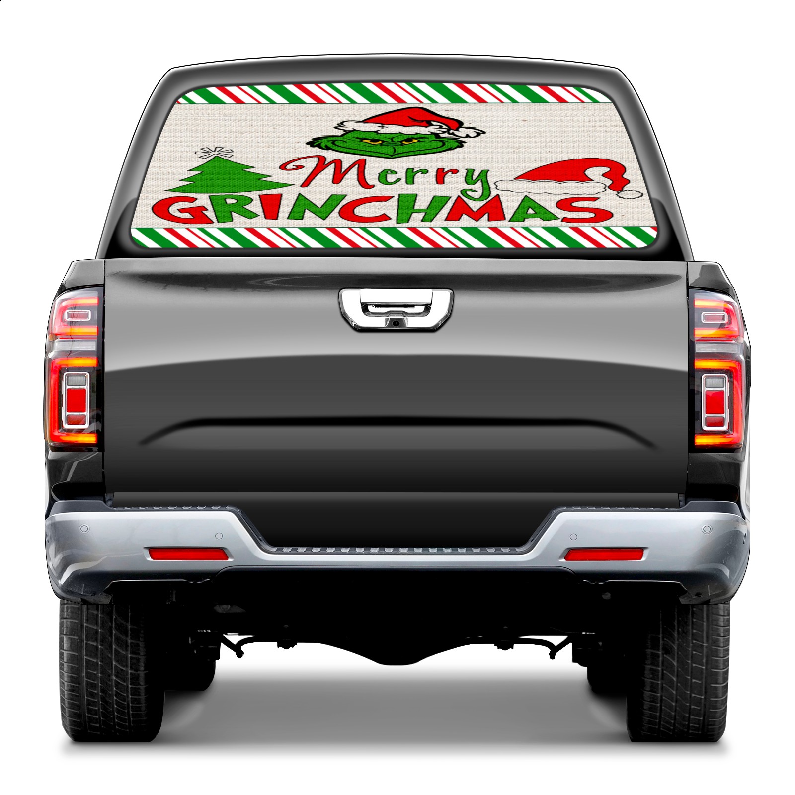 Christmas Christmas Grinchmas (1) Rear Window Decals for Trucks- Pickup Car Window Stickers Decal- Truck Back Window Tint Decal Graphic Perforated Vinyl Truck Stickers 66" X 22"