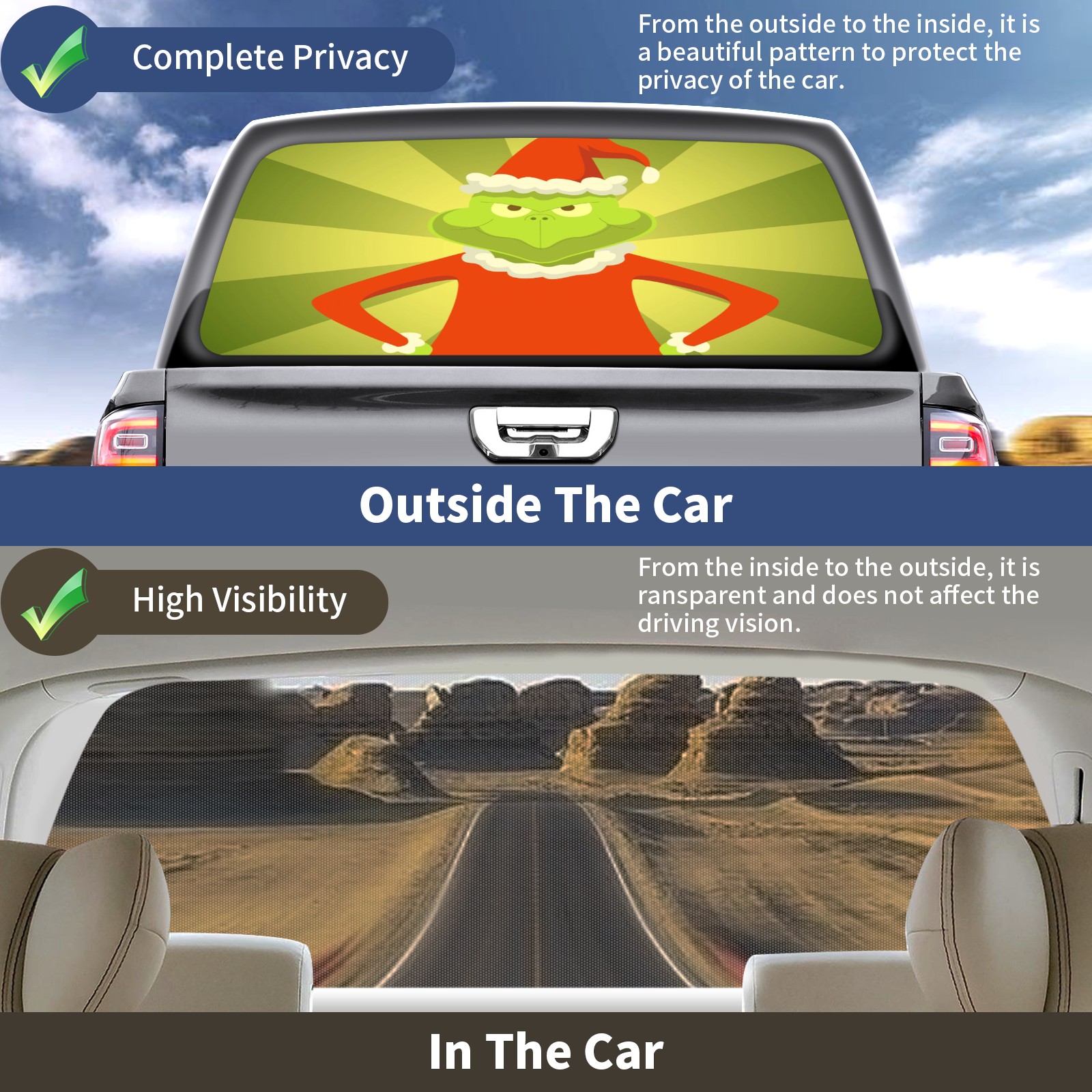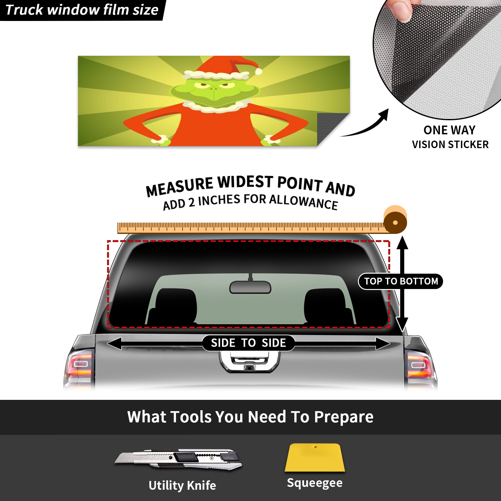 The Grinch Vector Rear Window Decals for Trucks- Pickup Car Window Stickers Decal- Truck Back Window Tint Decal Graphic Perforated Vinyl Truck Stickers 66" X 22"