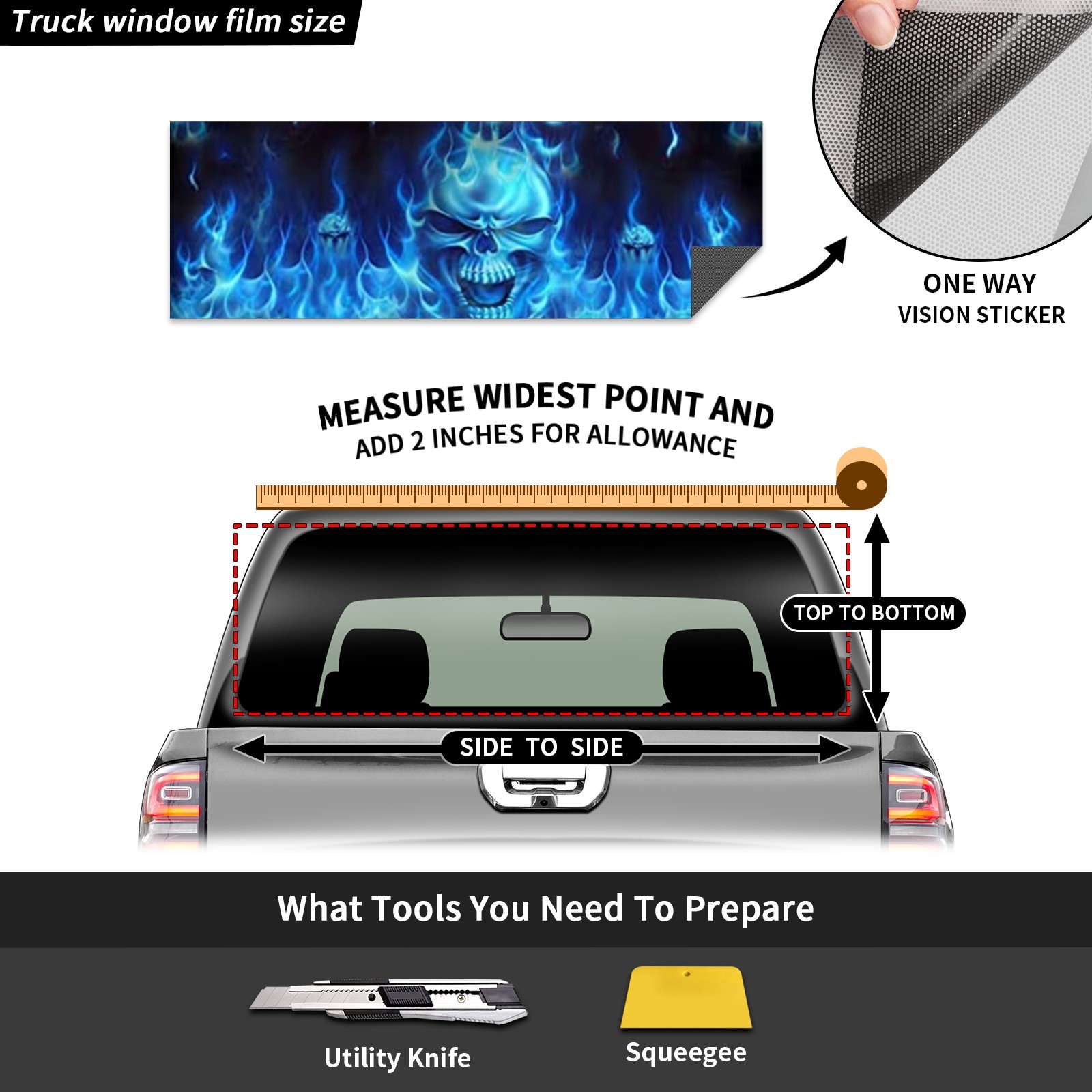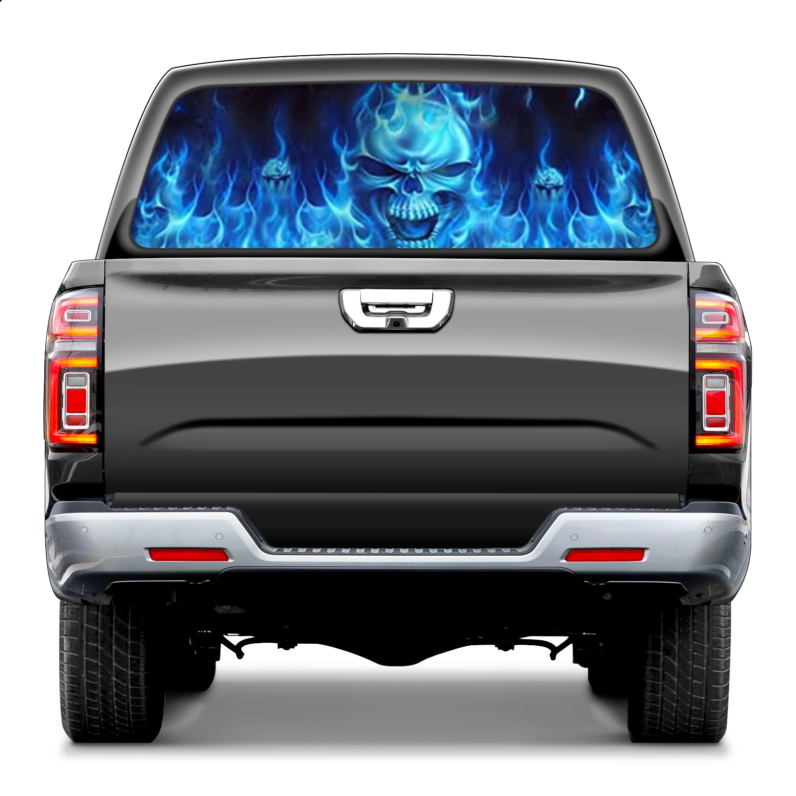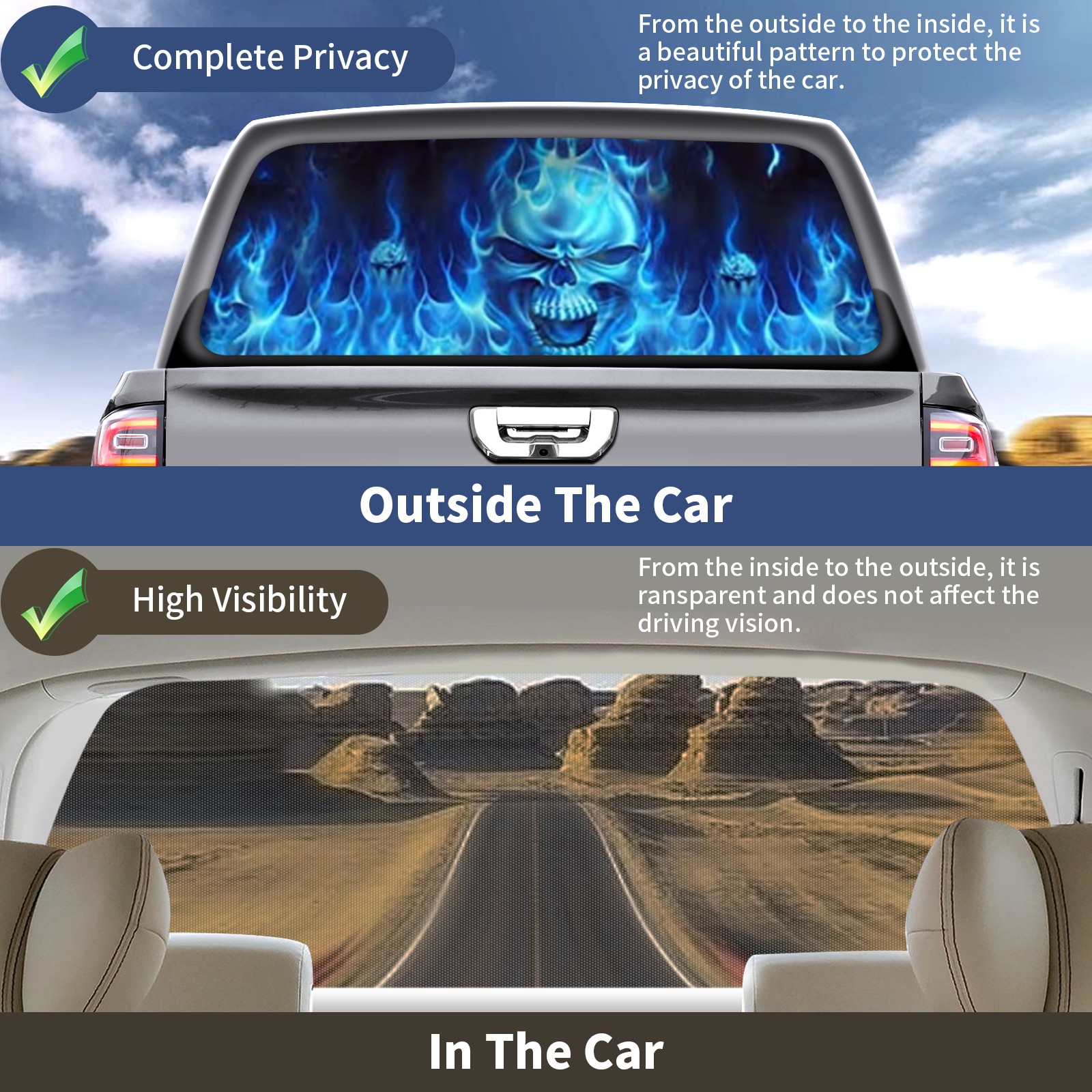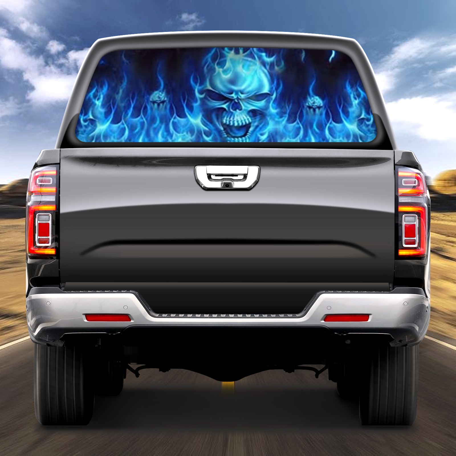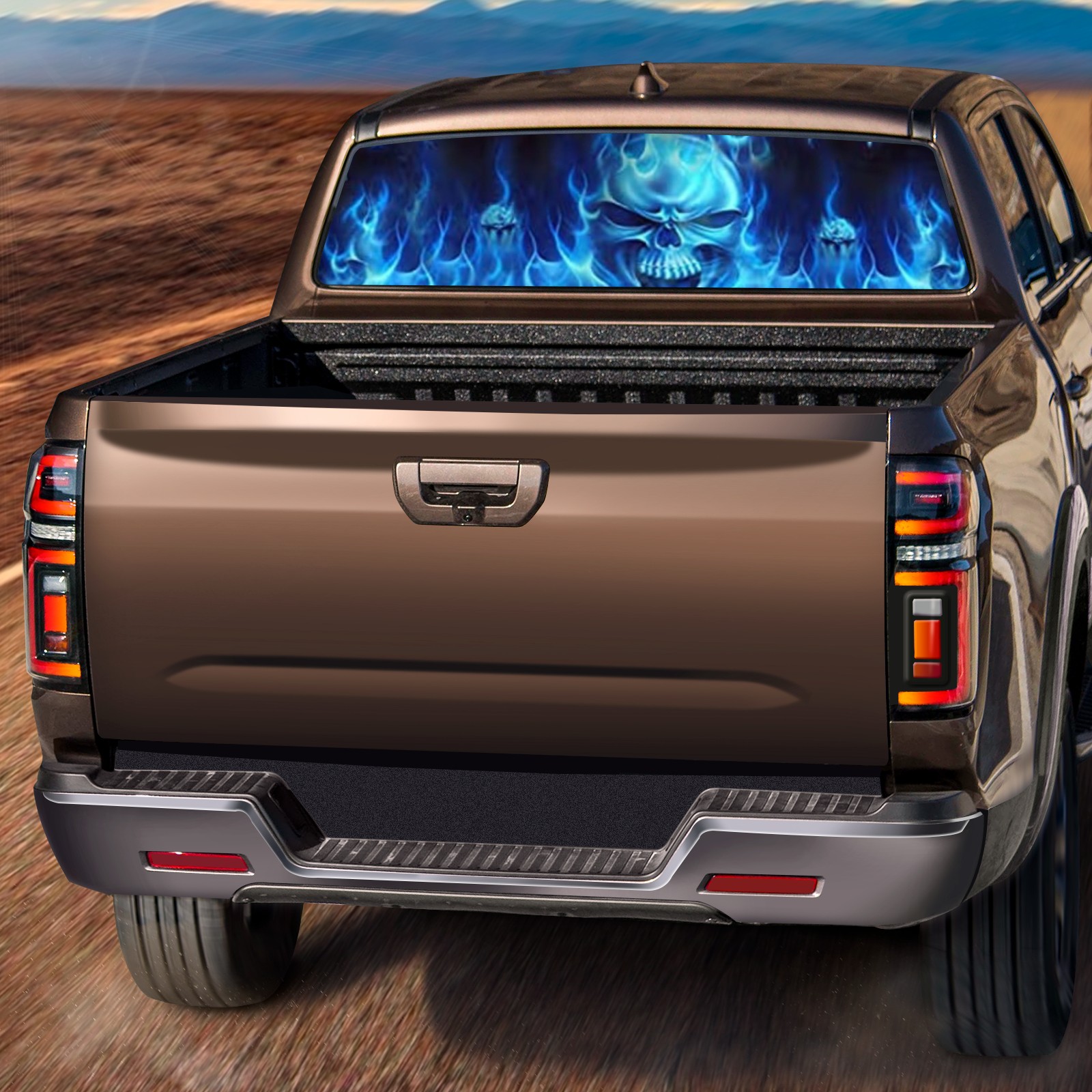 skull Rear Window Decals for Trucks- Pickup Car Window Stickers Decal- Truck Back Window Tint Decal Graphic Perforated Vinyl Truck Stickers 66" X 22"
