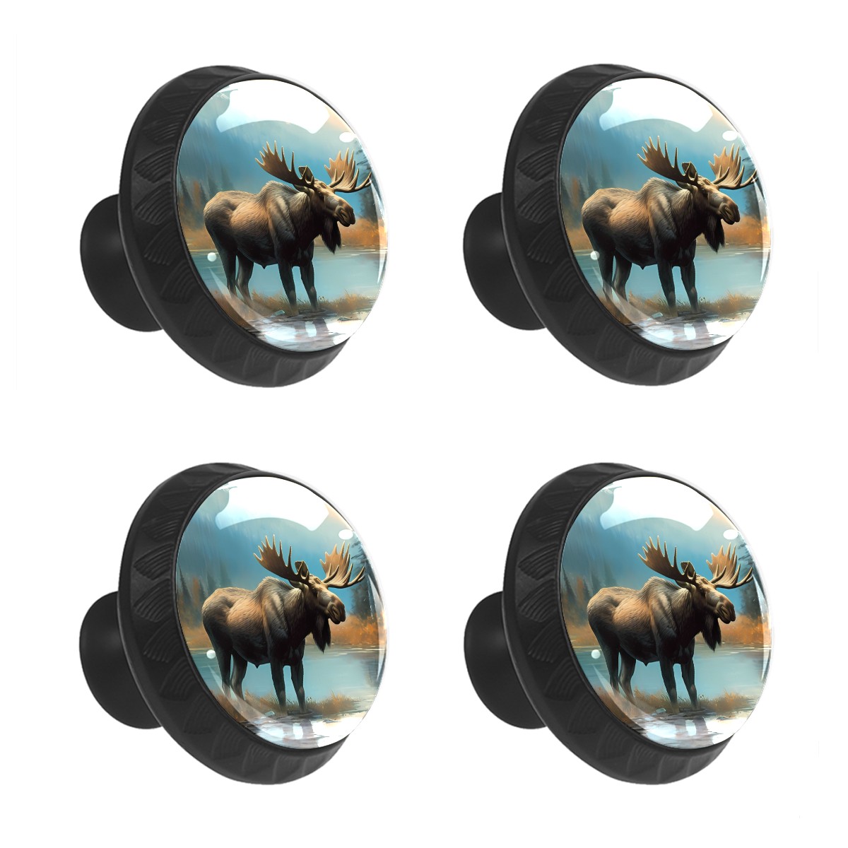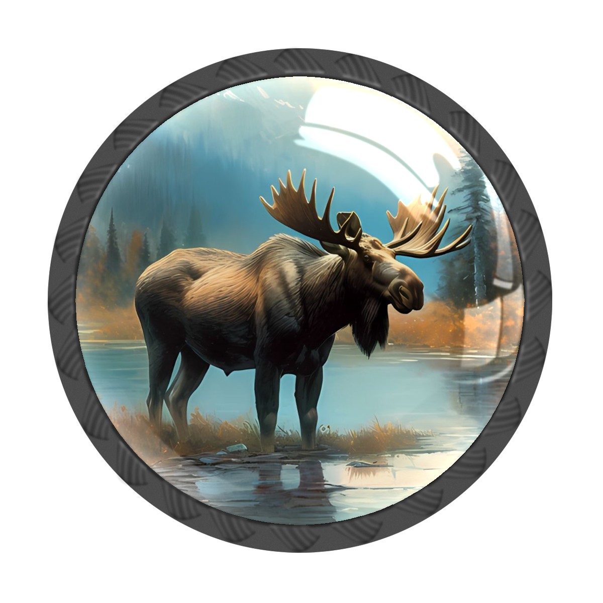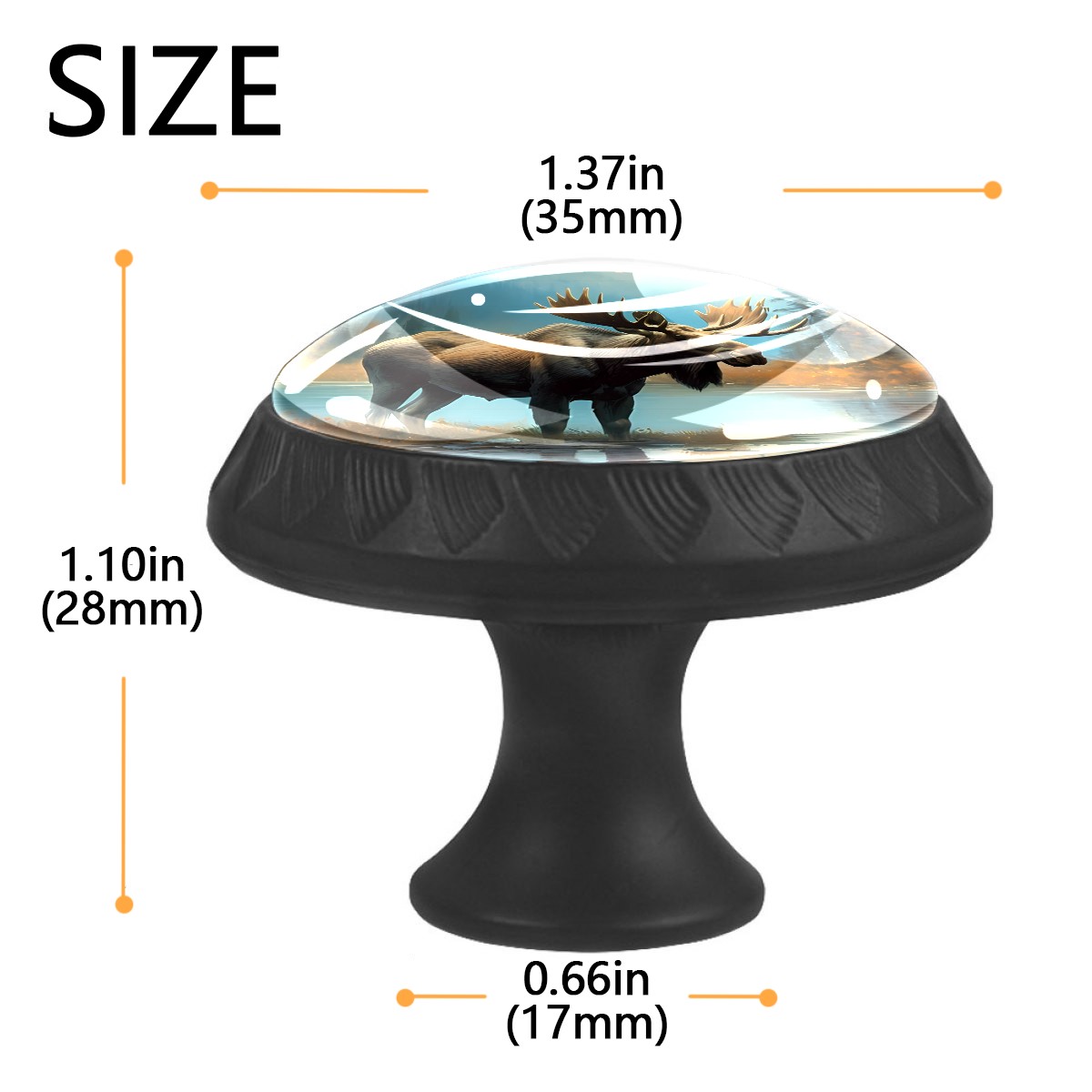 4 Pack Cabinet Knobs Moose In River Drawer Pulls Crystal Glass Round Knobs Handles for Dressers Drawer Bathroom Kitchen Cupboards Wardrobes Hardware Furniture Knobs
