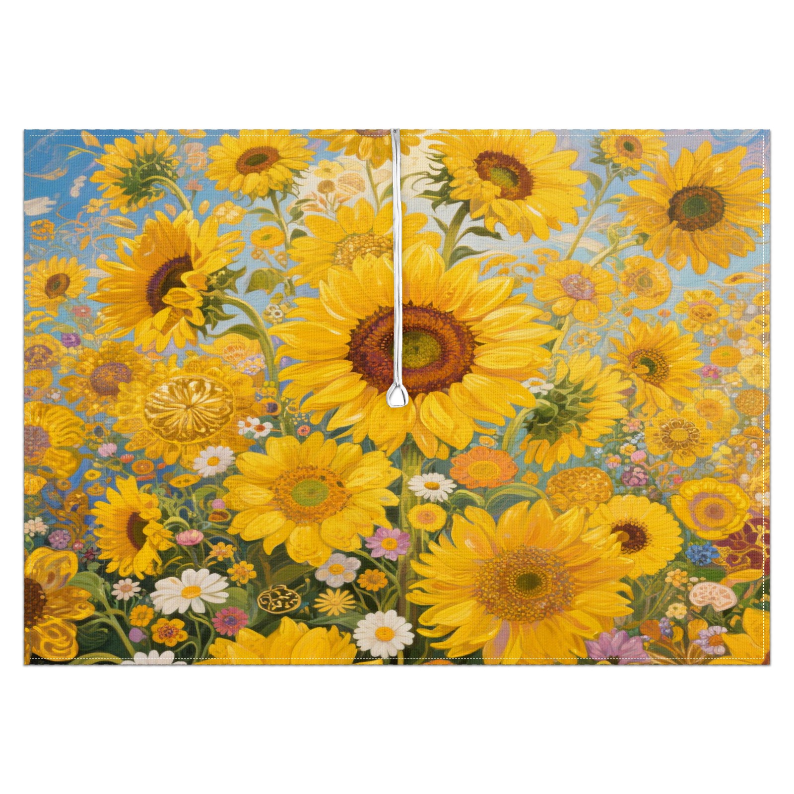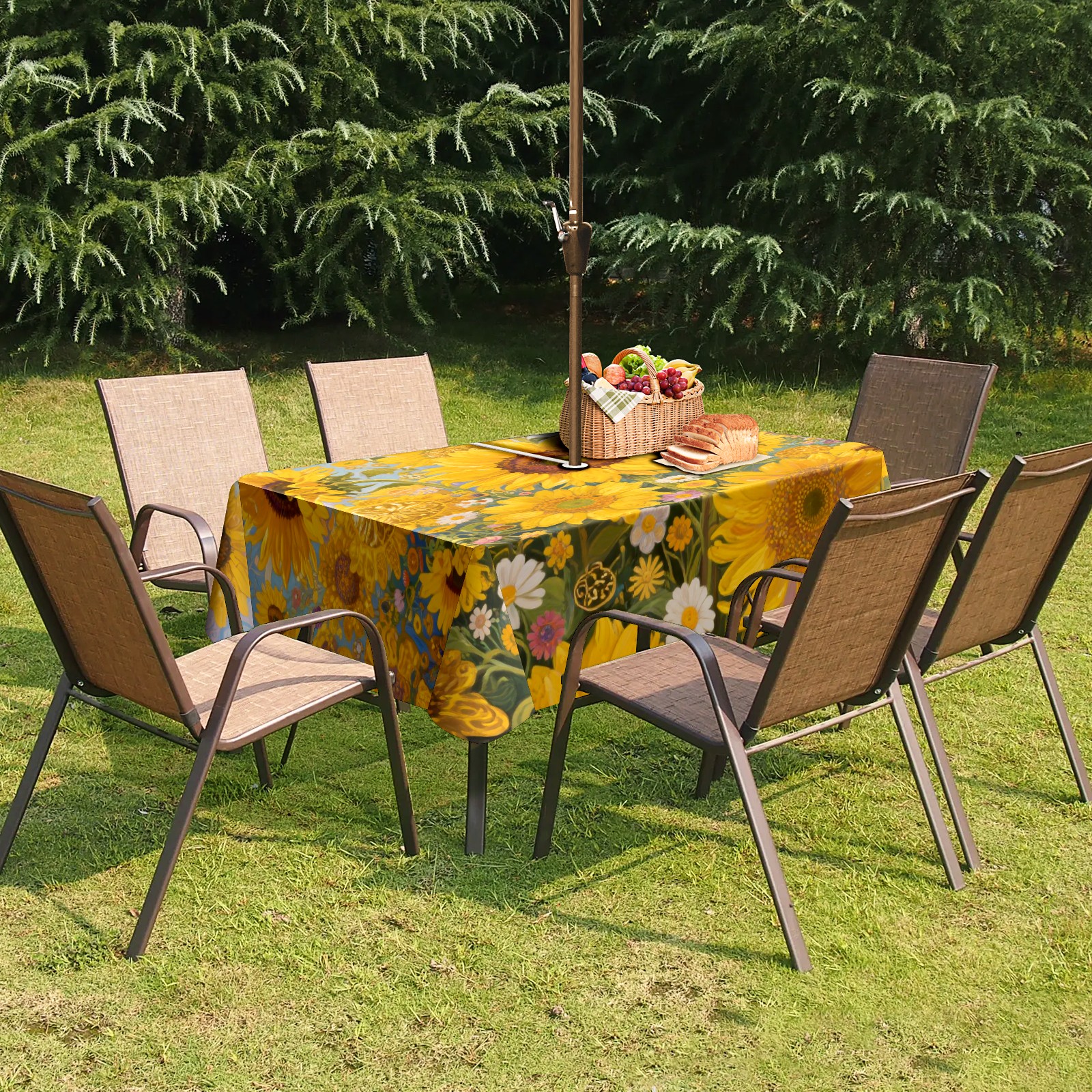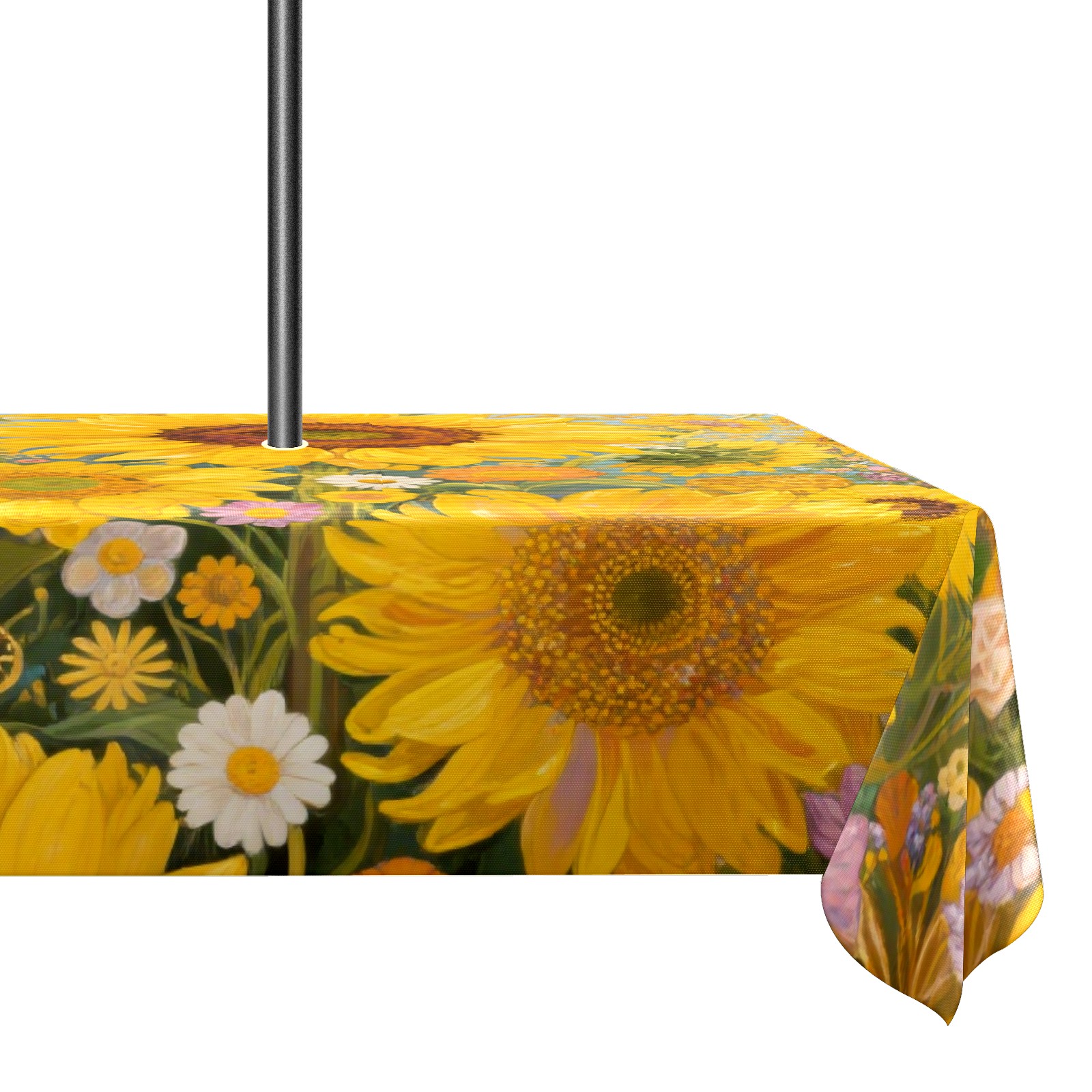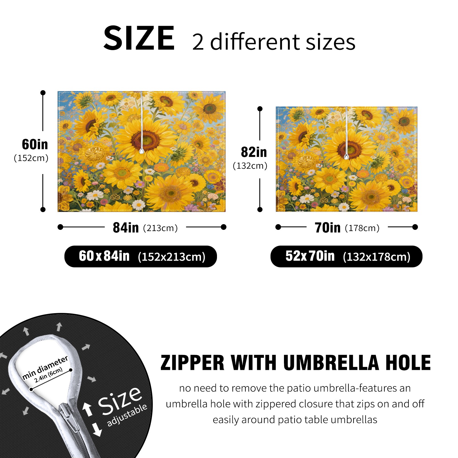Outdoor Tablecloth with Zipper and Umbrella Eyelets Sunflower Ideal Tablecloth for Picnic, Camping, Terrace and Garden Use (52x70in)