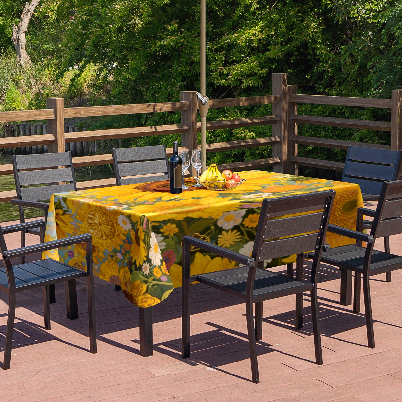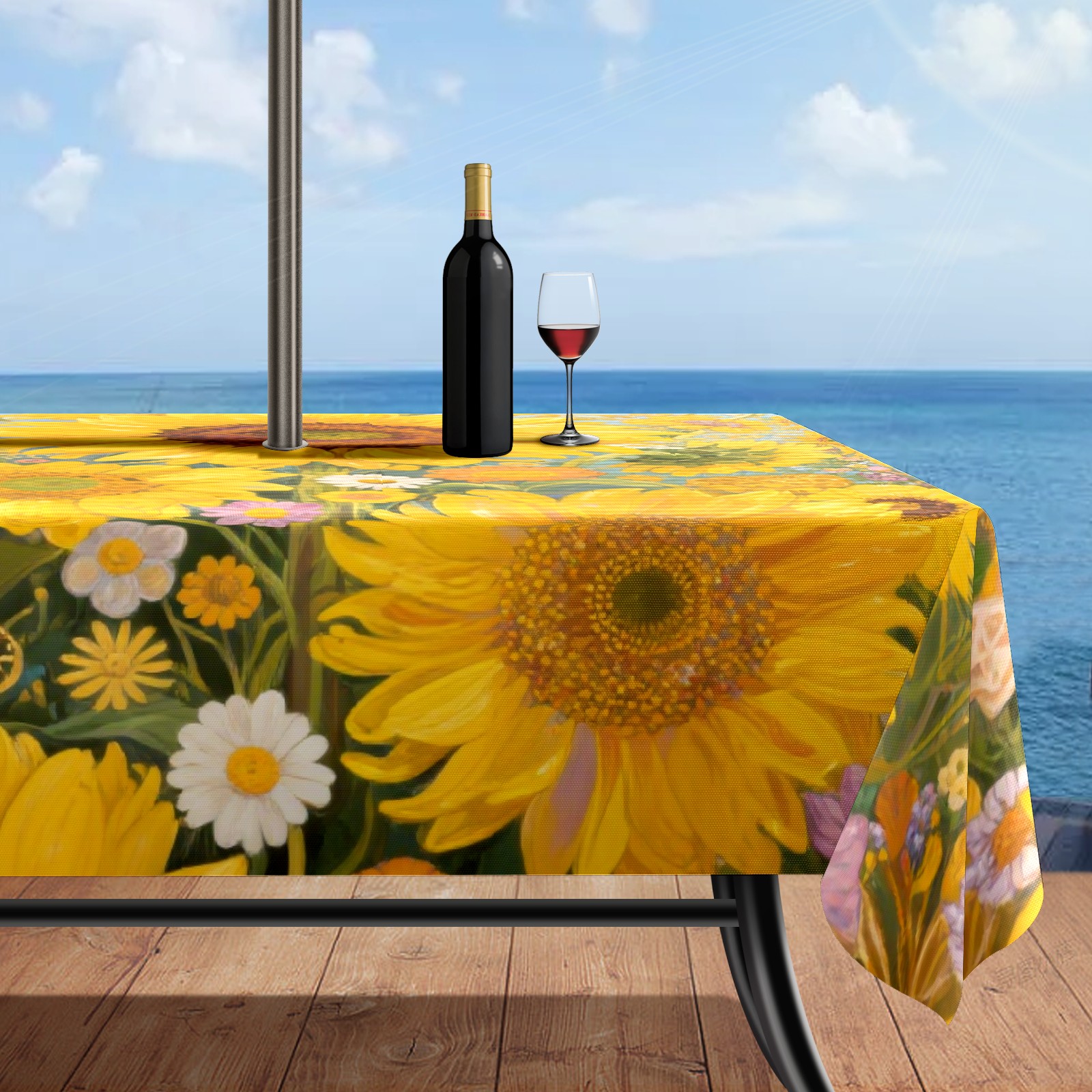 • <p>This versatile outdoor tablecloth with umbrella eyelets is available in two sizes to perfectly fit everything from small patio tables to large outdoor dining tables, easily meeting the needs of different spaces. Made of durable polyester with strong stitching, the tablecloth is soft yet long-lasting, effectively protecting furniture from scratches, stains, and sun damage. Available in a variety of vibrant colors and prints, it serves as both a practical protective item and a stylish decorative piece, adding a unique charm to parties, barbecues, and gatherings with family and friends. A convenient zippered umbrella eyelet in the center allows for easy attachment to umbrella poles, creating a clean and seamless outdoor dining environment. To extend its lifespan, we recommend washing in cold water and do not bleach – this practical and decorative tablecloth is the ideal choice for all kinds of outdoor gatherings!</p>