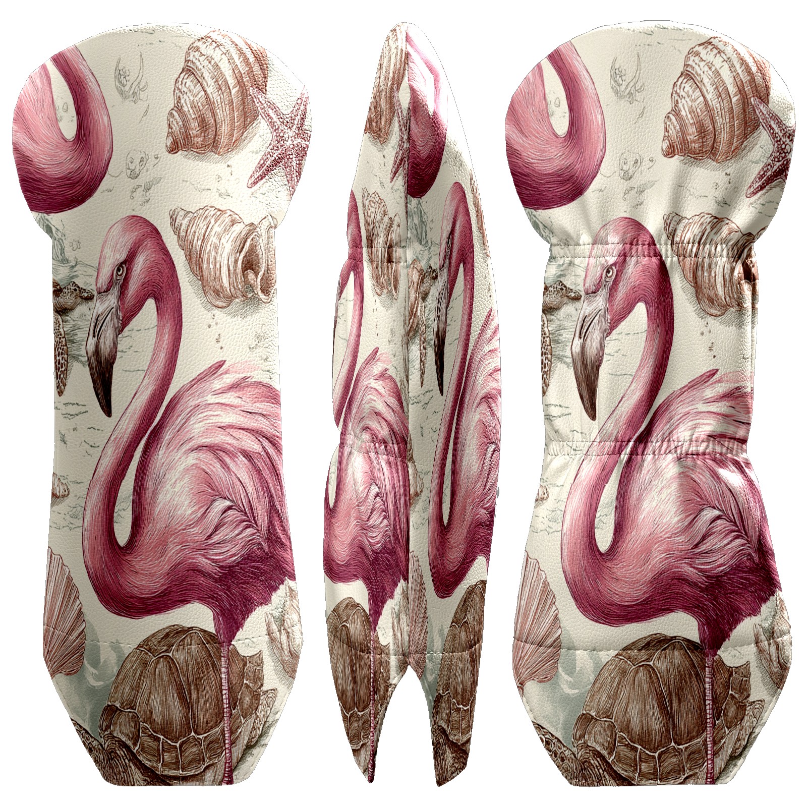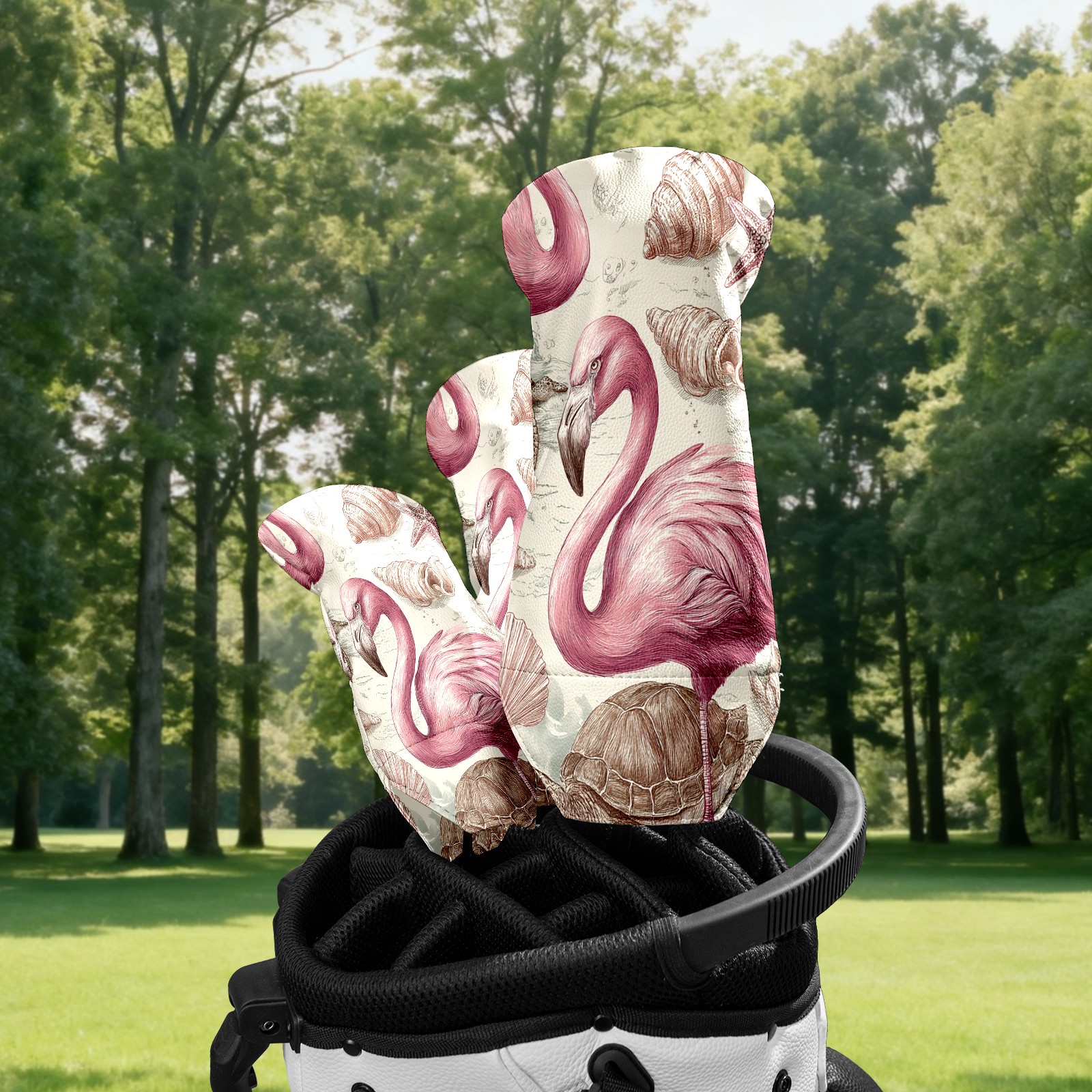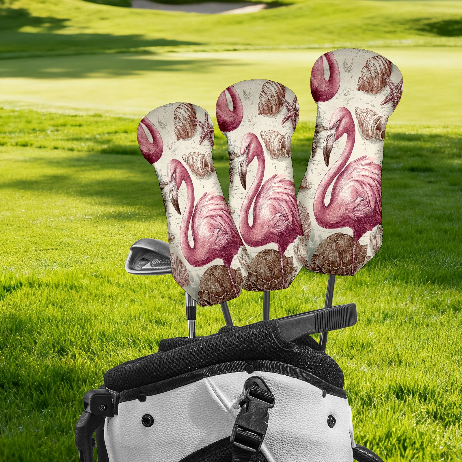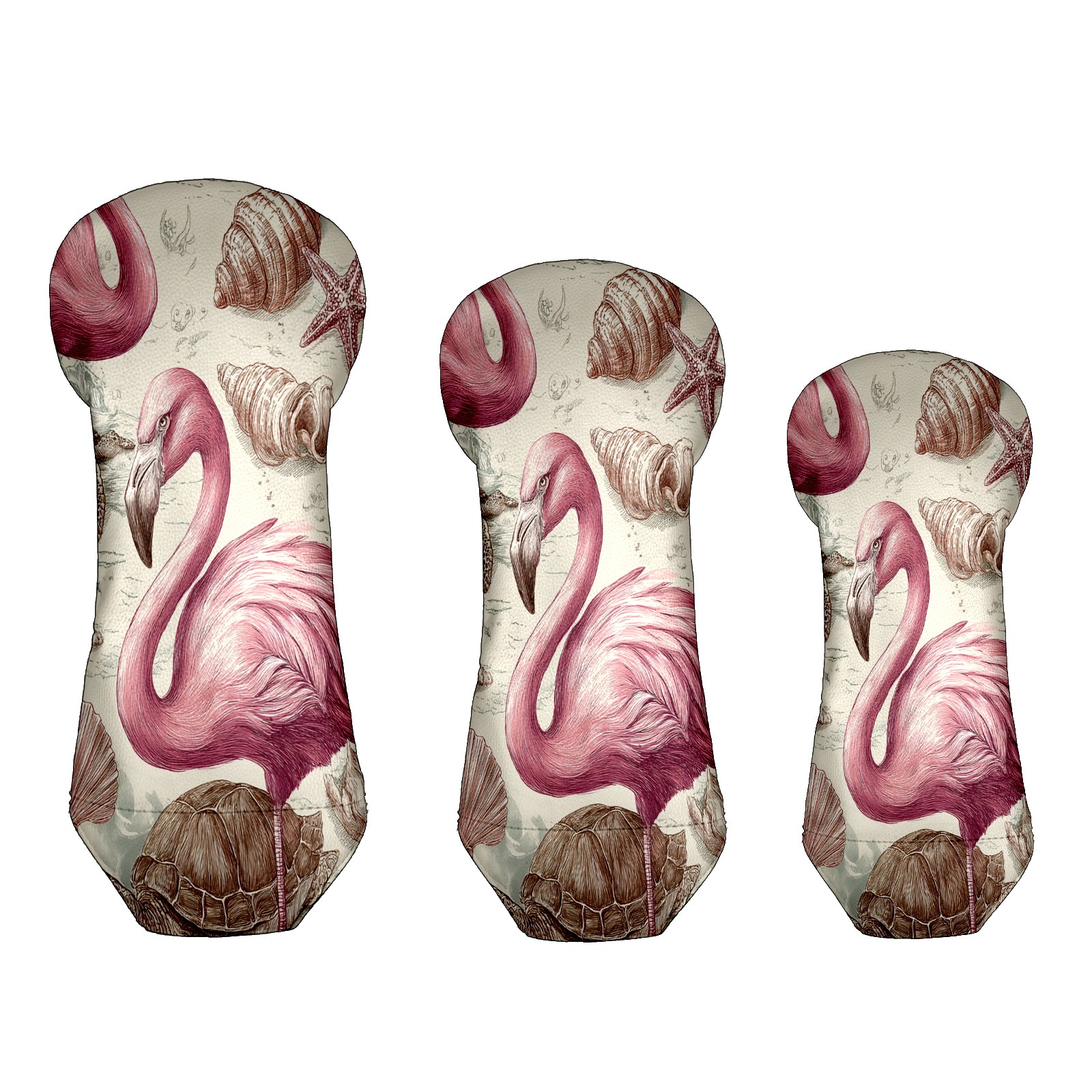 Golf Club Covers, Flamingos Turtles Pink Golf Driver/Fairway/Hybrid/3 Wood Headcover Premium PU Leather Soft Velvet Lining, Waterproof Golf Protectors, Ideal Gift for Golf Enthusiasts
