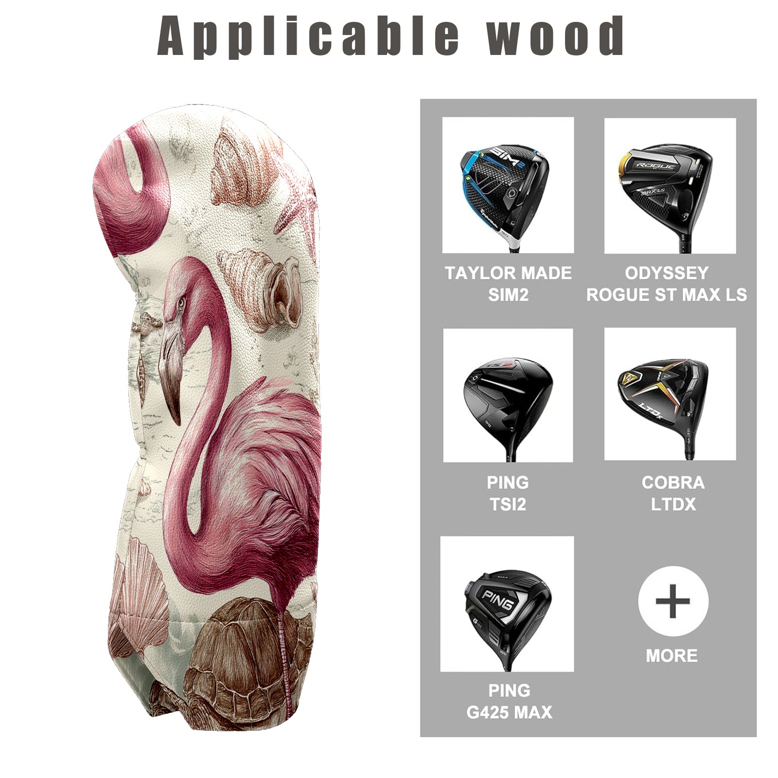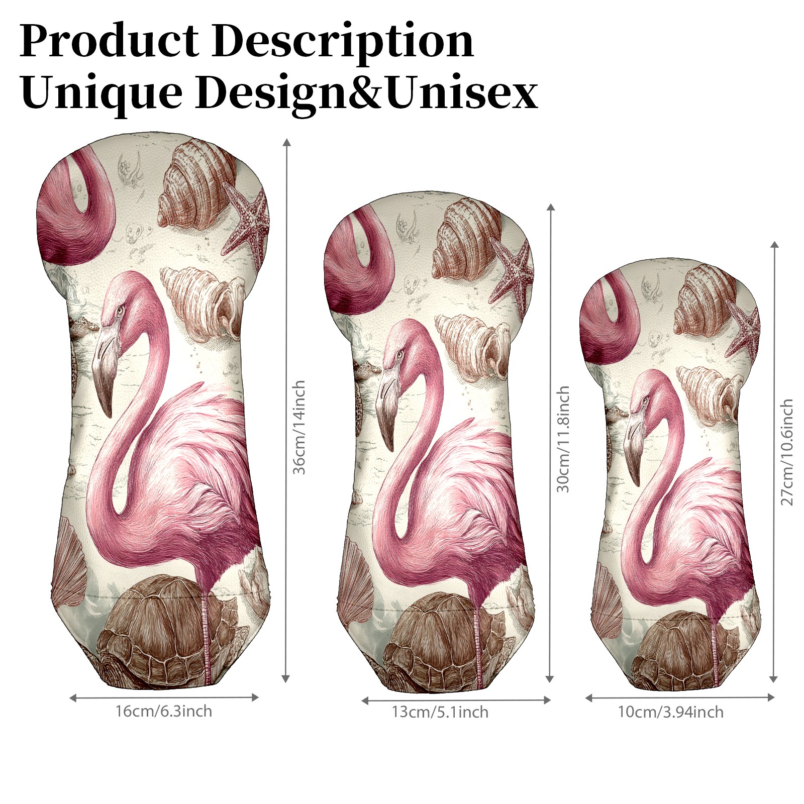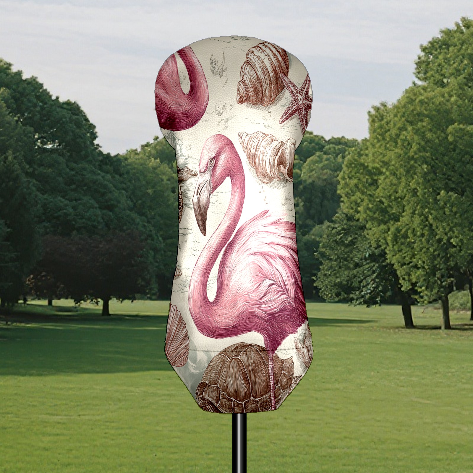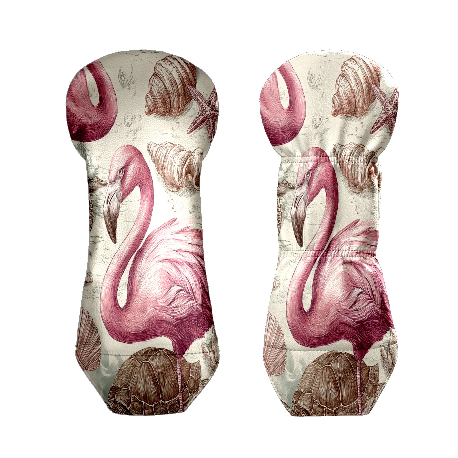 Golf Club Covers, Flamingos Turtles Pink Golf Driver/Fairway/Hybrid/3 Wood Headcover Premium PU Leather Soft Velvet Lining, Waterproof Golf Protectors, Ideal Gift for Golf Enthusiasts