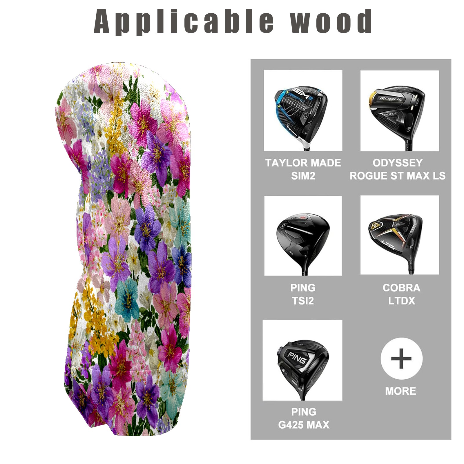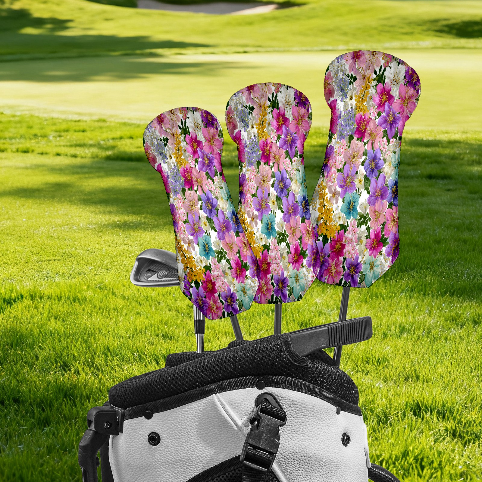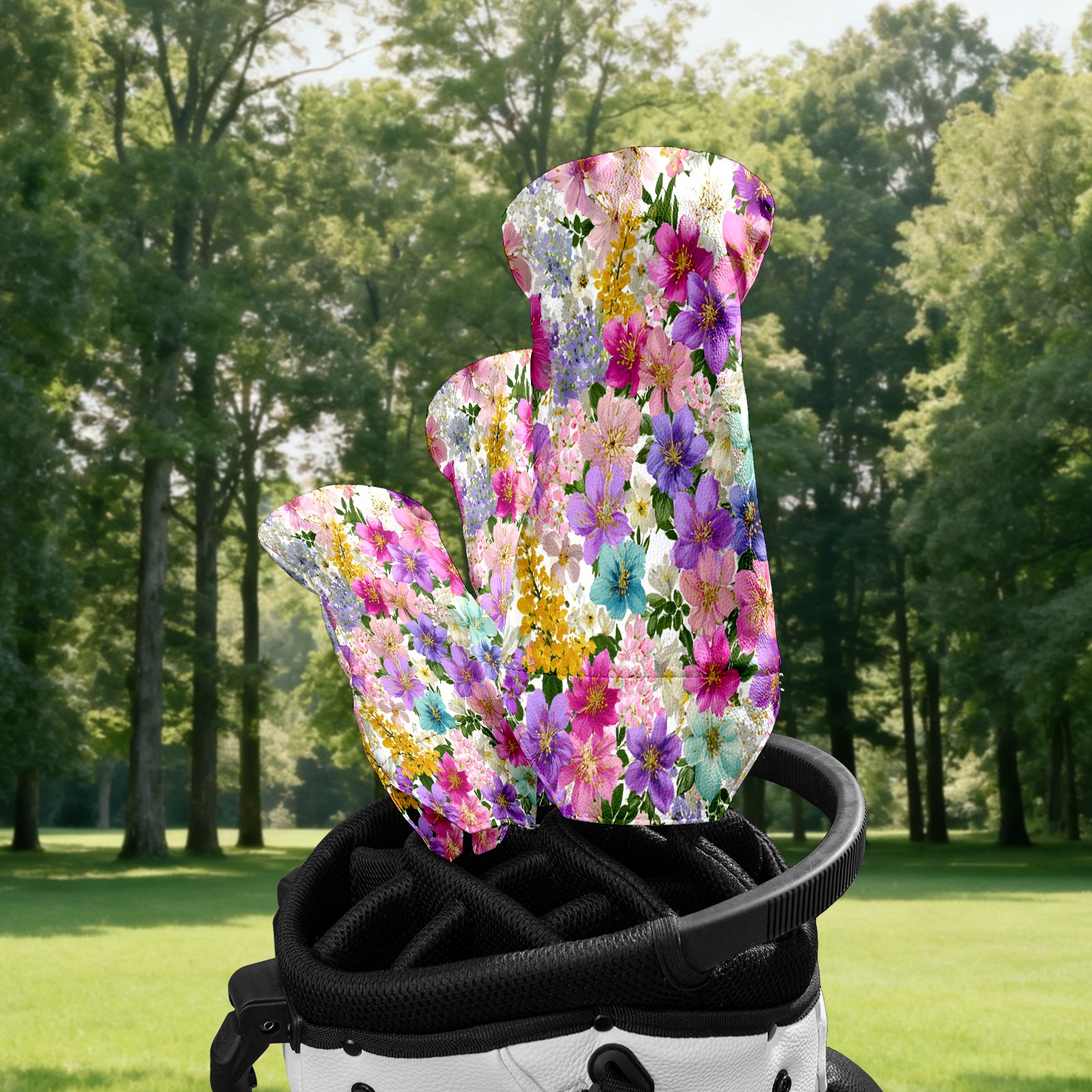 Golf Club Covers, Floral Multicolor Golf Driver/Fairway/Hybrid/3 Wood Headcover Premium PU Leather Soft Velvet Lining, Waterproof Golf Protectors, Ideal Gift for Golf Enthusiasts