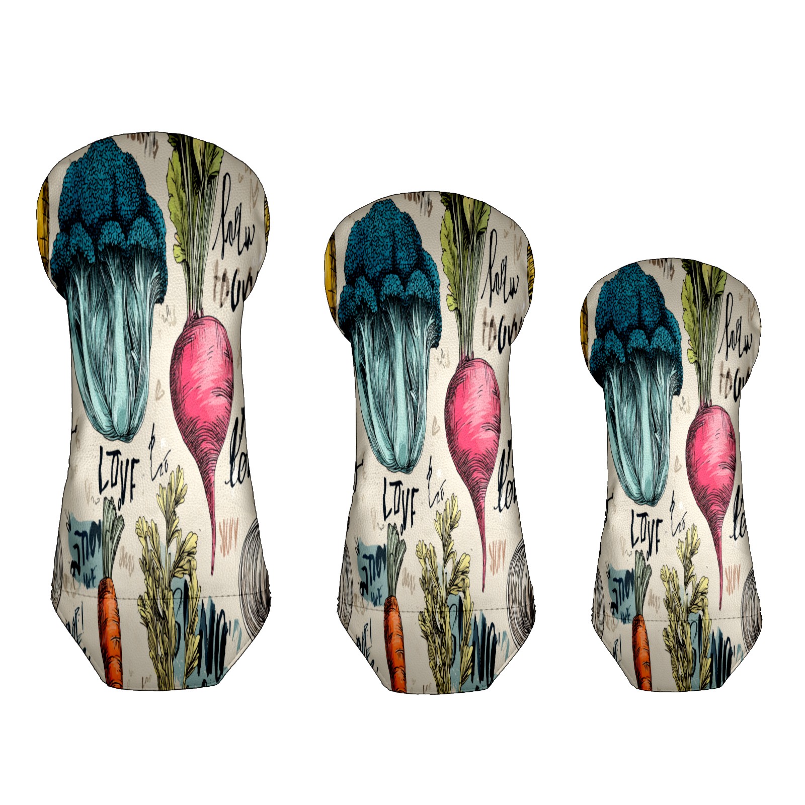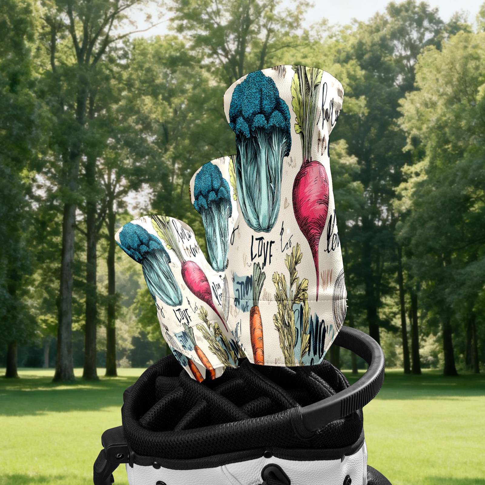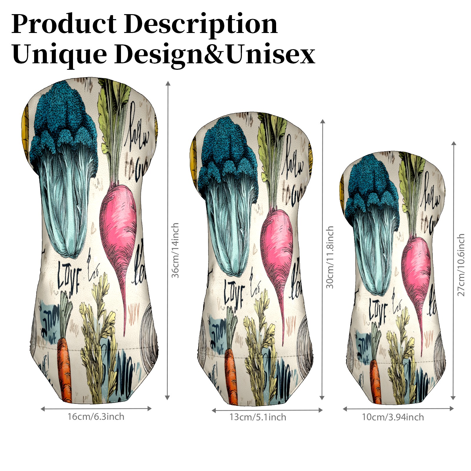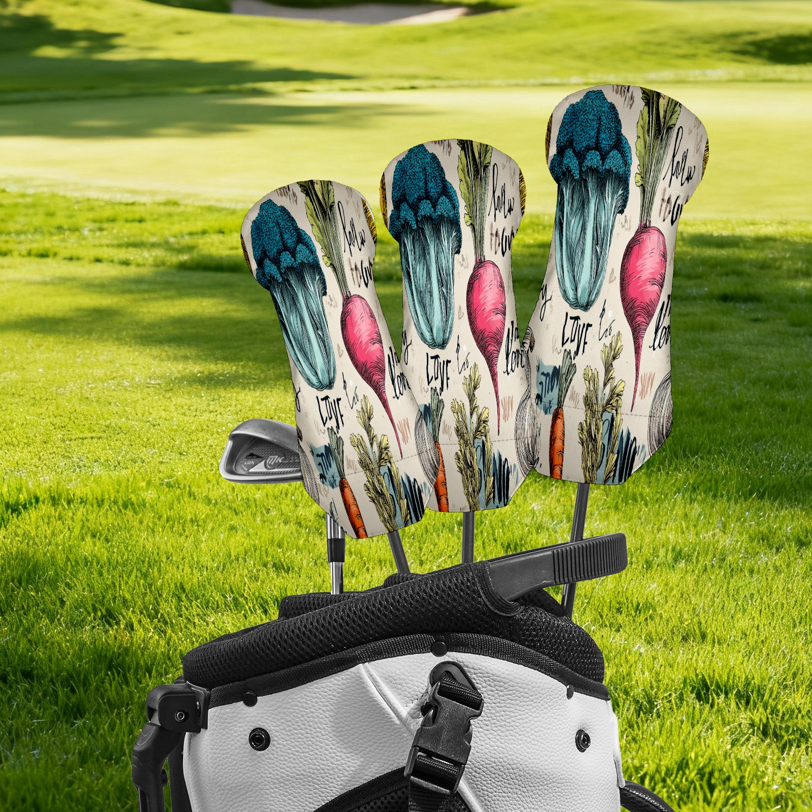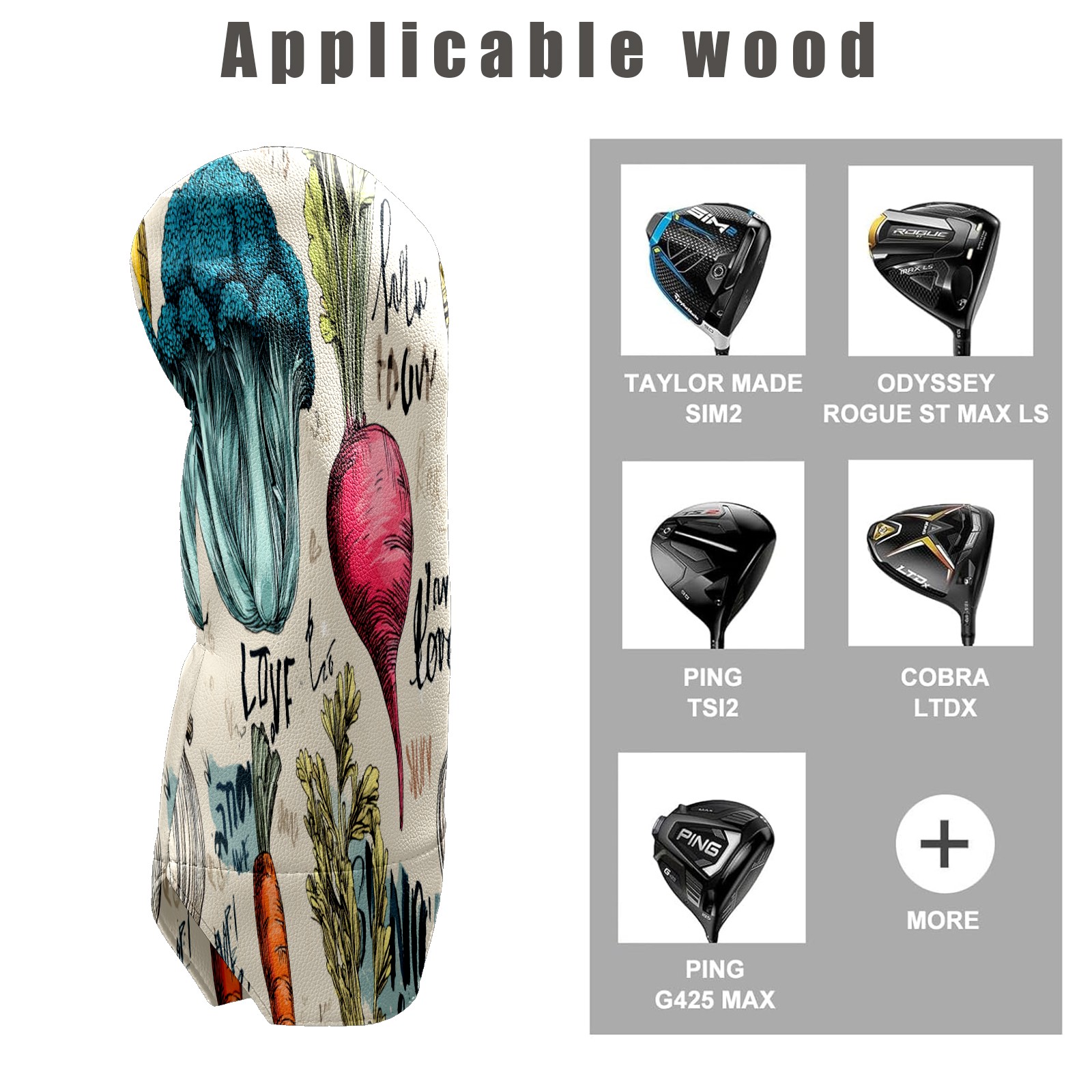 Golf Club Covers, Vegetables GreenBrown Golf Driver/Fairway/Hybrid/3 Wood Headcover Premium PU Leather Soft Velvet Lining, Waterproof Golf Protectors, Ideal Gift for Golf Enthusiasts