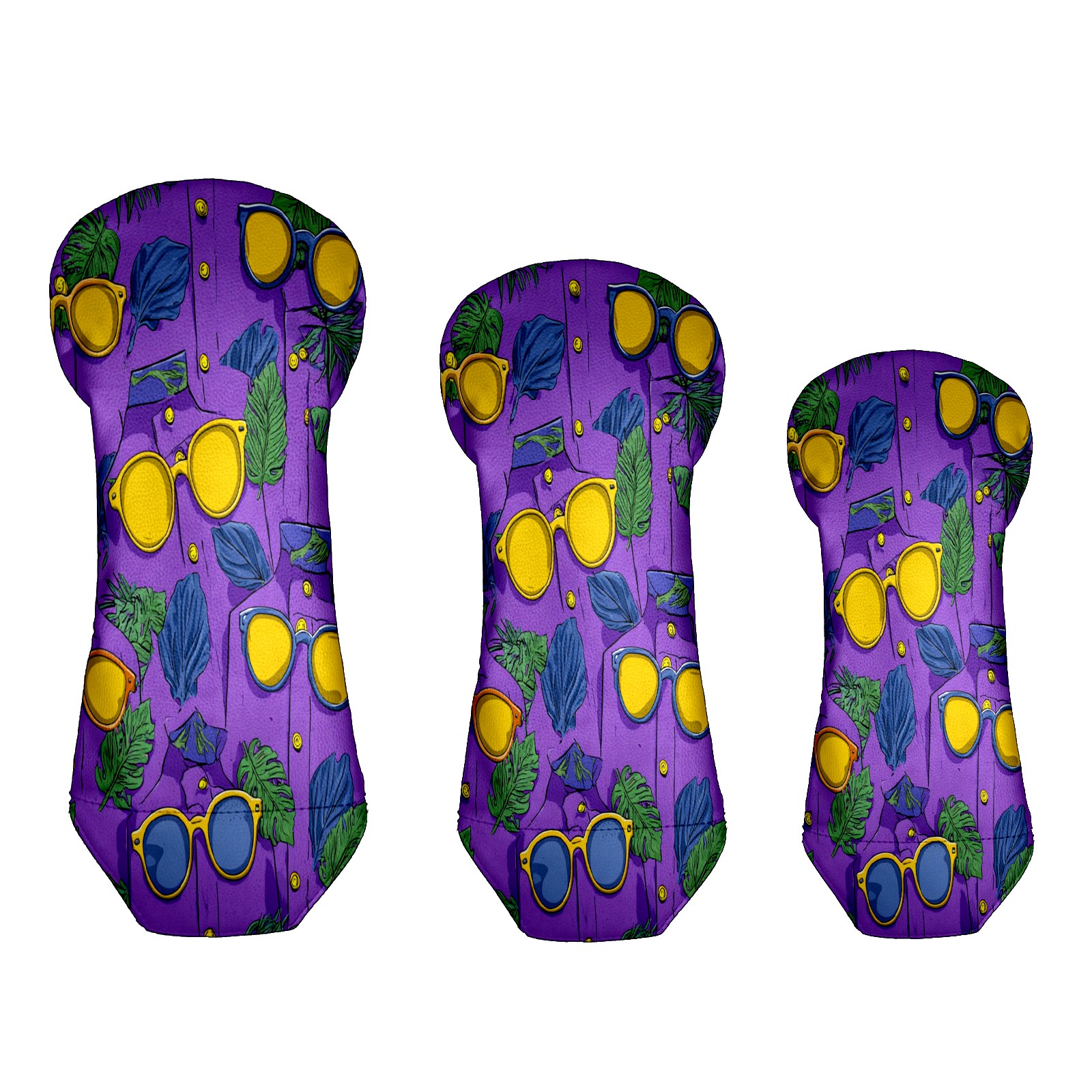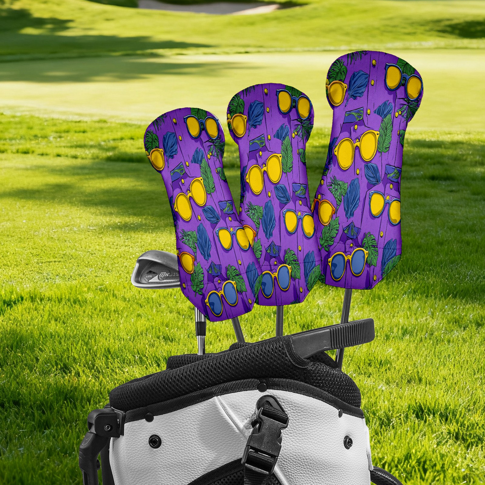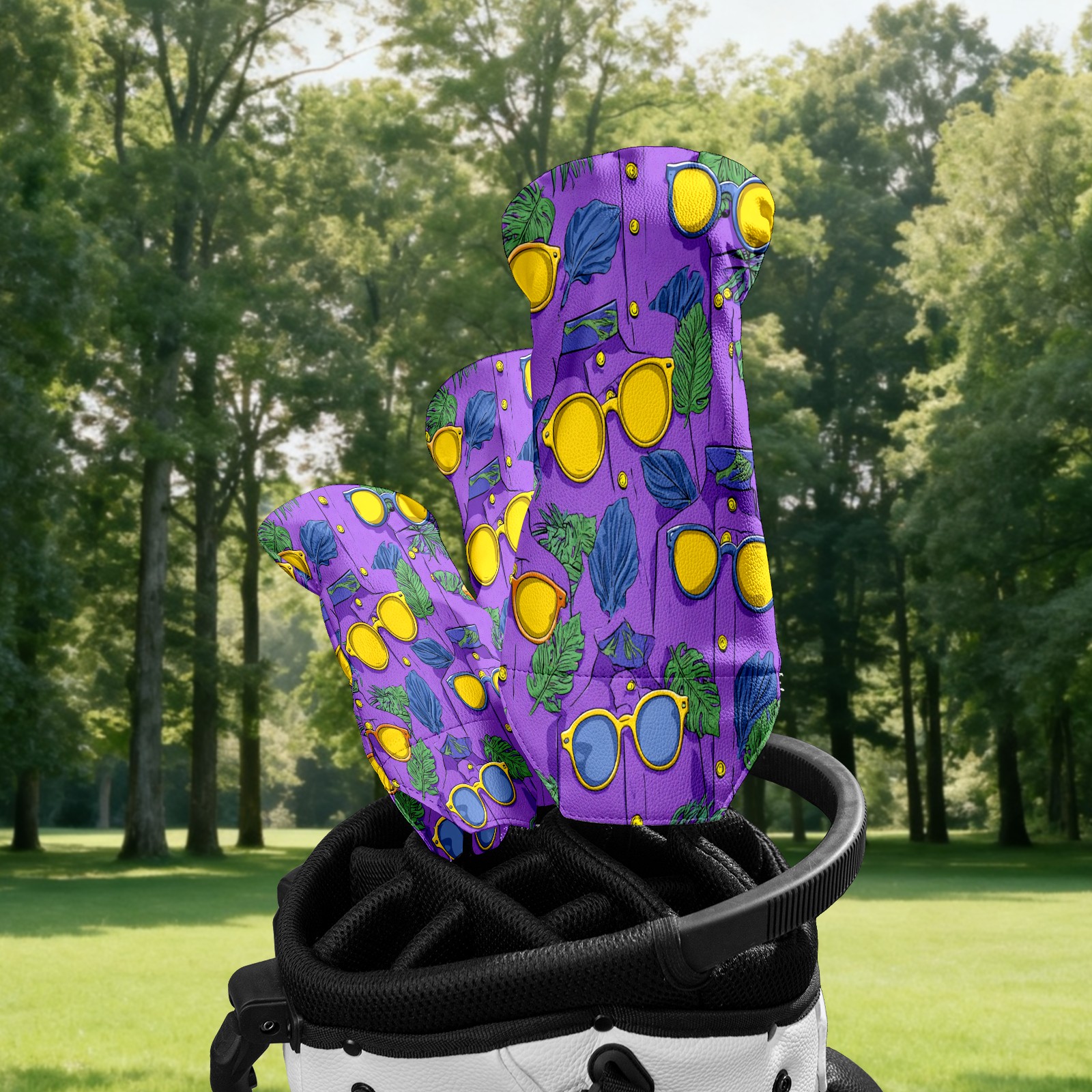 Golf Club Covers, Lemon Glasses Purple Golf Driver/Fairway/Hybrid/3 Wood Headcover Premium PU Leather Soft Velvet Lining, Waterproof Golf Protectors, Ideal Gift for Golf Enthusiasts