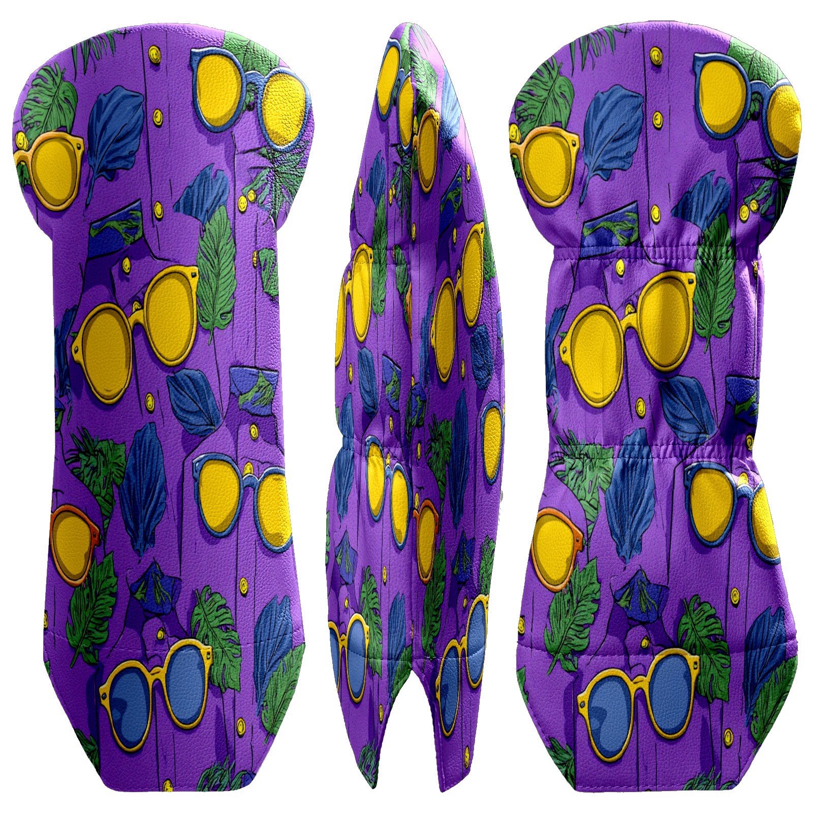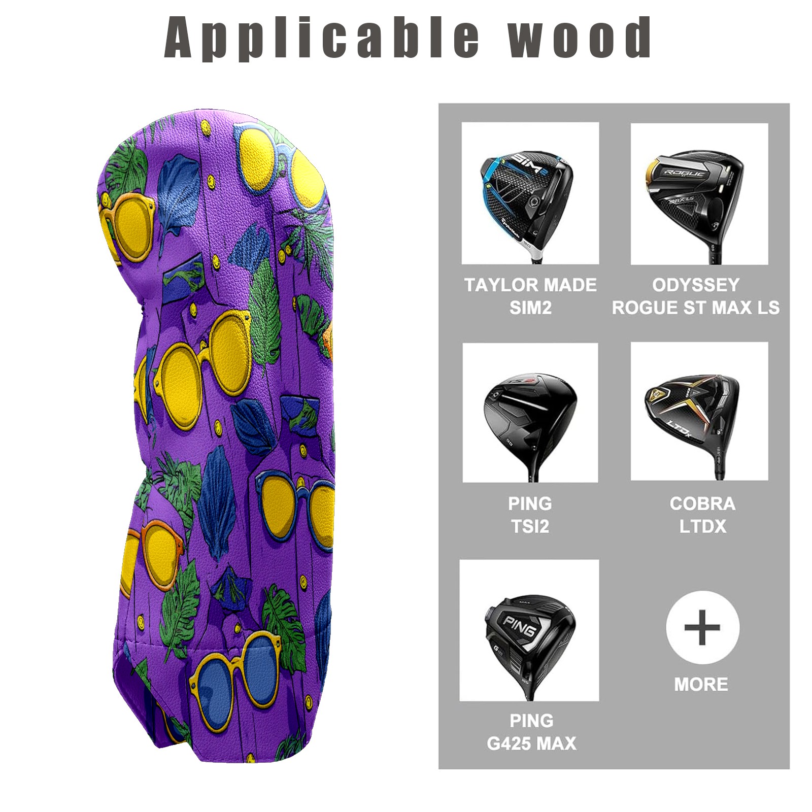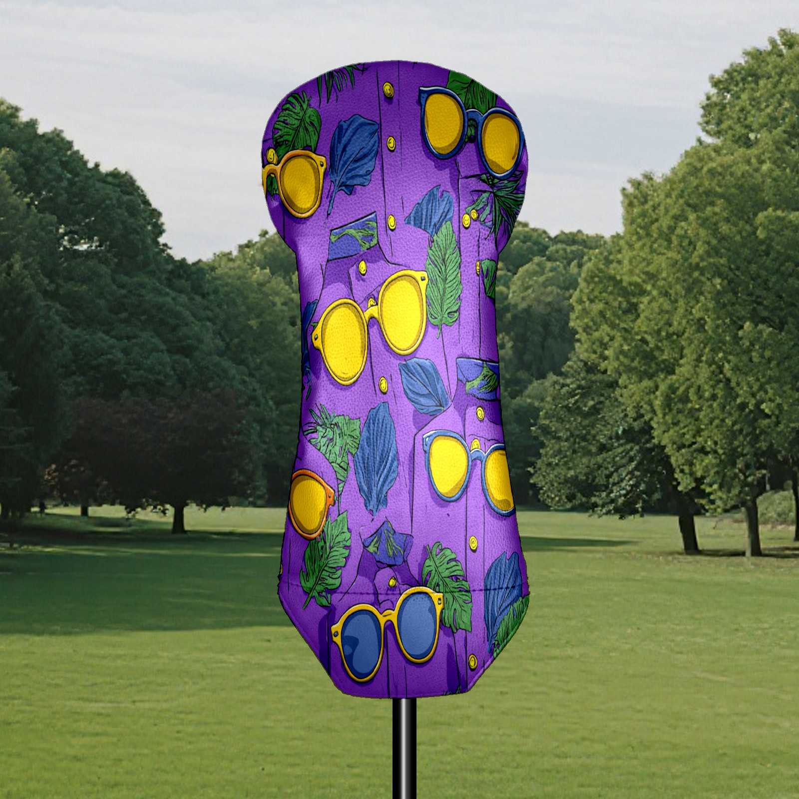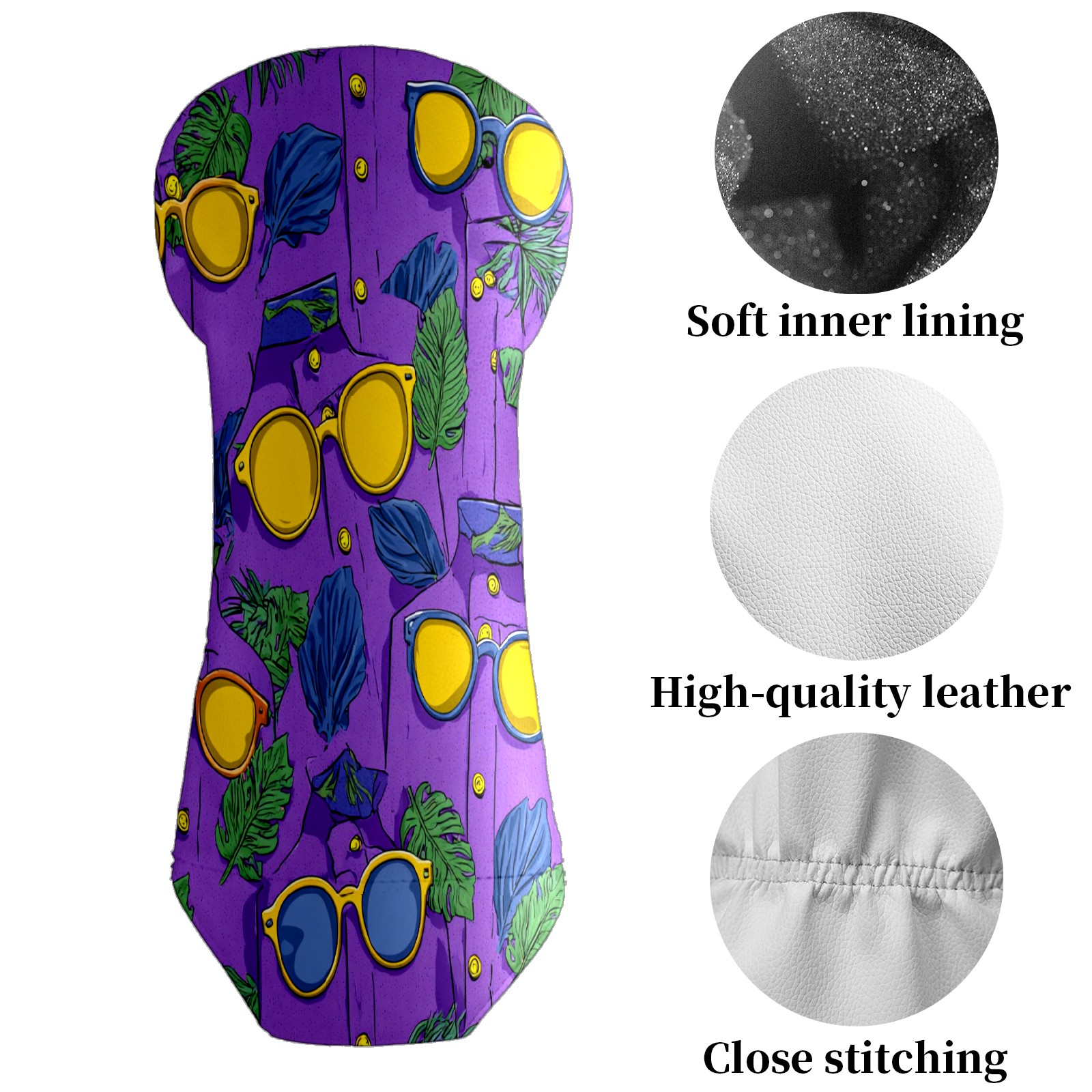 Golf Club Covers, Lemon Glasses Purple Golf Driver/Fairway/Hybrid/3 Wood Headcover Premium PU Leather Soft Velvet Lining, Waterproof Golf Protectors, Ideal Gift for Golf Enthusiasts