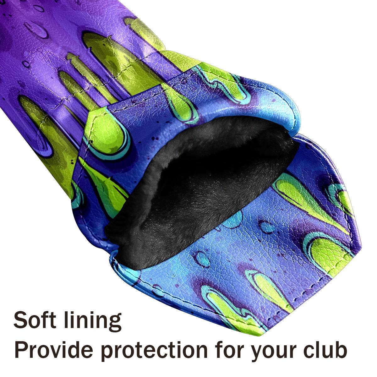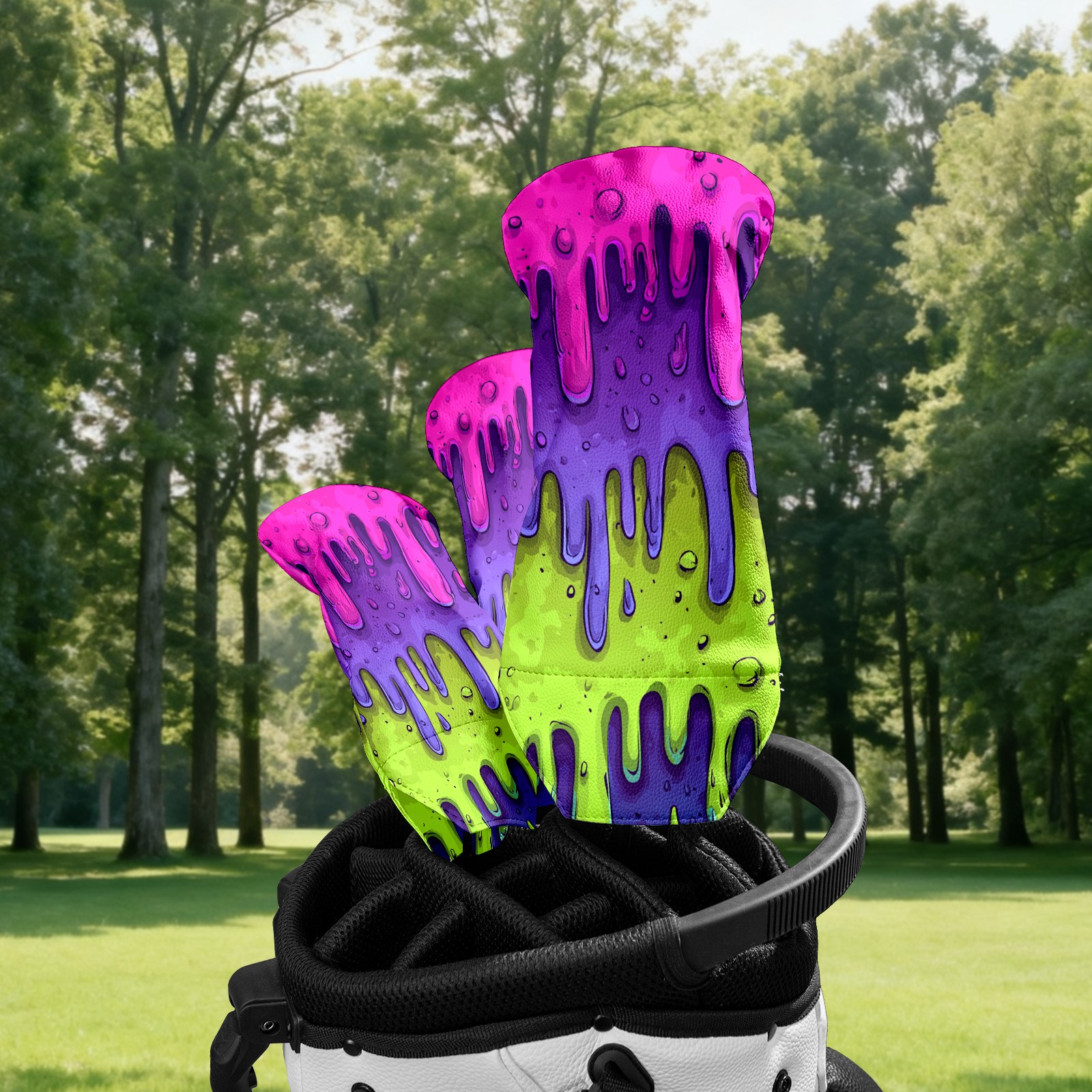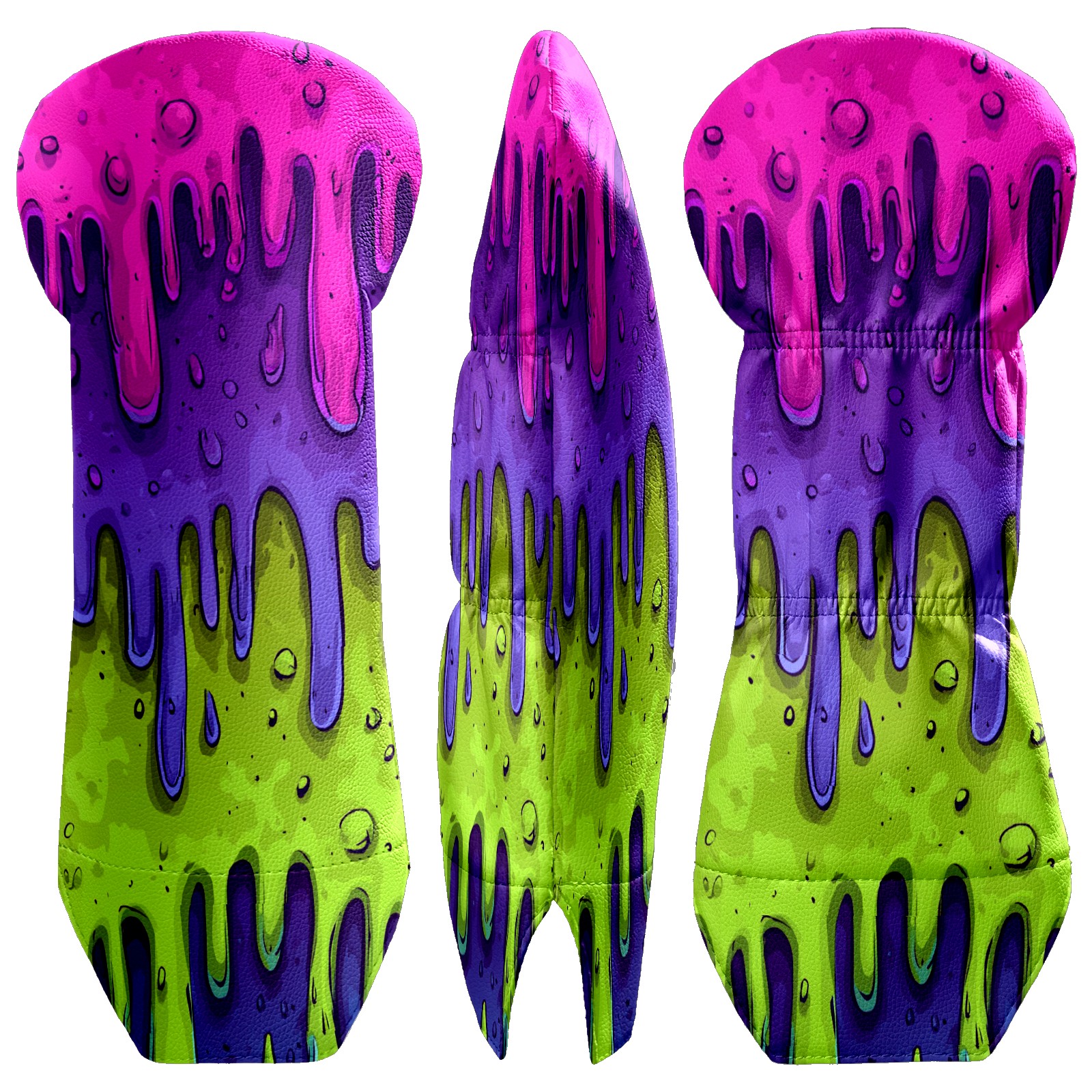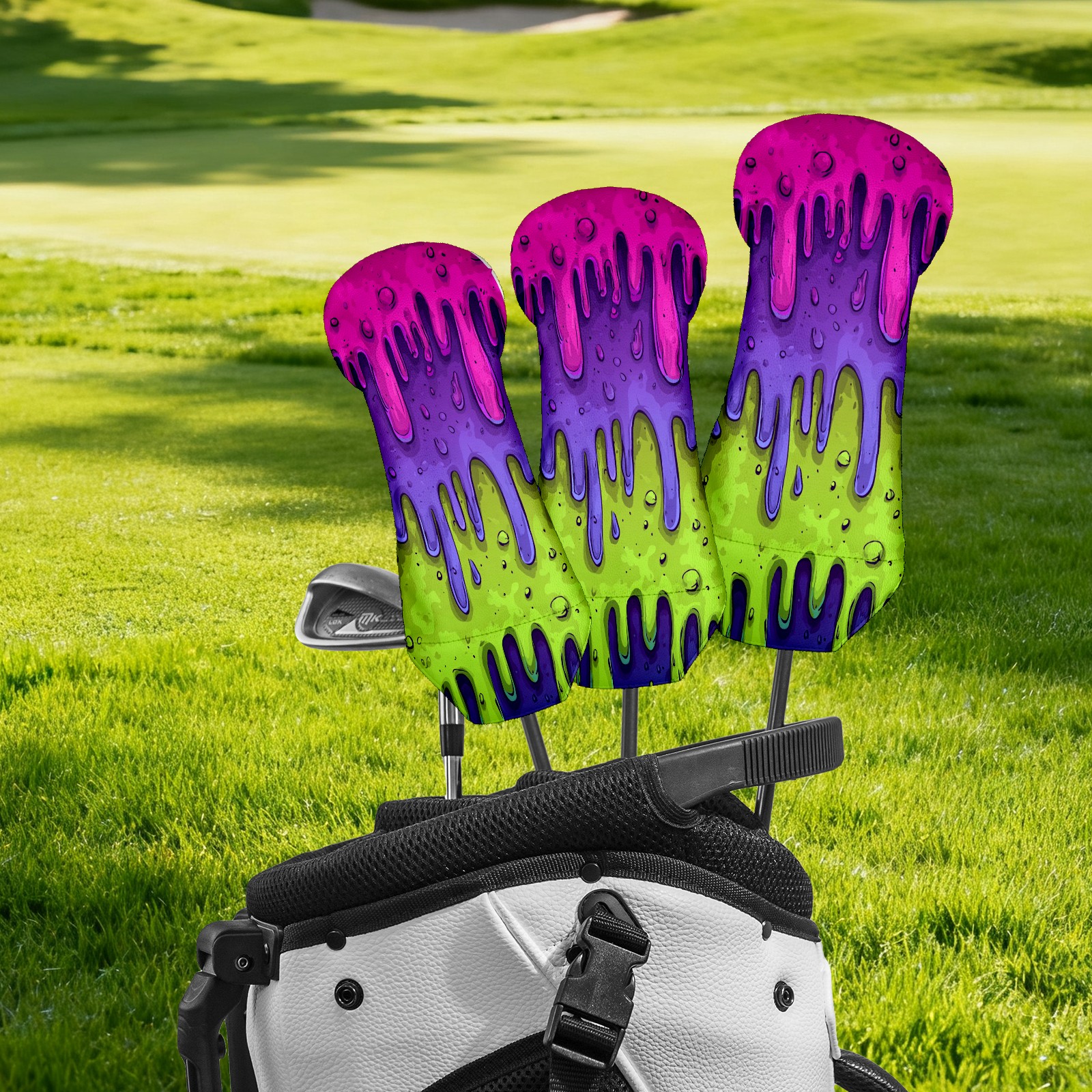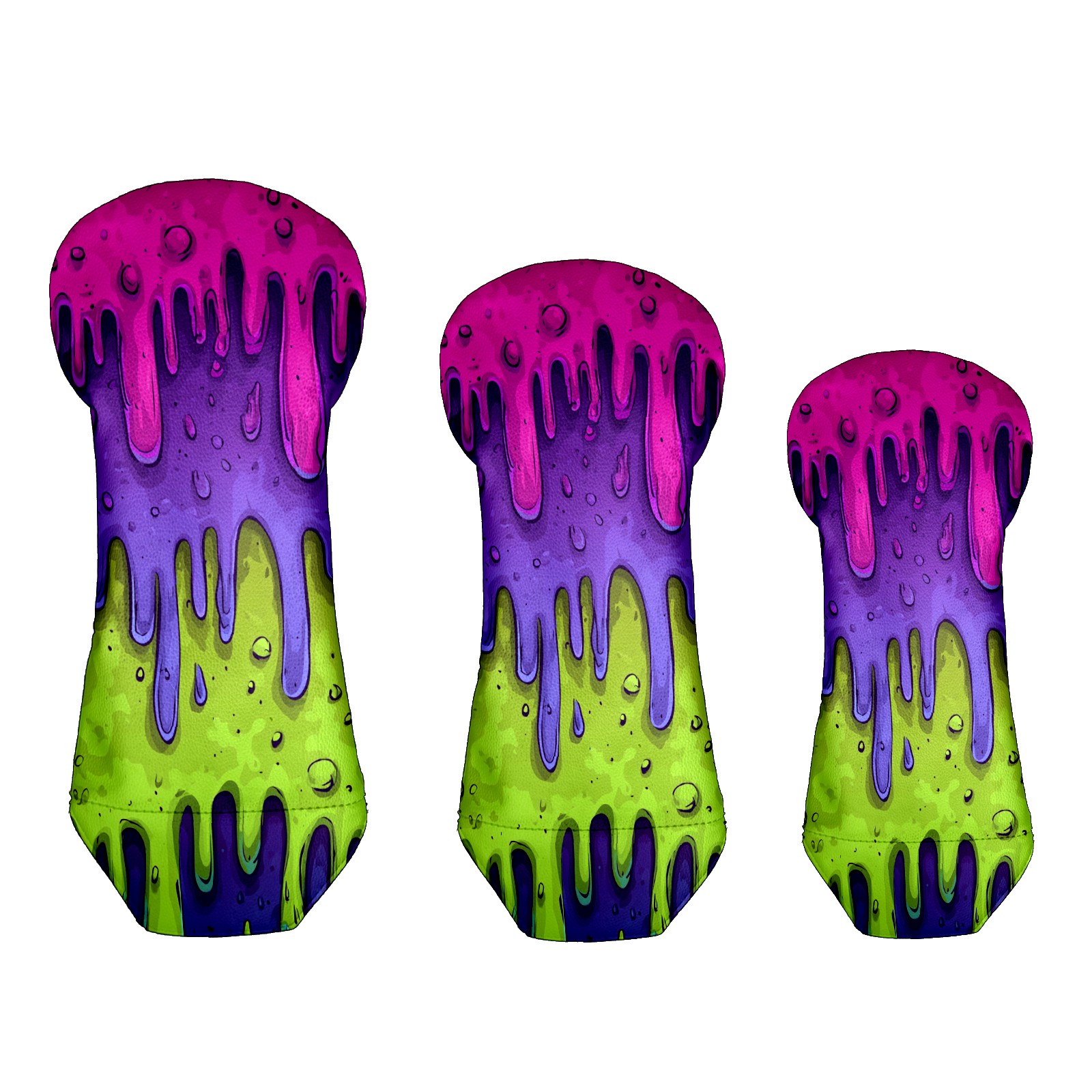 Golf Club Covers, Slime Cartoon PurpleGreen Golf Driver/Fairway/Hybrid/3 Wood Headcover Premium PU Leather Soft Velvet Lining, Waterproof Golf Protectors, Ideal Gift for Golf Enthusiasts