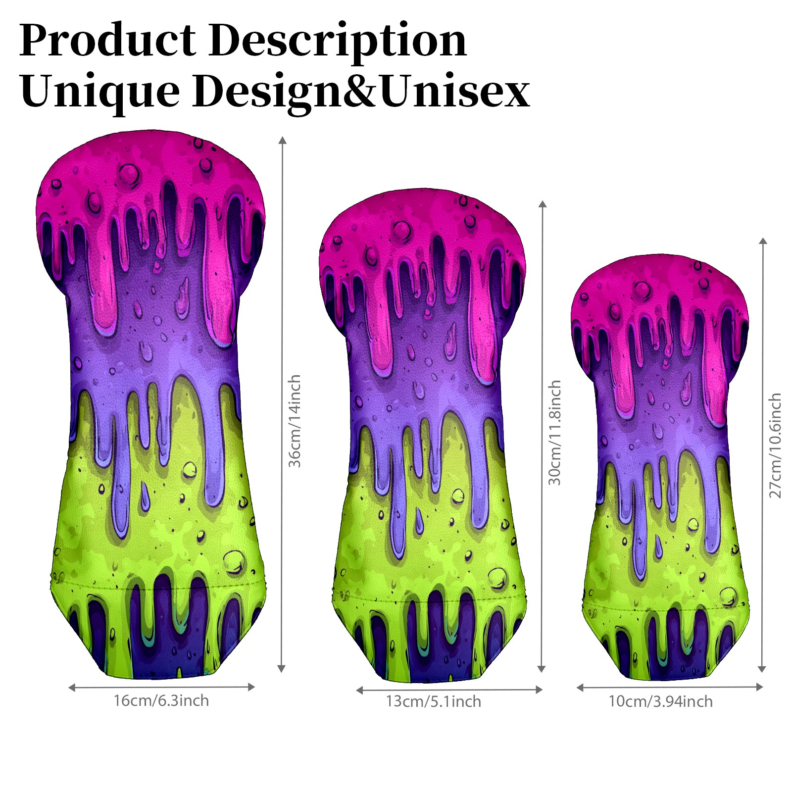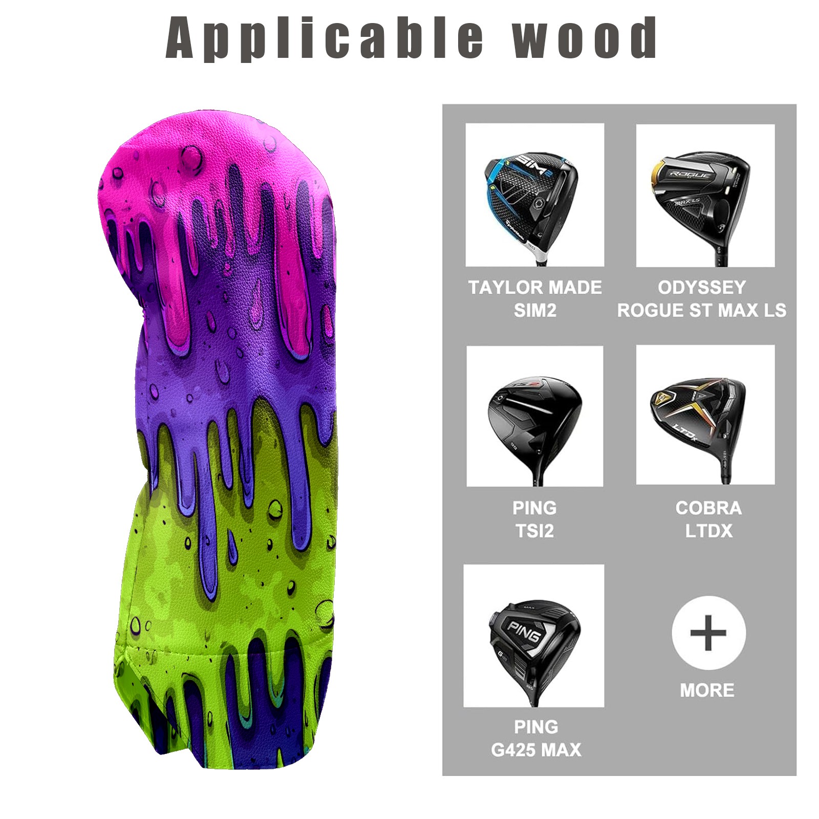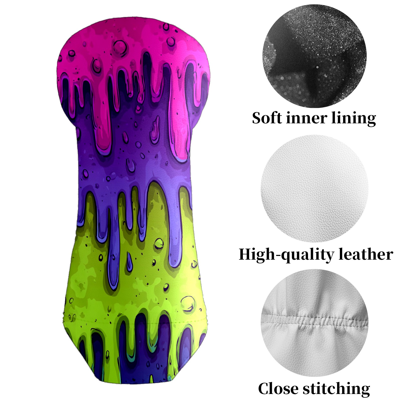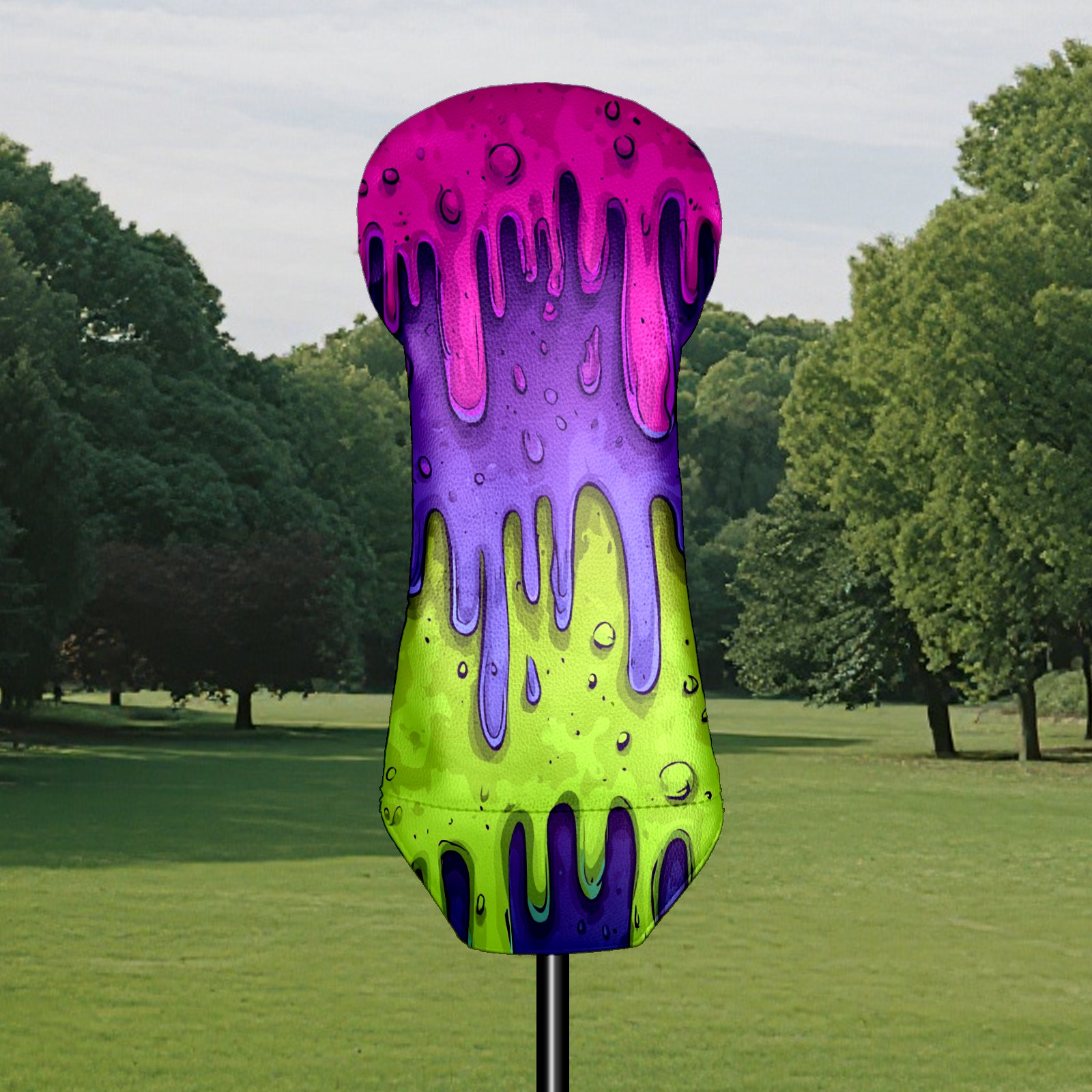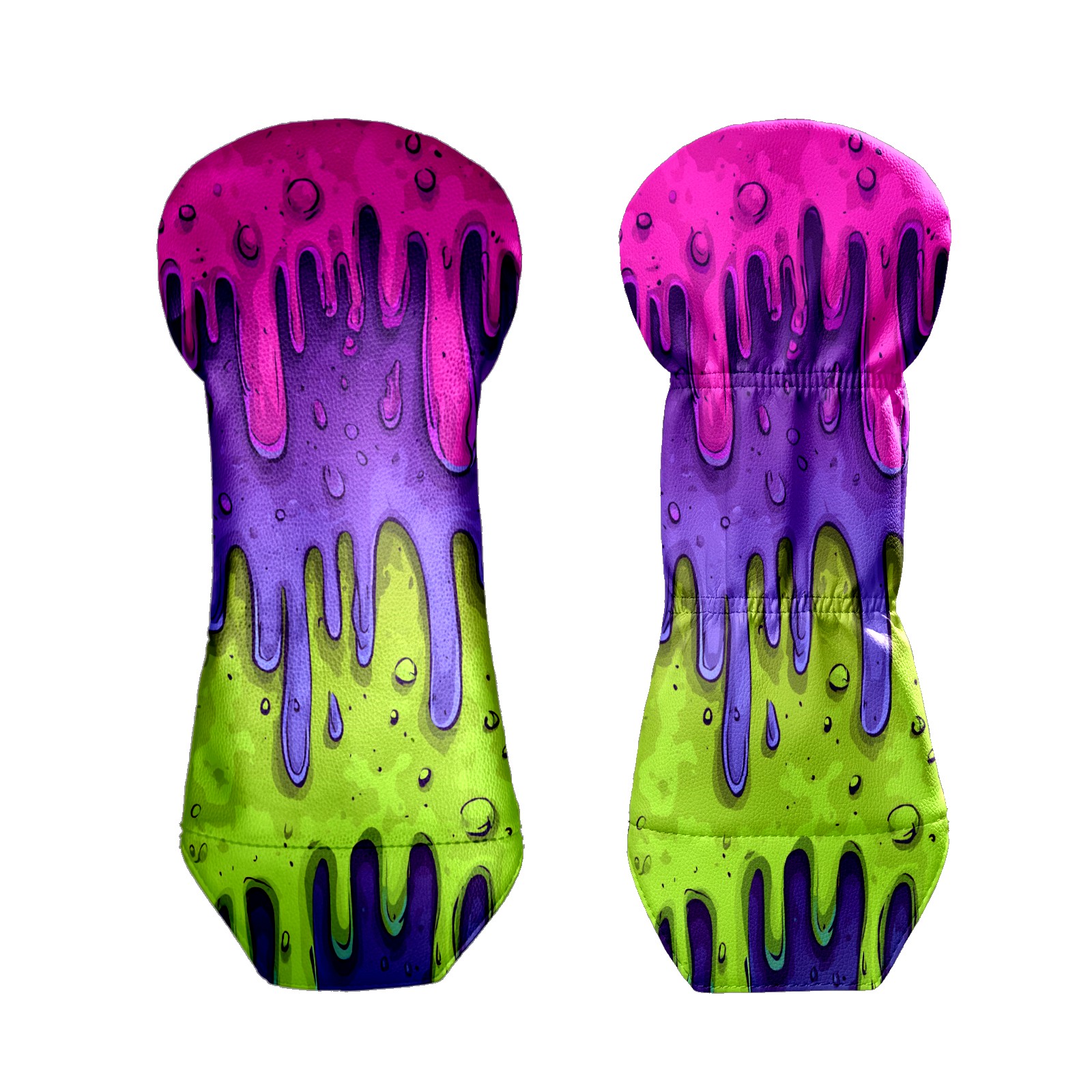 Golf Club Covers, Slime Cartoon PurpleGreen Golf Driver/Fairway/Hybrid/3 Wood Headcover Premium PU Leather Soft Velvet Lining, Waterproof Golf Protectors, Ideal Gift for Golf Enthusiasts