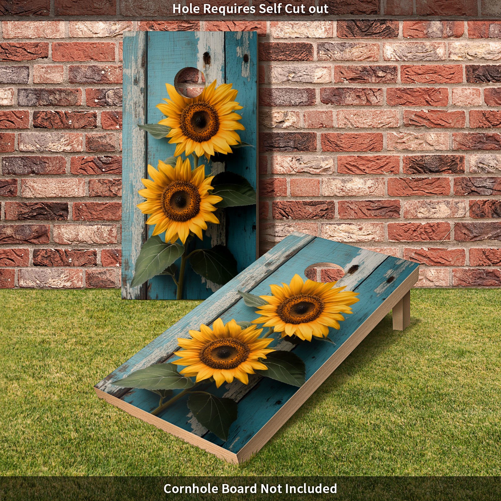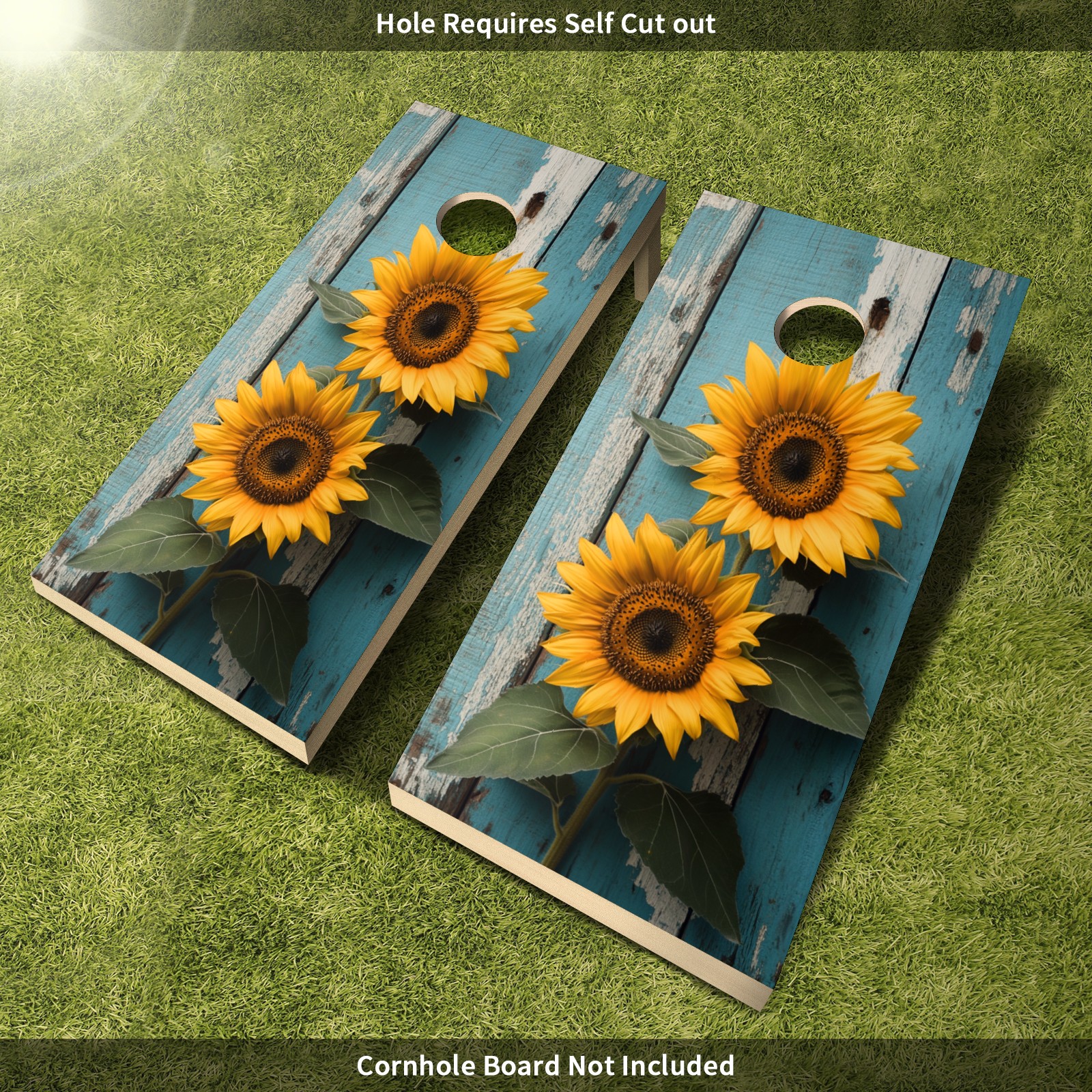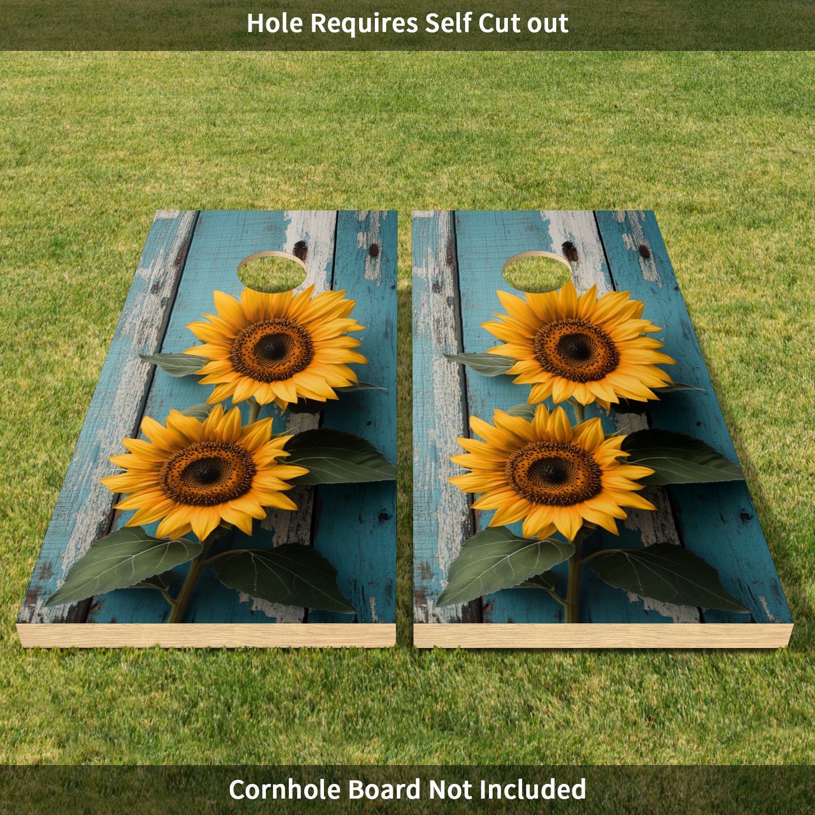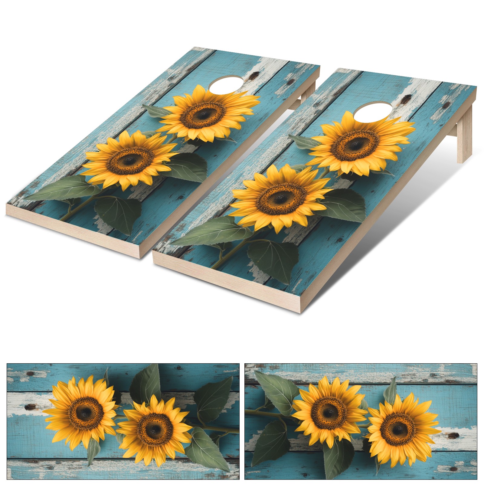 Portable 4x2 Cornhole Set with Two-piece Pack Boards - Cornhole Game Sticker Included - Yard Travel Outdoor Toss Board for Adults Outside Activities Sunflowers Blue