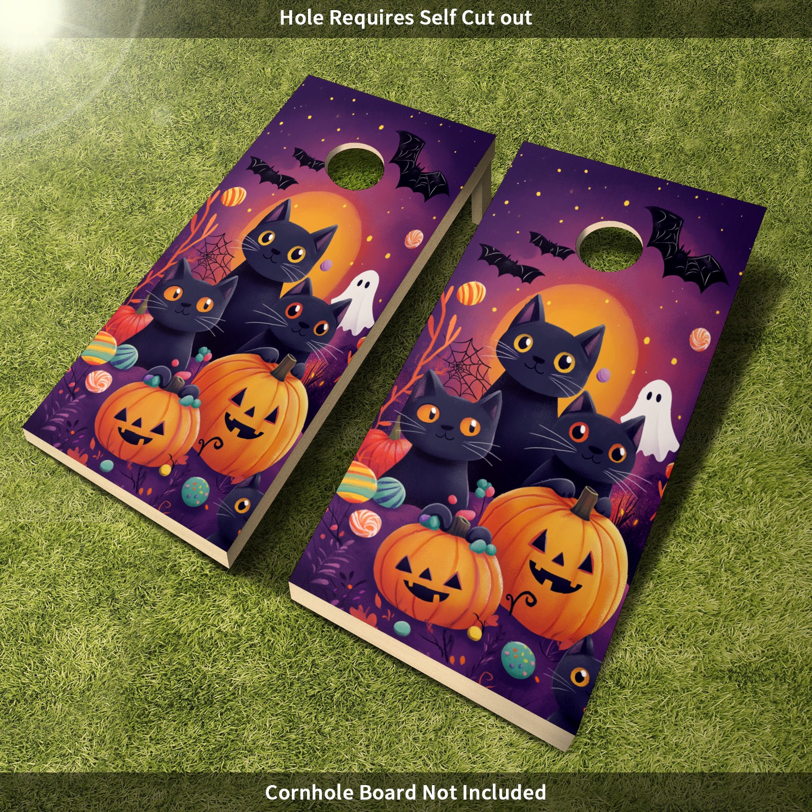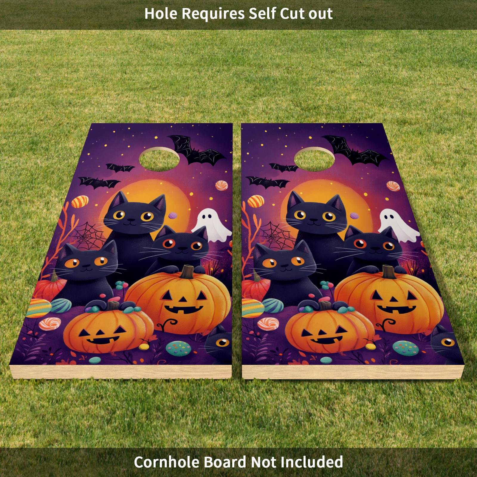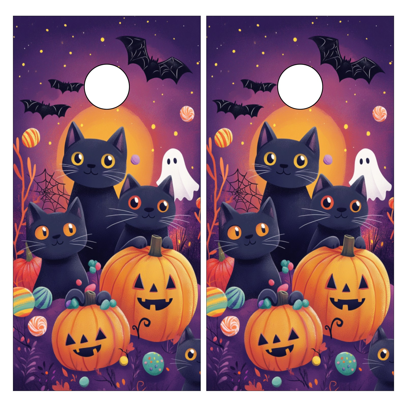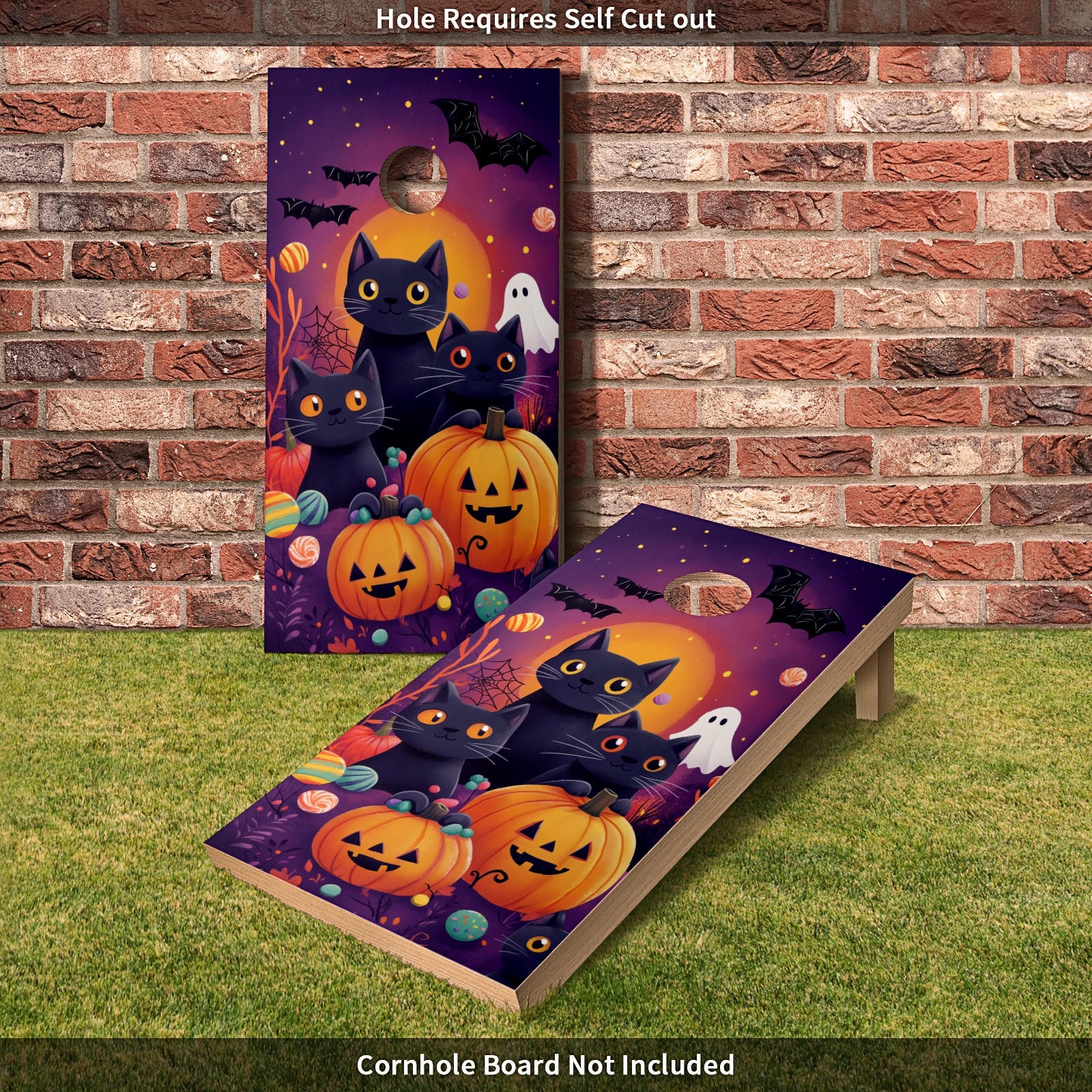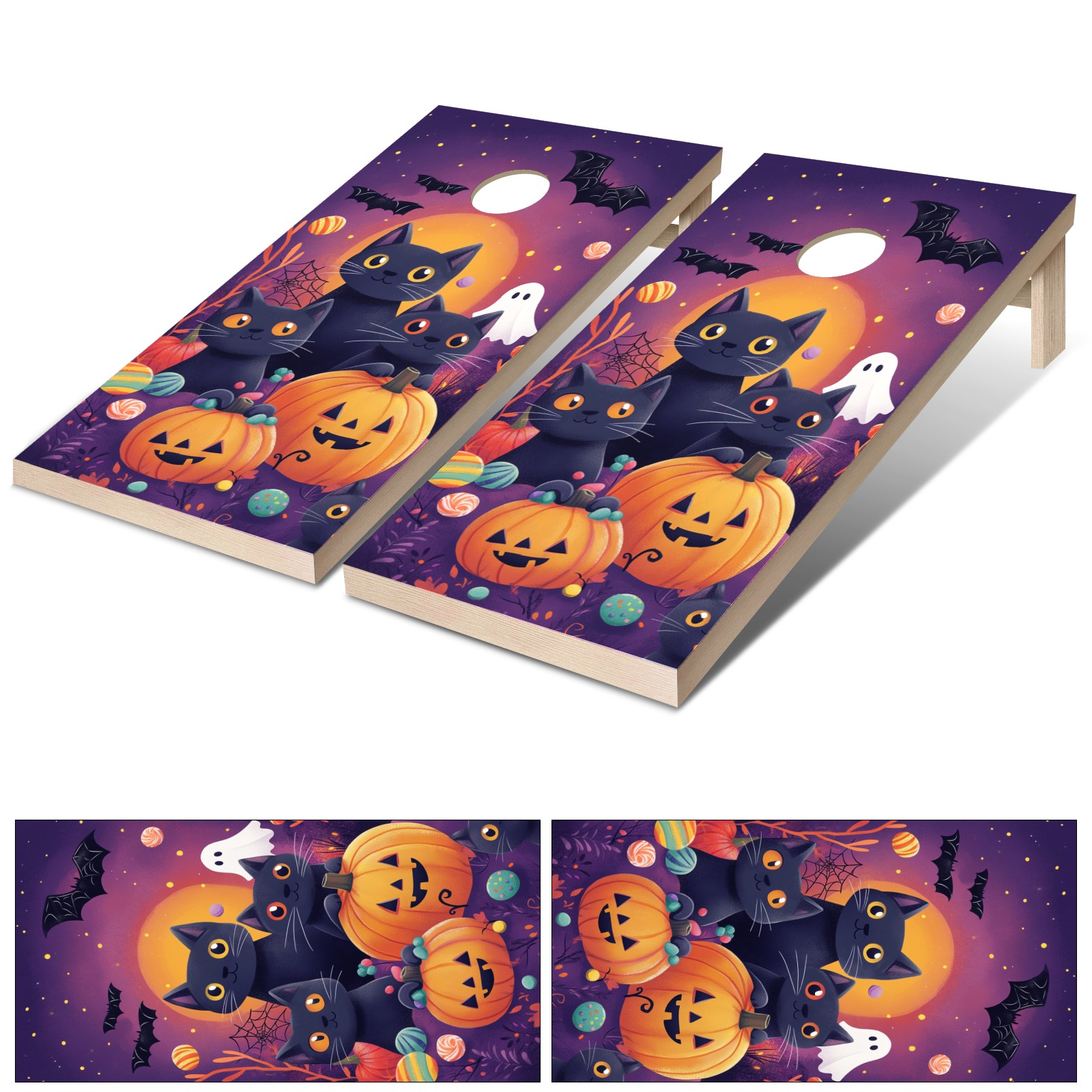 Portable 4x2 Cornhole Set with Two-piece Pack Boards - Cornhole Game Sticker Included - Yard Travel Outdoor Toss Board for Adults Outside Activities Pumpkin Cat Purple