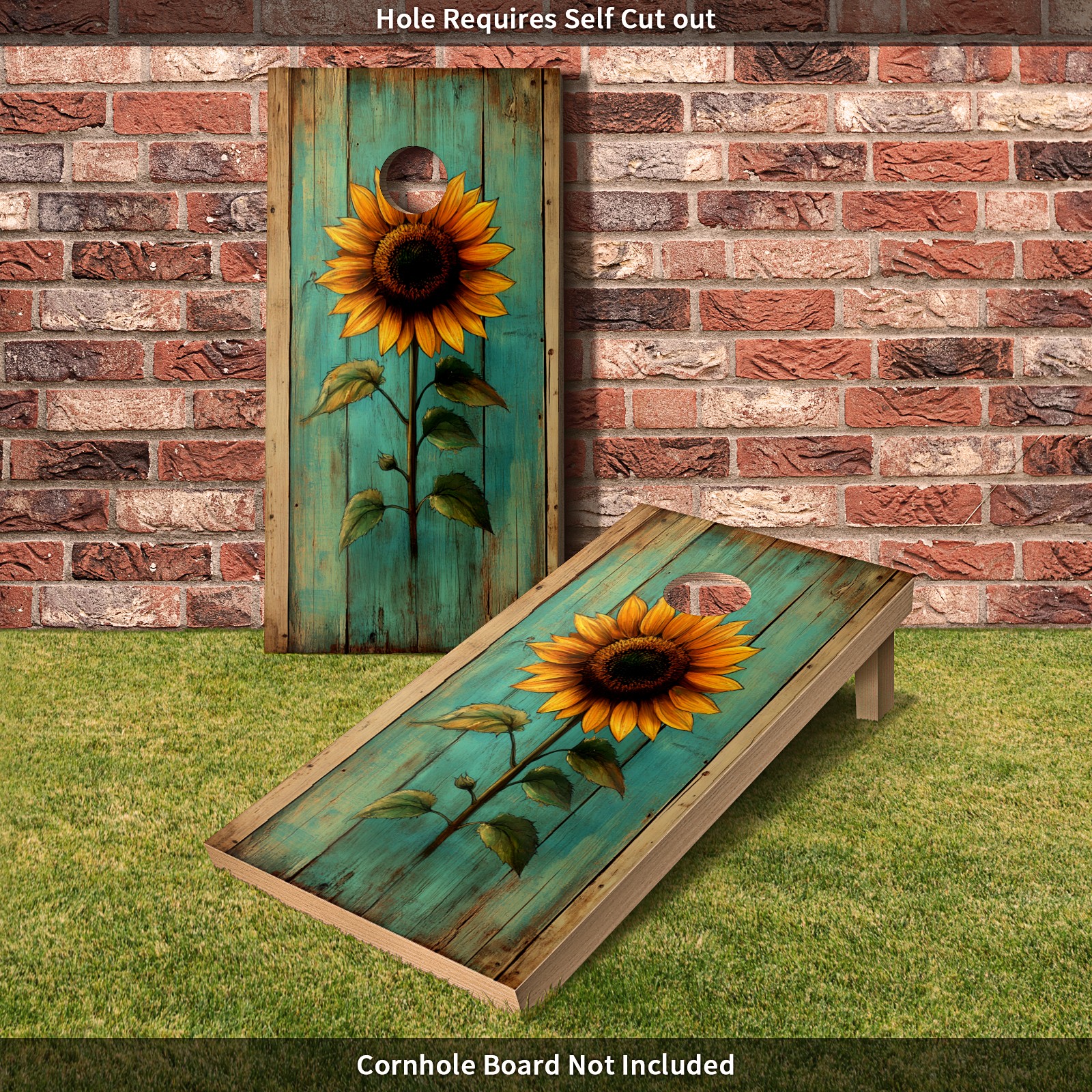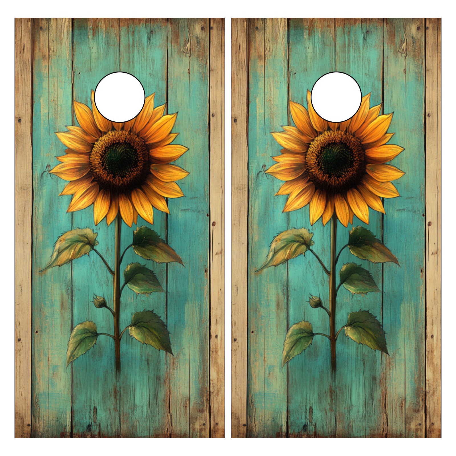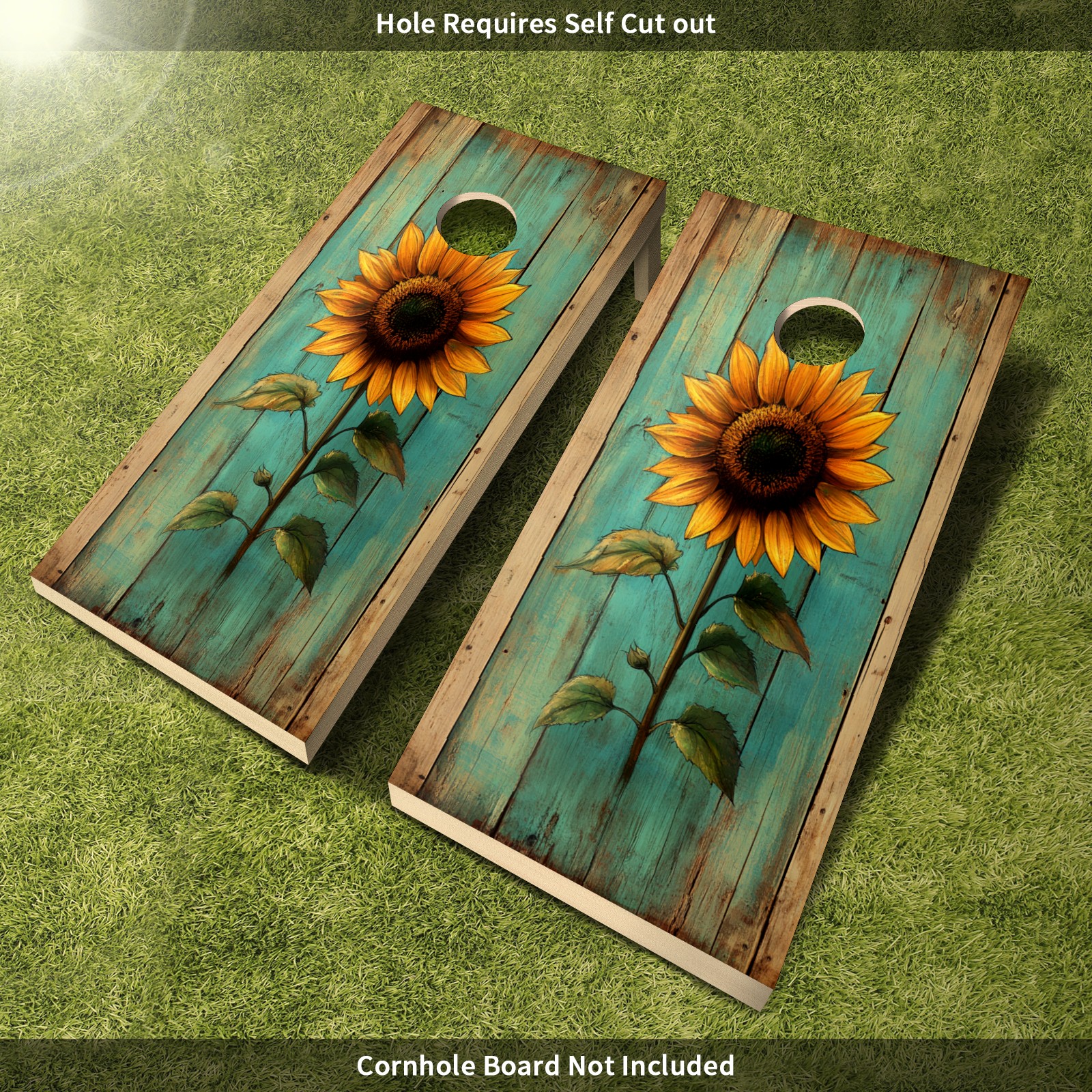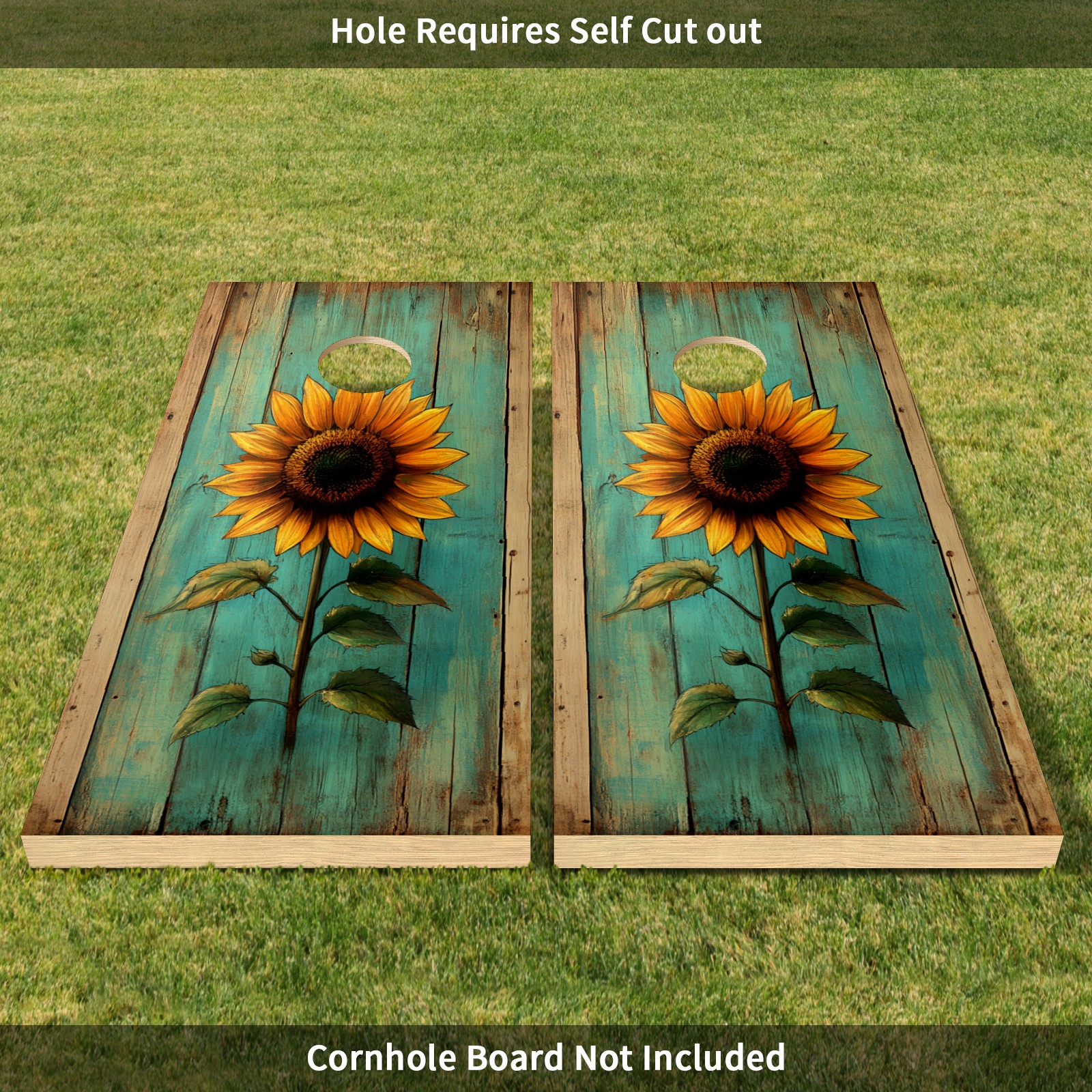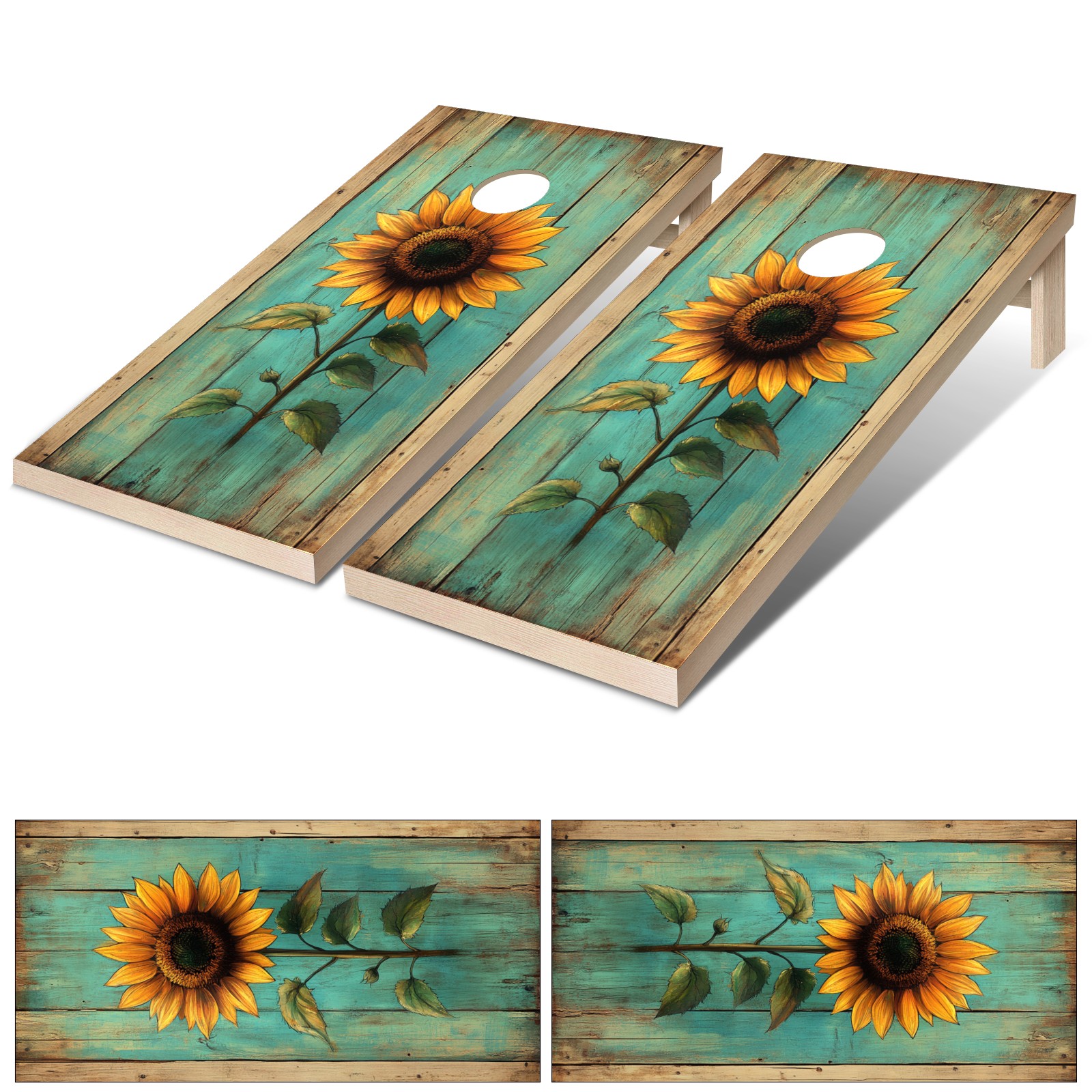 Portable 4x2 Cornhole Set with Two-piece Pack Boards - Cornhole Game Sticker Included - Yard Travel Outdoor Toss Board for Adults Outside Activities Sunflower Blue Pattern