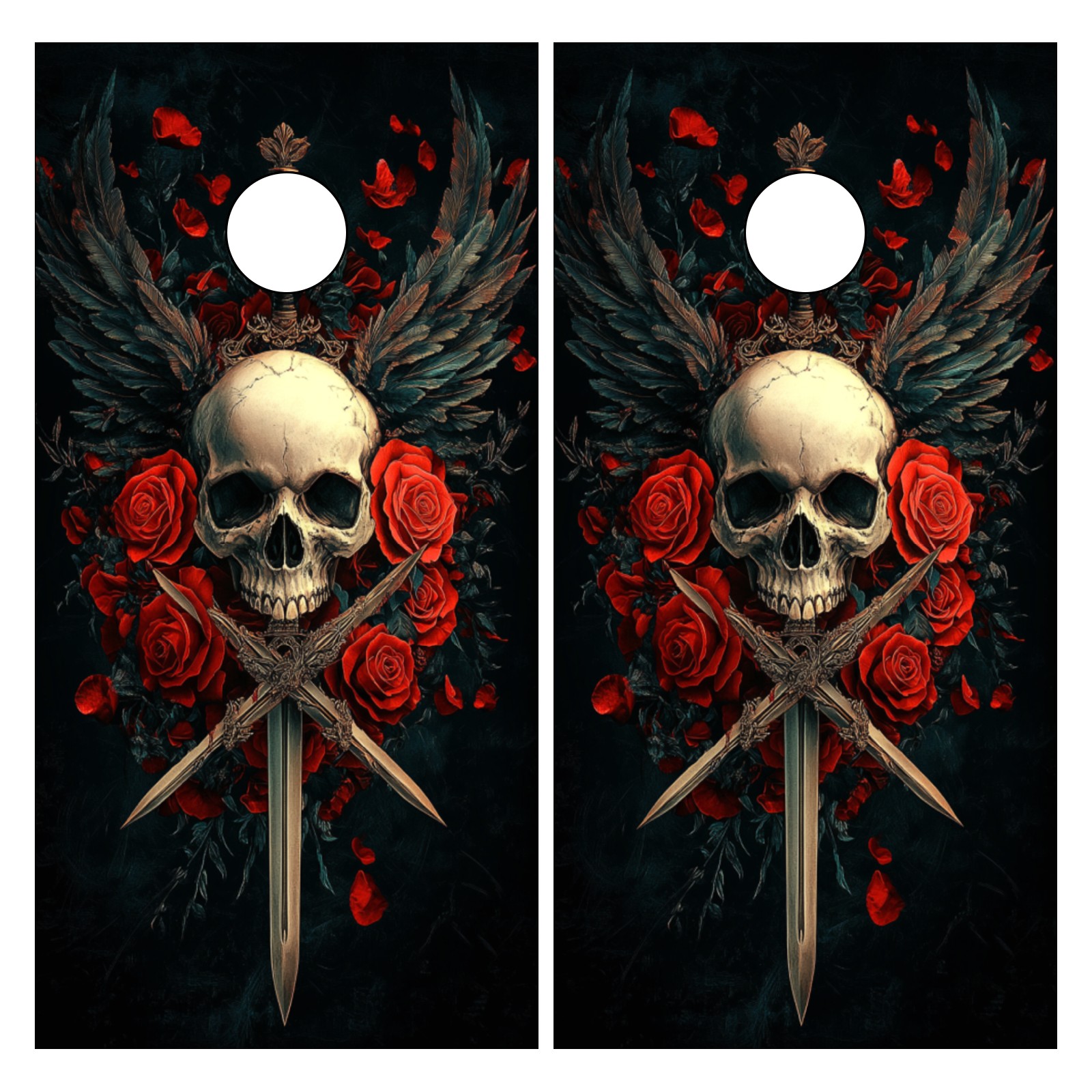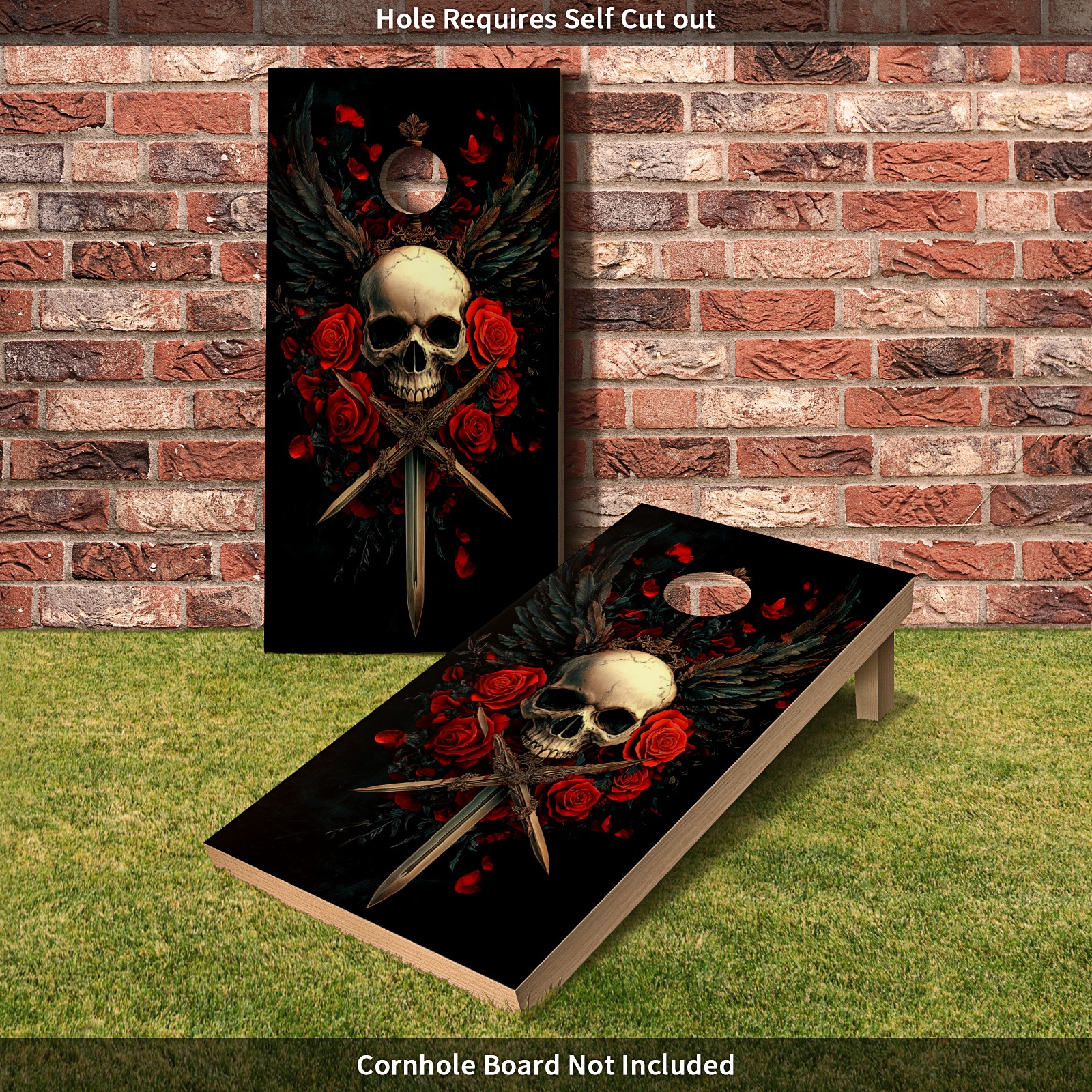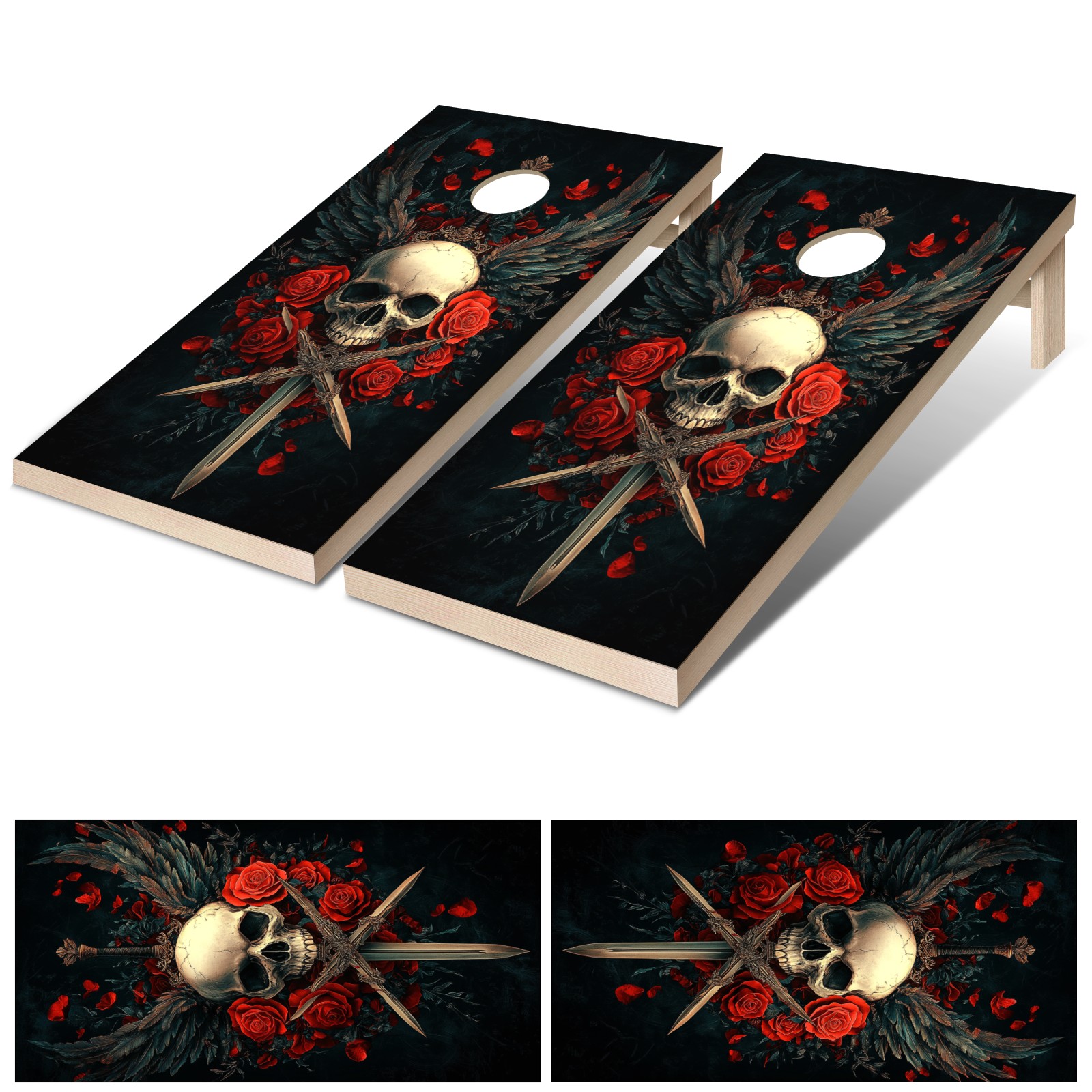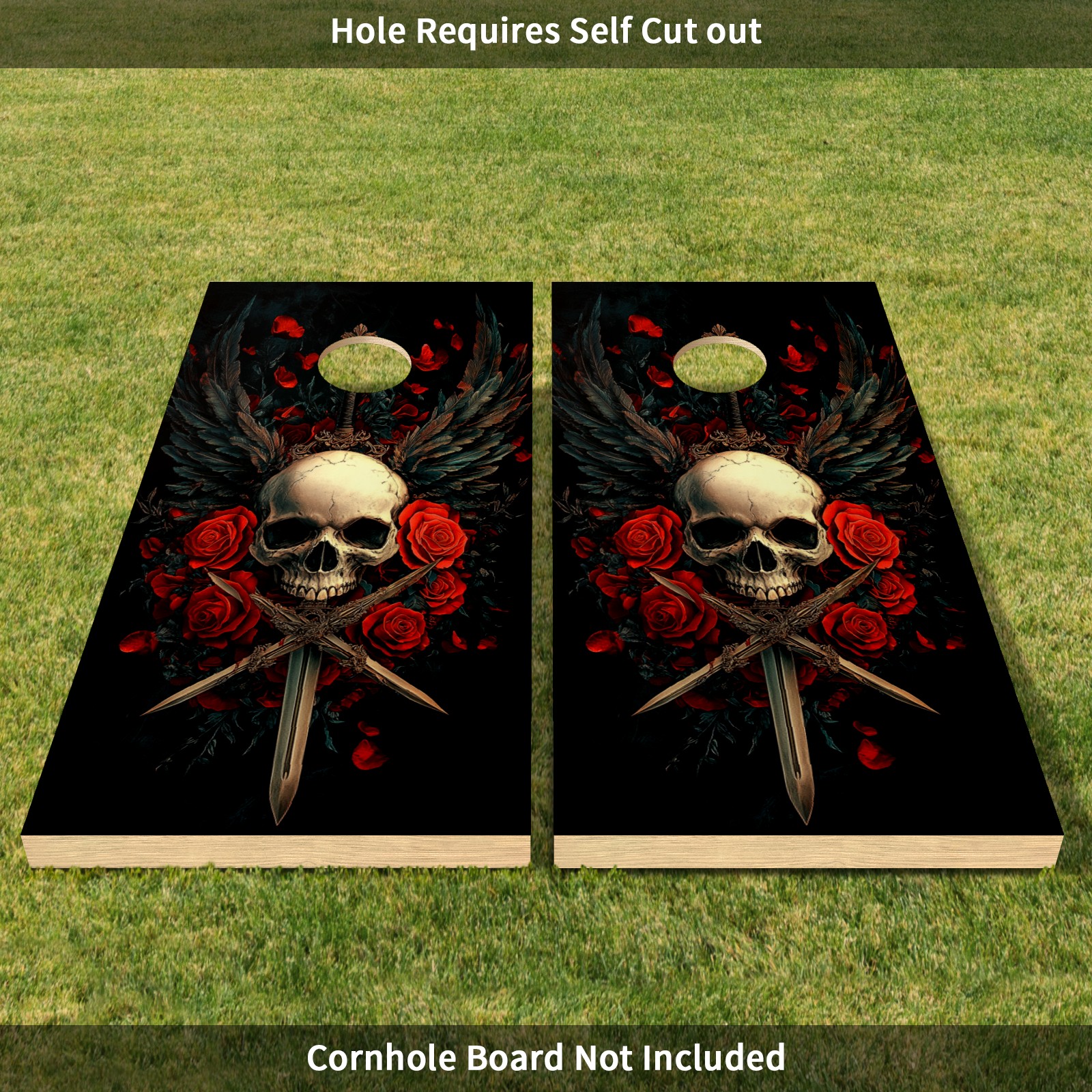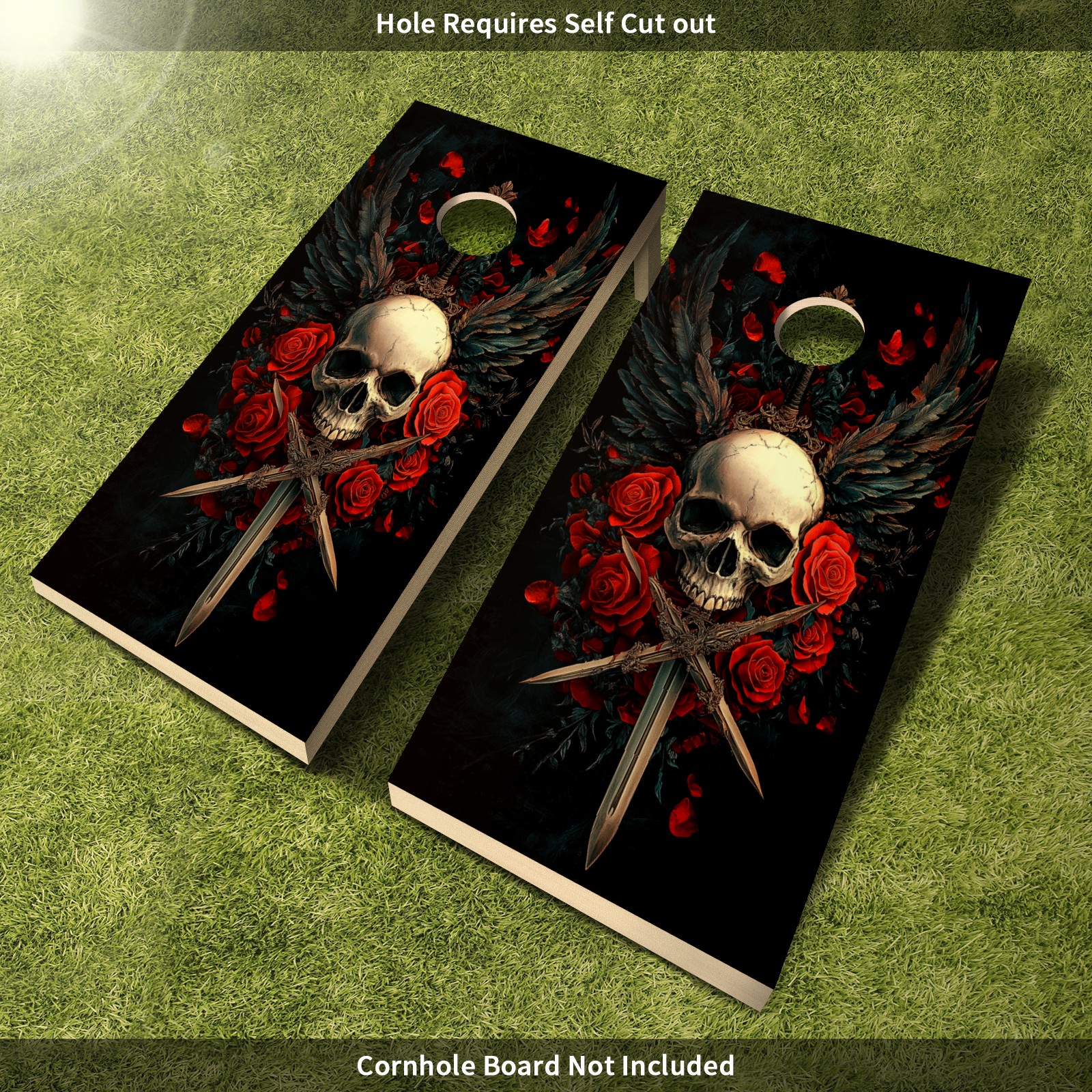 Portable 4x2 Cornhole Set with Two-piece Pack Boards - Cornhole Game Sticker Included - Yard Travel Outdoor Toss Board for Adults Outside Activities Skull Sword Pattern
