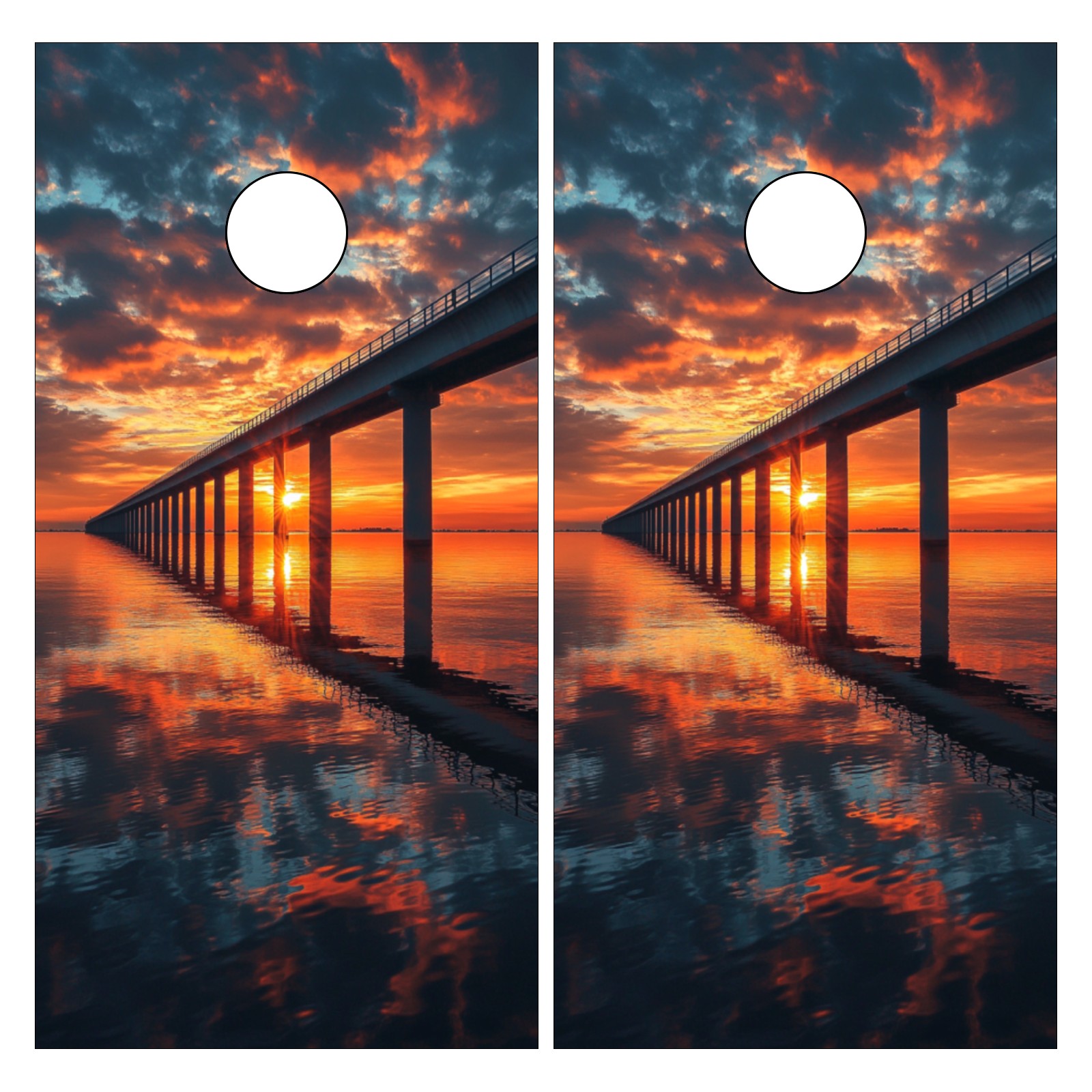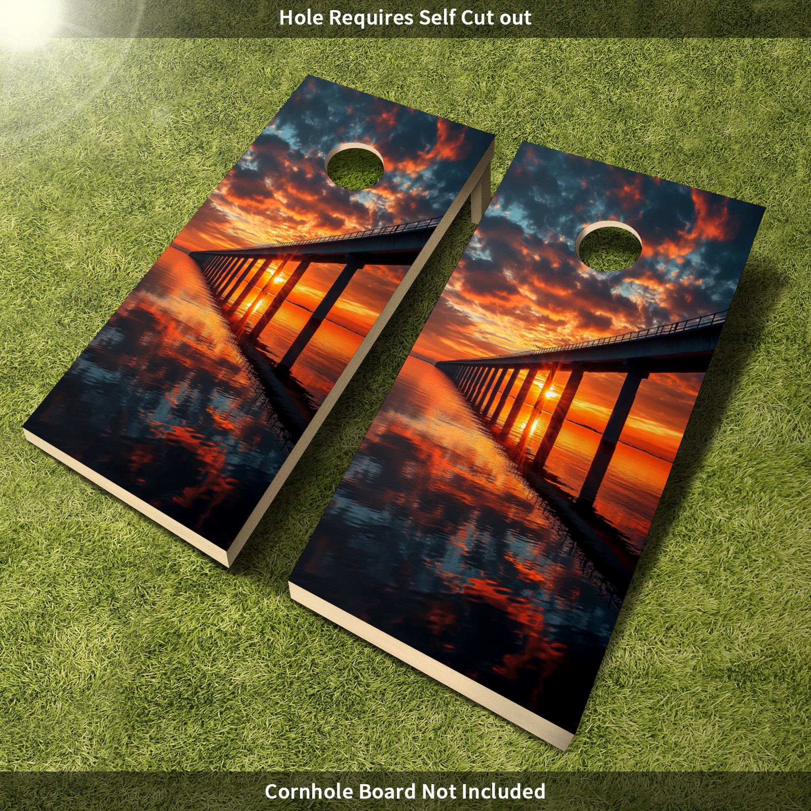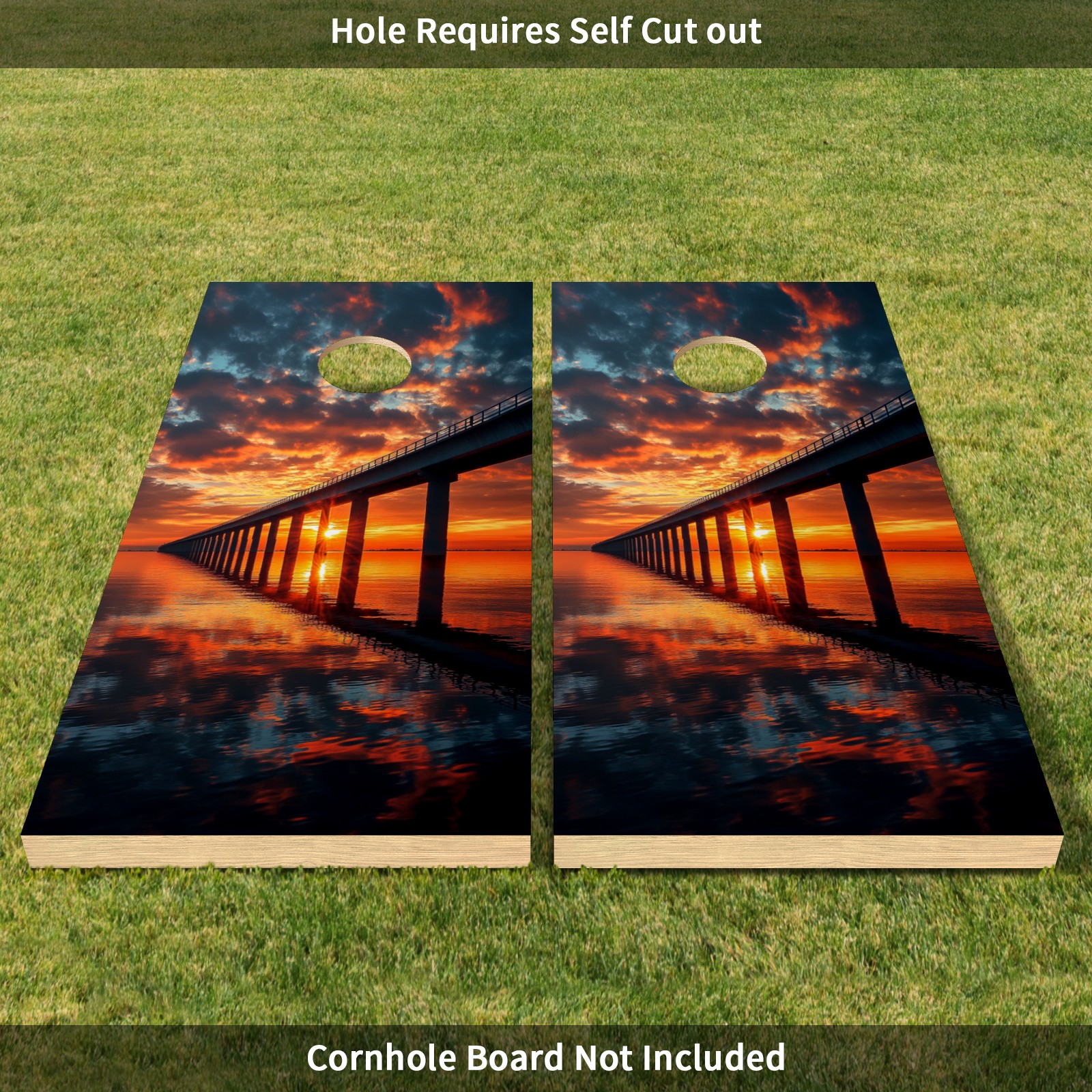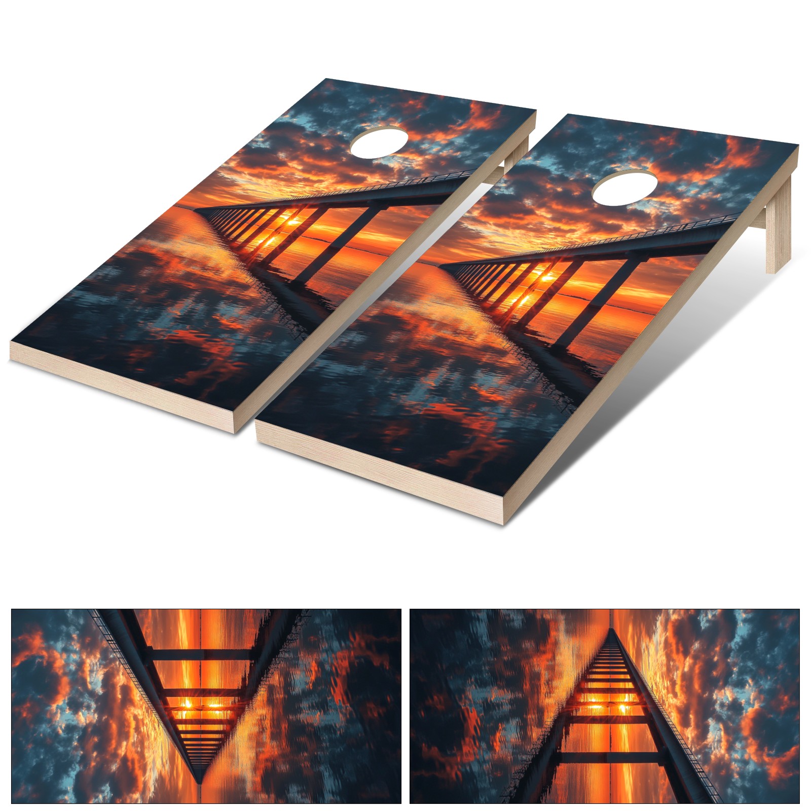 Portable 4x2 Cornhole Set with Two-piece Pack Boards - Cornhole Game Sticker Included - Yard Travel Outdoor Toss Board for Adults Outside Activities Sunset Pattern