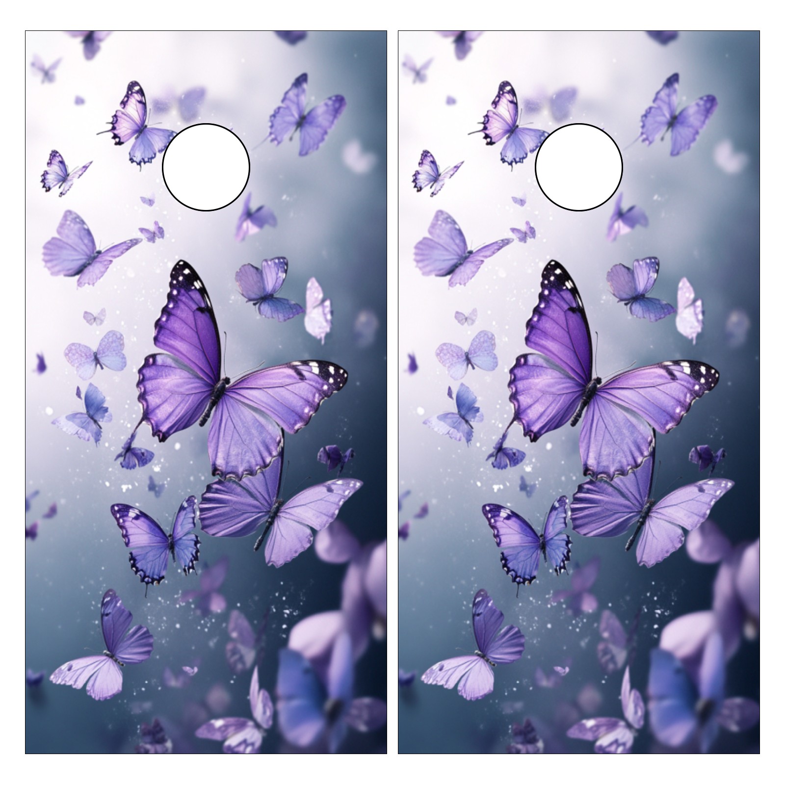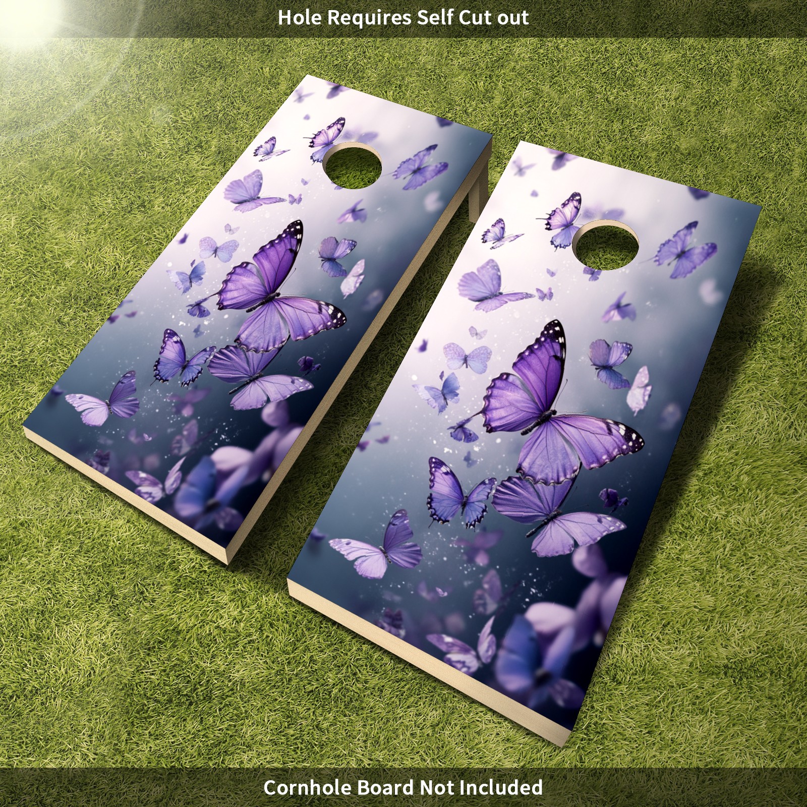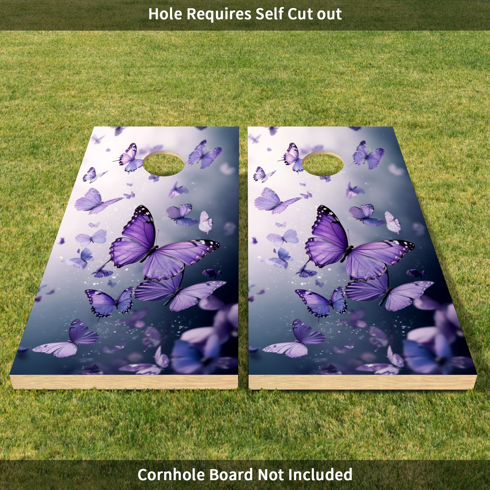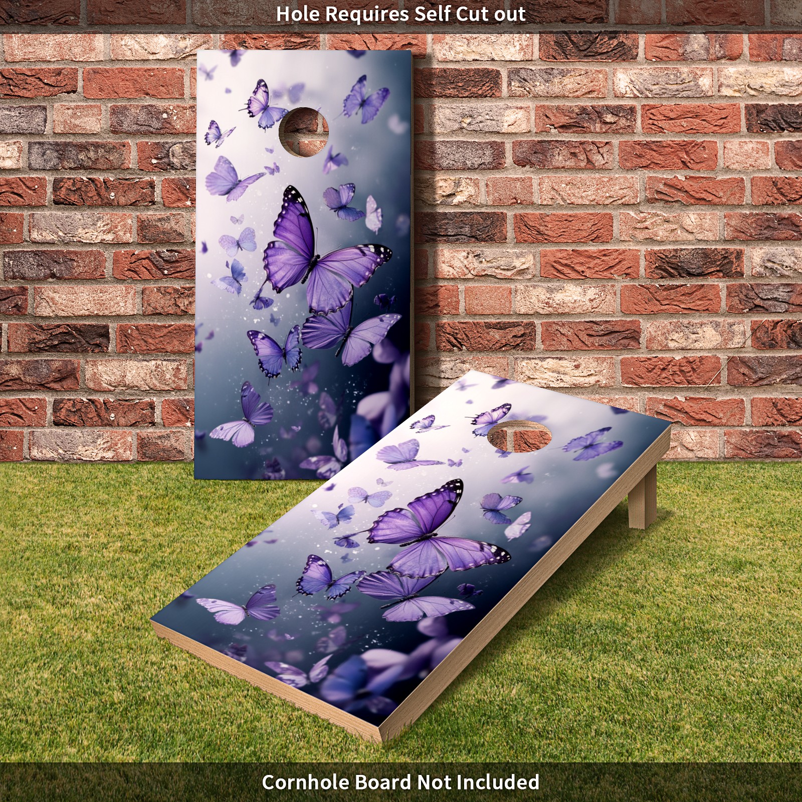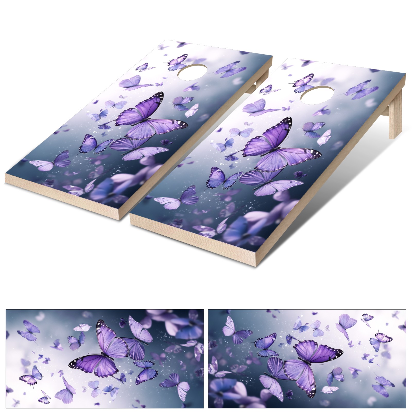 Portable 4x2 Cornhole Set with Two-piece Pack Boards - Cornhole Game Sticker Included - Yard Travel Outdoor Toss Board for Adults Outside Activities Purple Butterfly Pattern