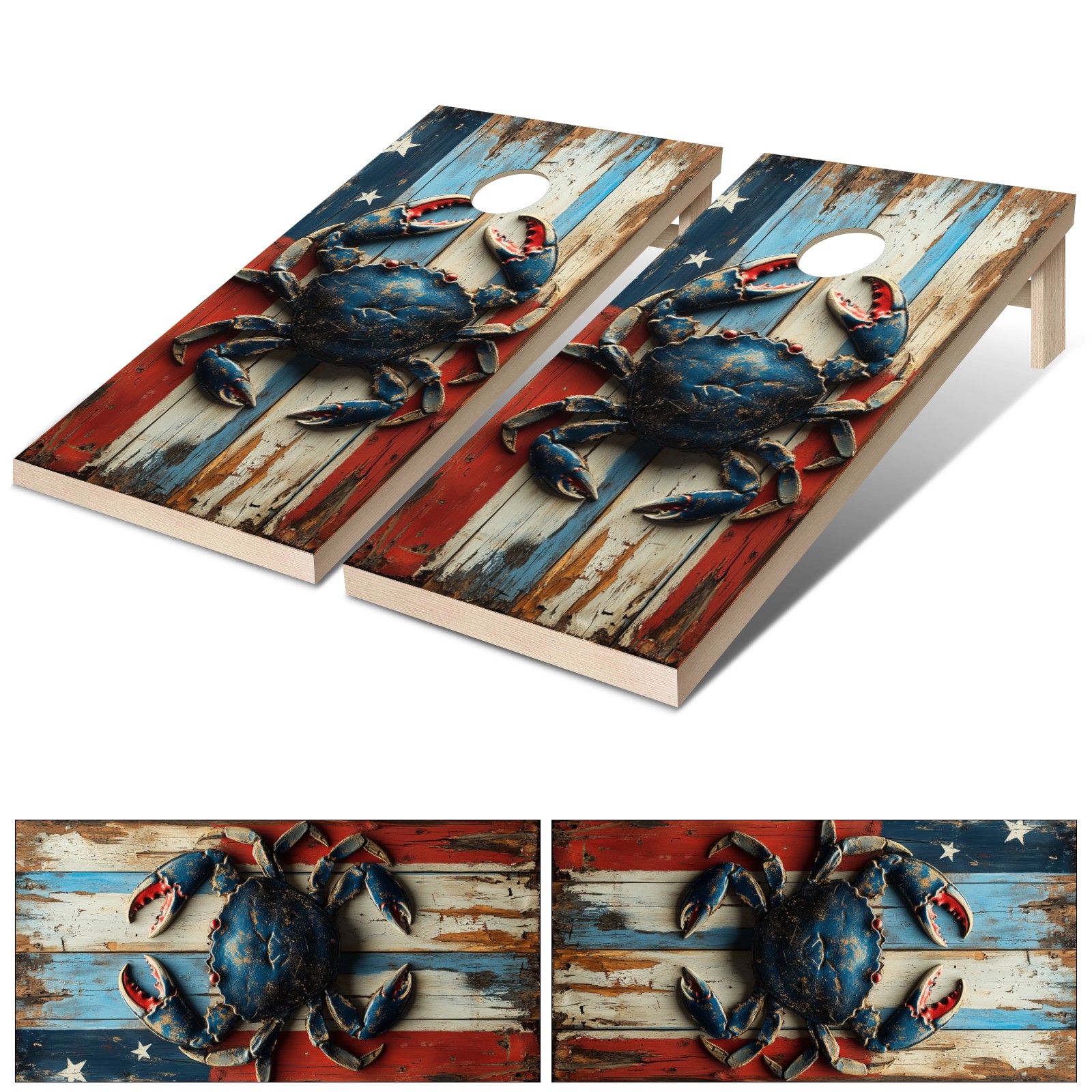 Portable 4x2 Cornhole Set with Two-piece Pack Boards - Cornhole Game Sticker Included - Yard Travel Outdoor Toss Board for Adults Outside Activities Rusty Crab Pattern