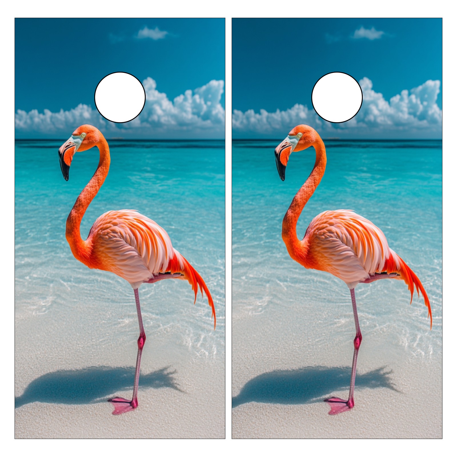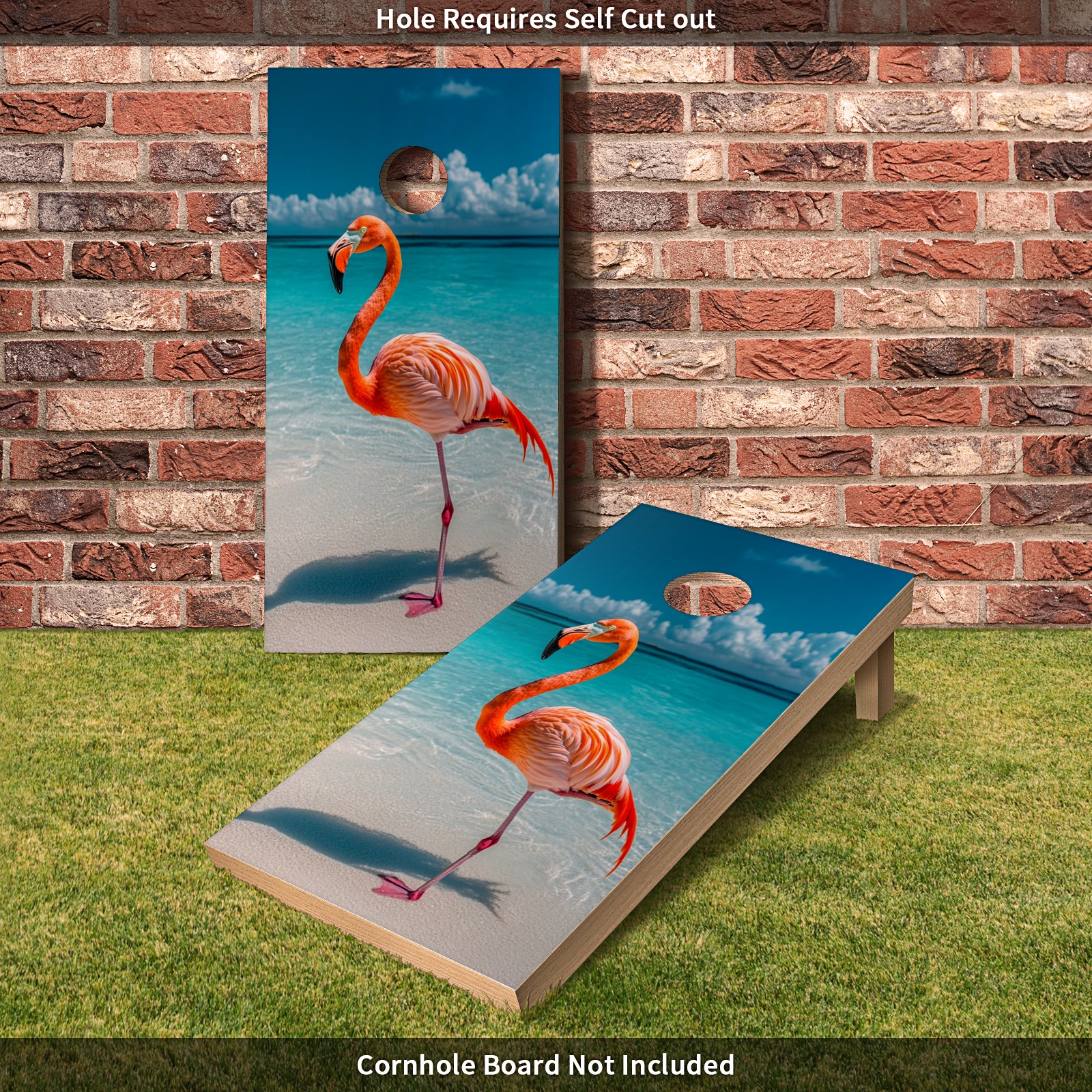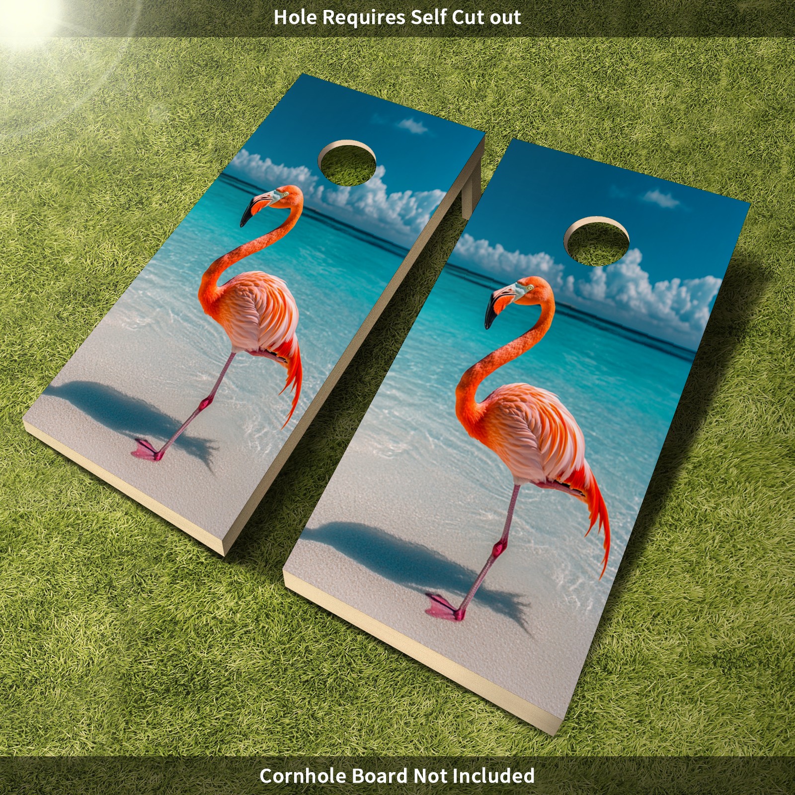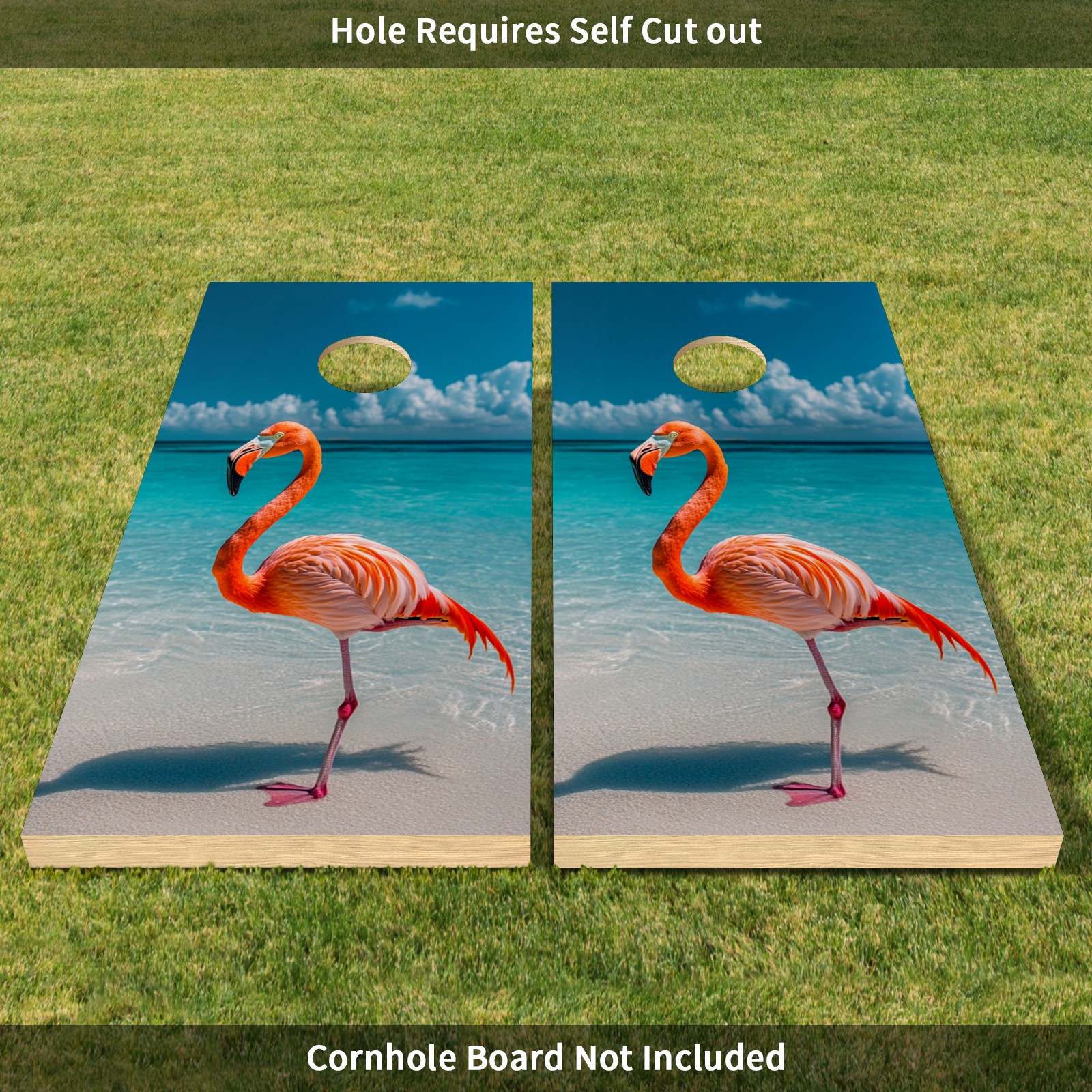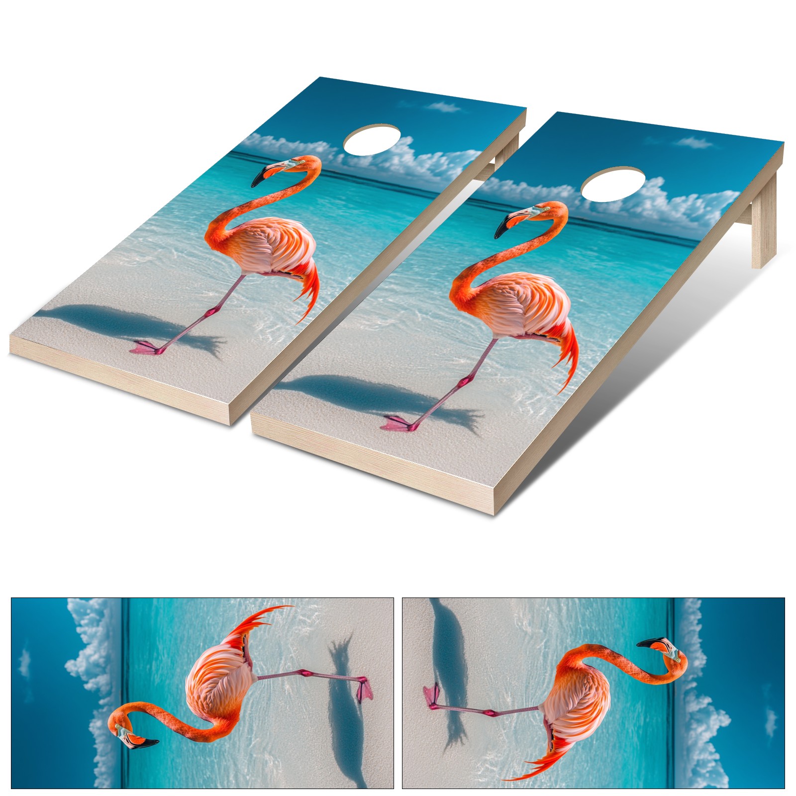 Portable 4x2 Cornhole Set with Two-piece Pack Boards - Cornhole Game Sticker Included - Yard Travel Outdoor Toss Board for Adults Outside Activities Flamingo Seaside Pattern