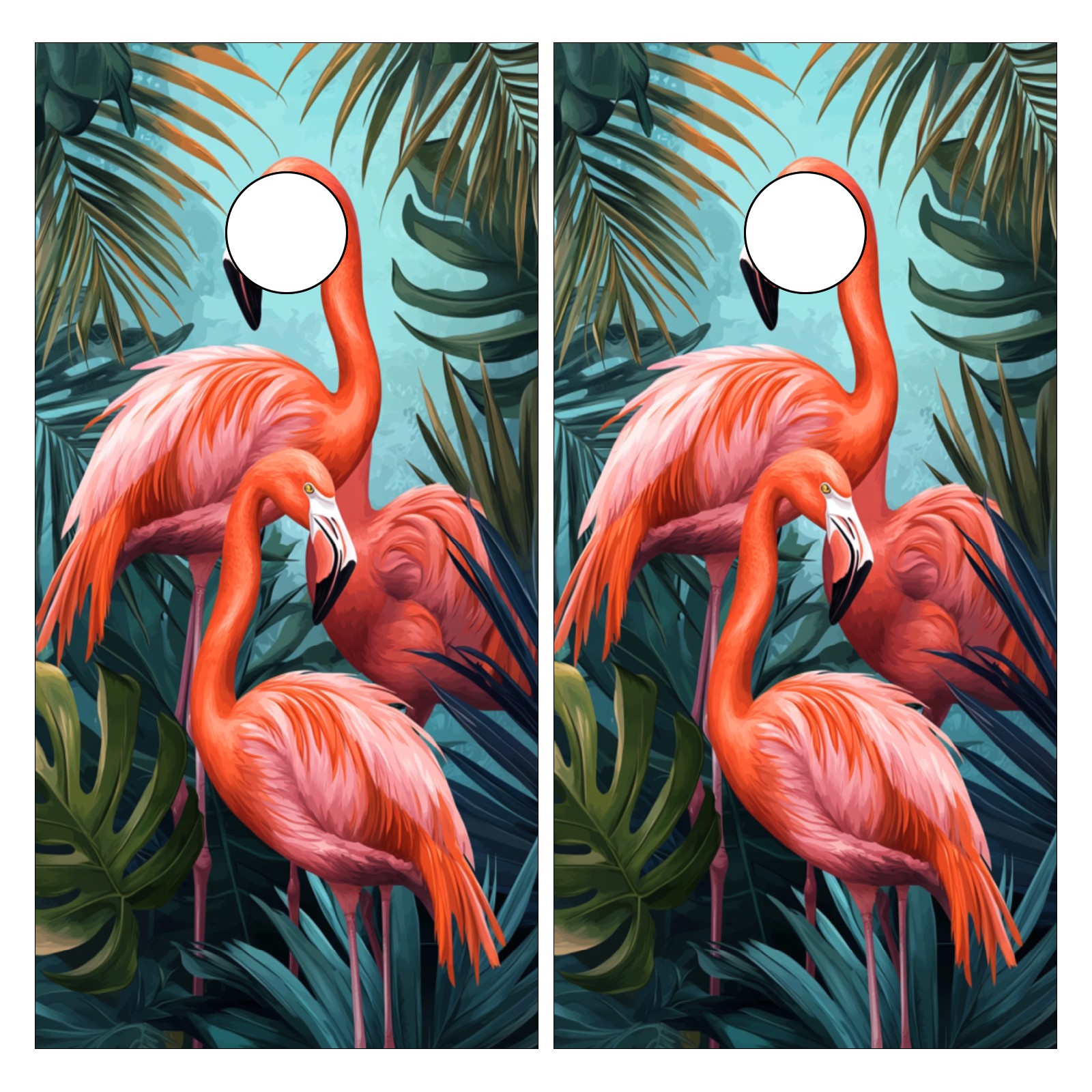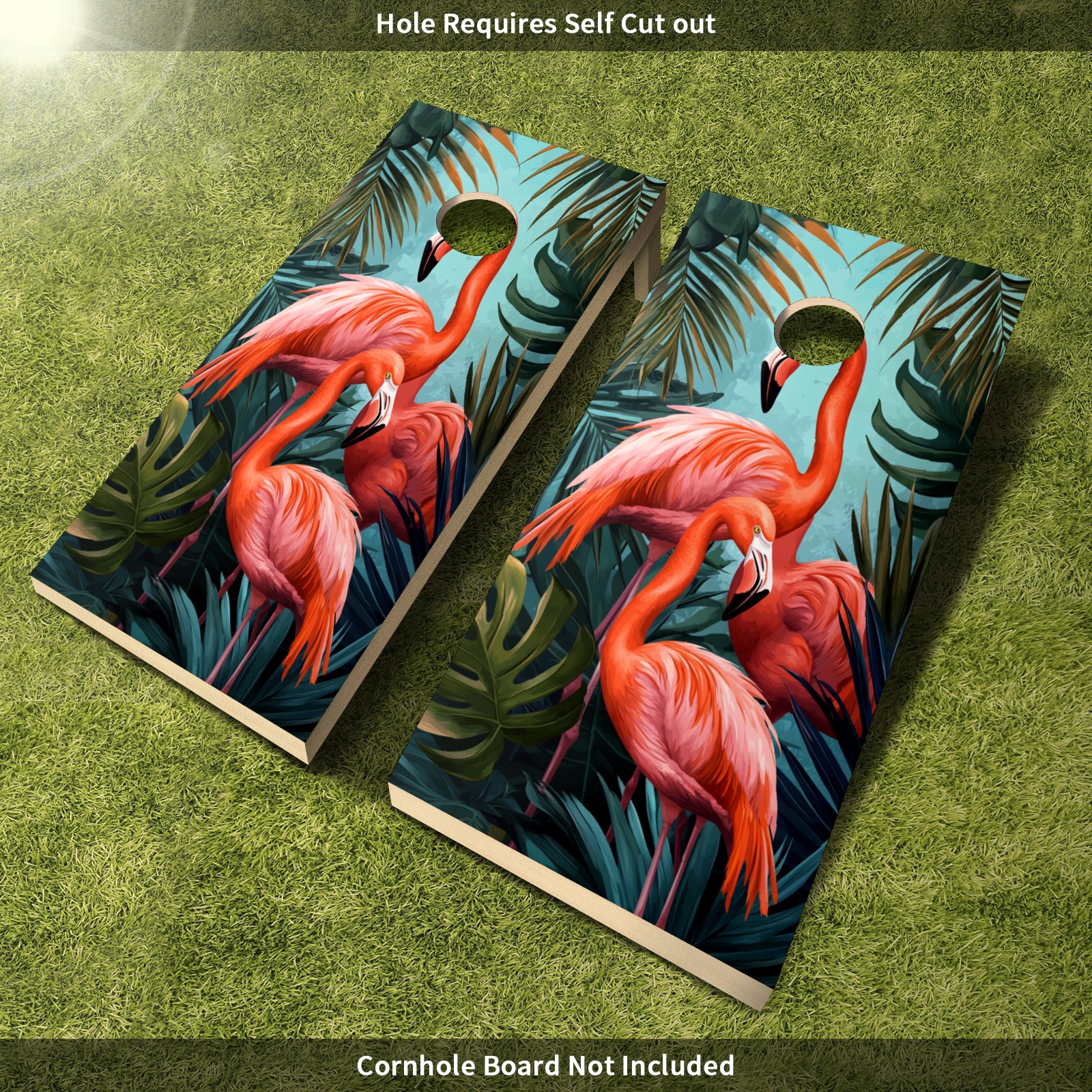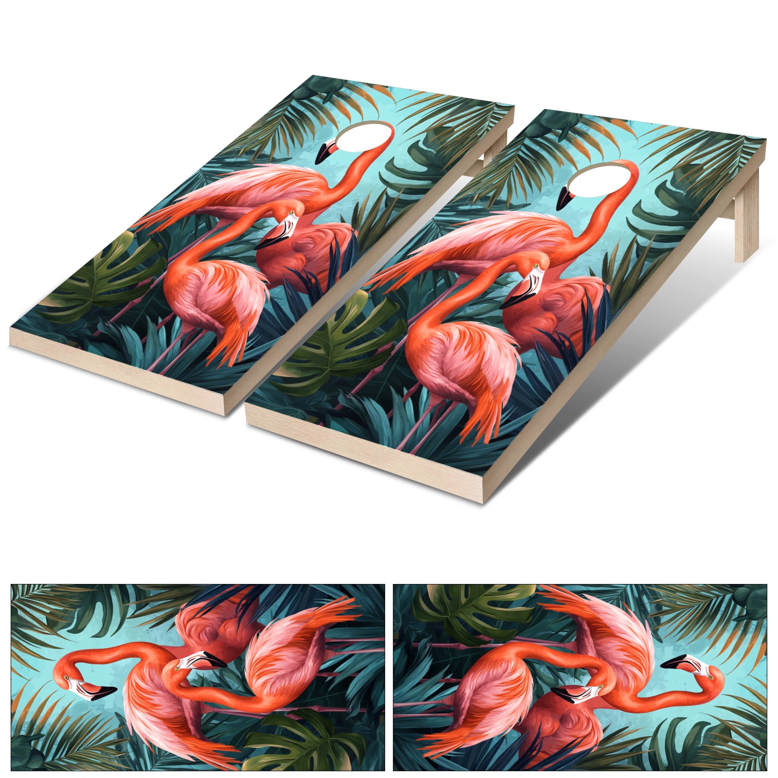 Portable 4x2 Cornhole Set with Two-piece Pack Boards - Cornhole Game Sticker Included - Yard Travel Outdoor Toss Board for Adults Outside Activities Pink Flamingo Pattern