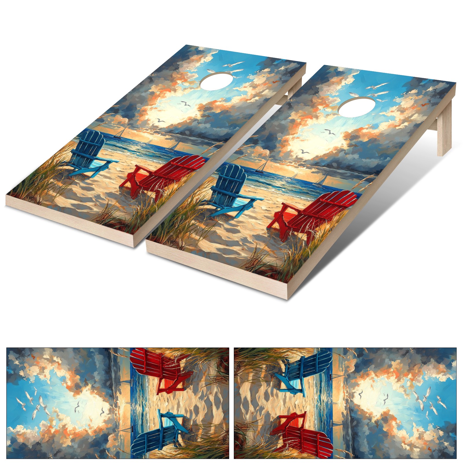 Portable 4x2 Cornhole Set with Two-piece Pack Boards - Cornhole Game Sticker Included - Yard Travel Outdoor Toss Board for Adults Outside Activities Beach Vacation Pattern