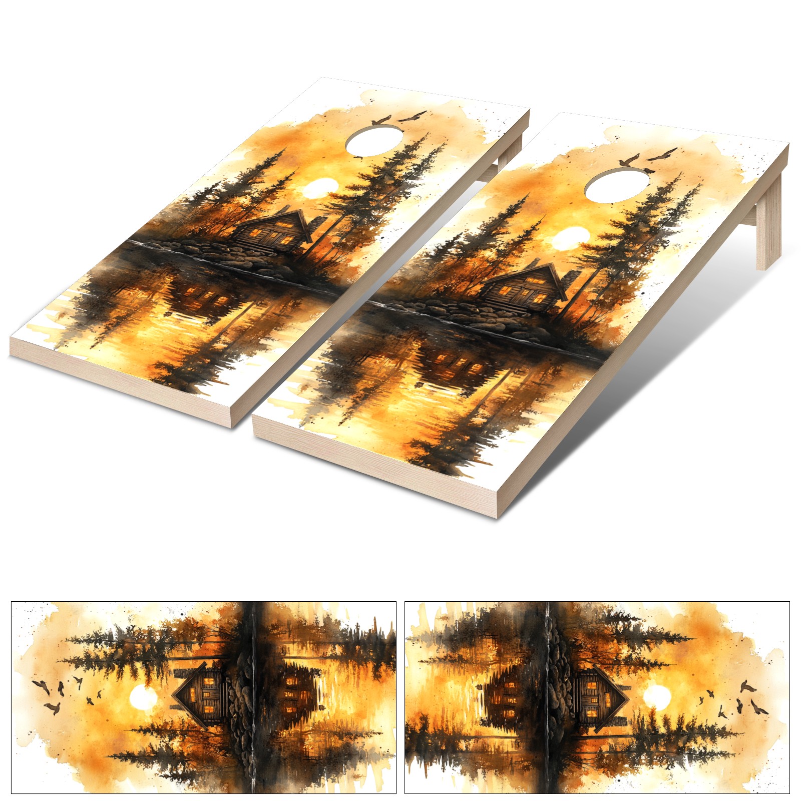 Portable 4x2 Cornhole Set with Two-piece Pack Boards - Cornhole Game Sticker Included - Yard Travel Outdoor Toss Board for Adults Outside Activities Sunset Painting