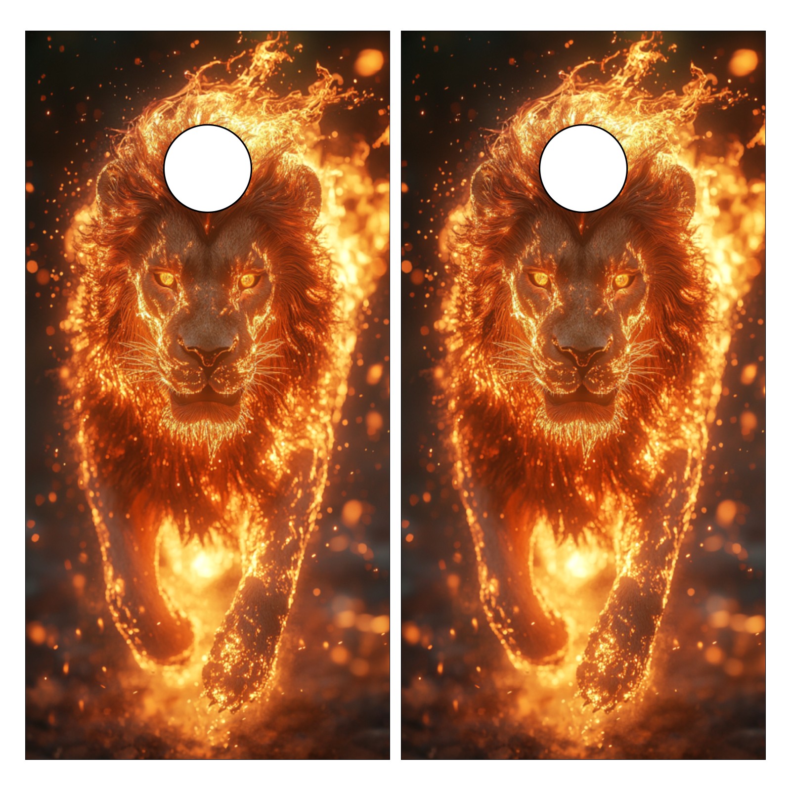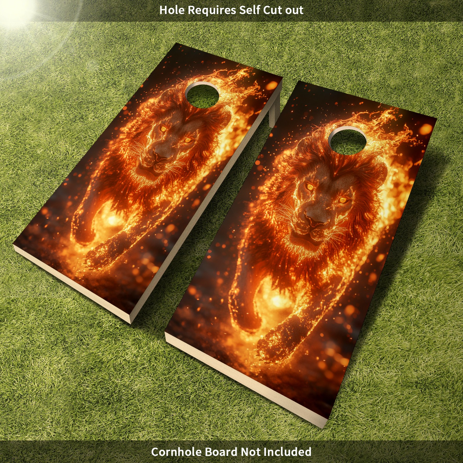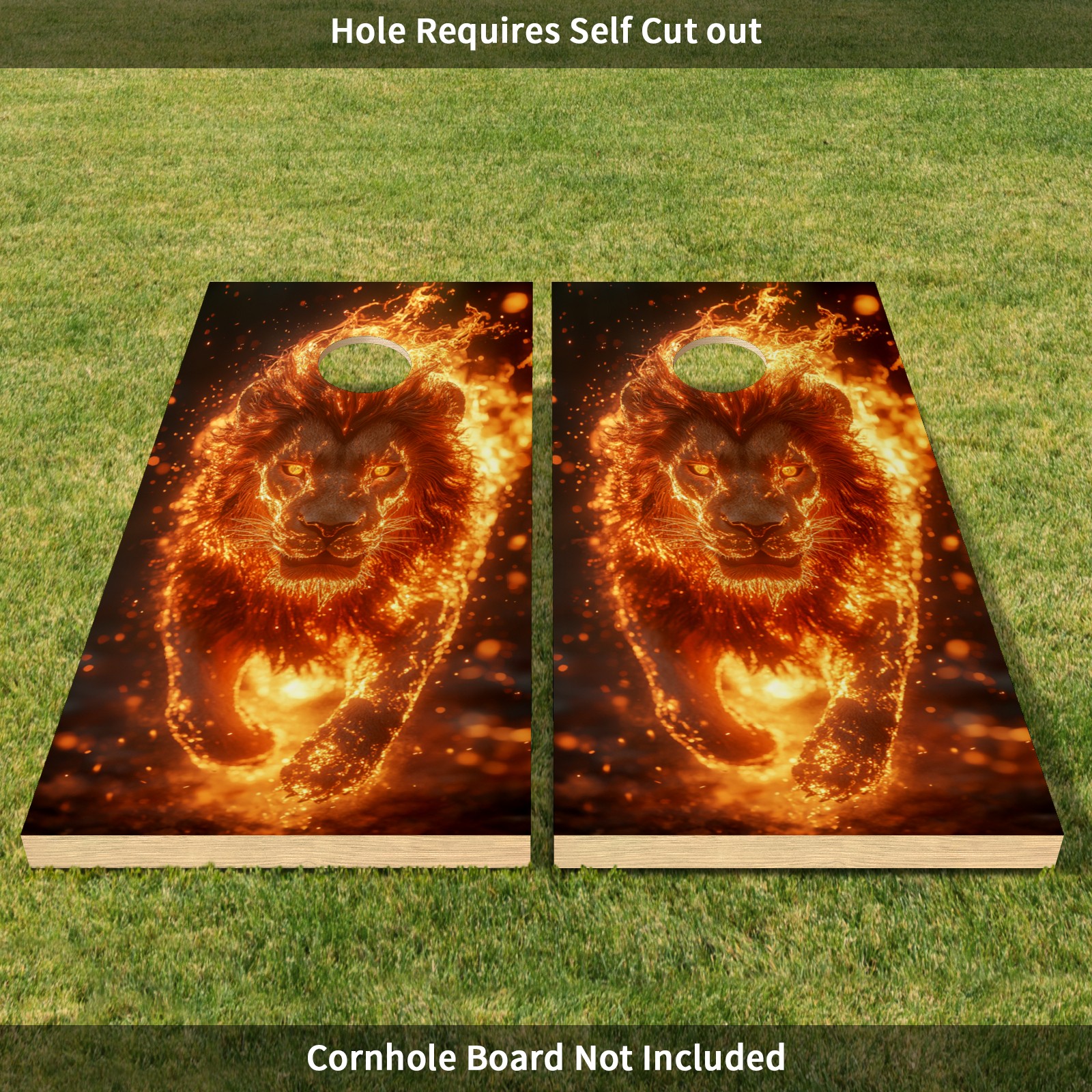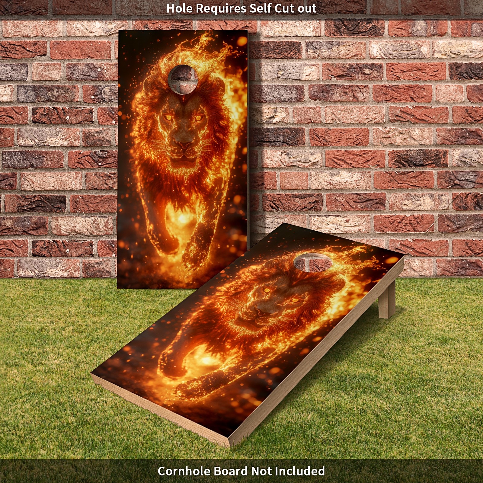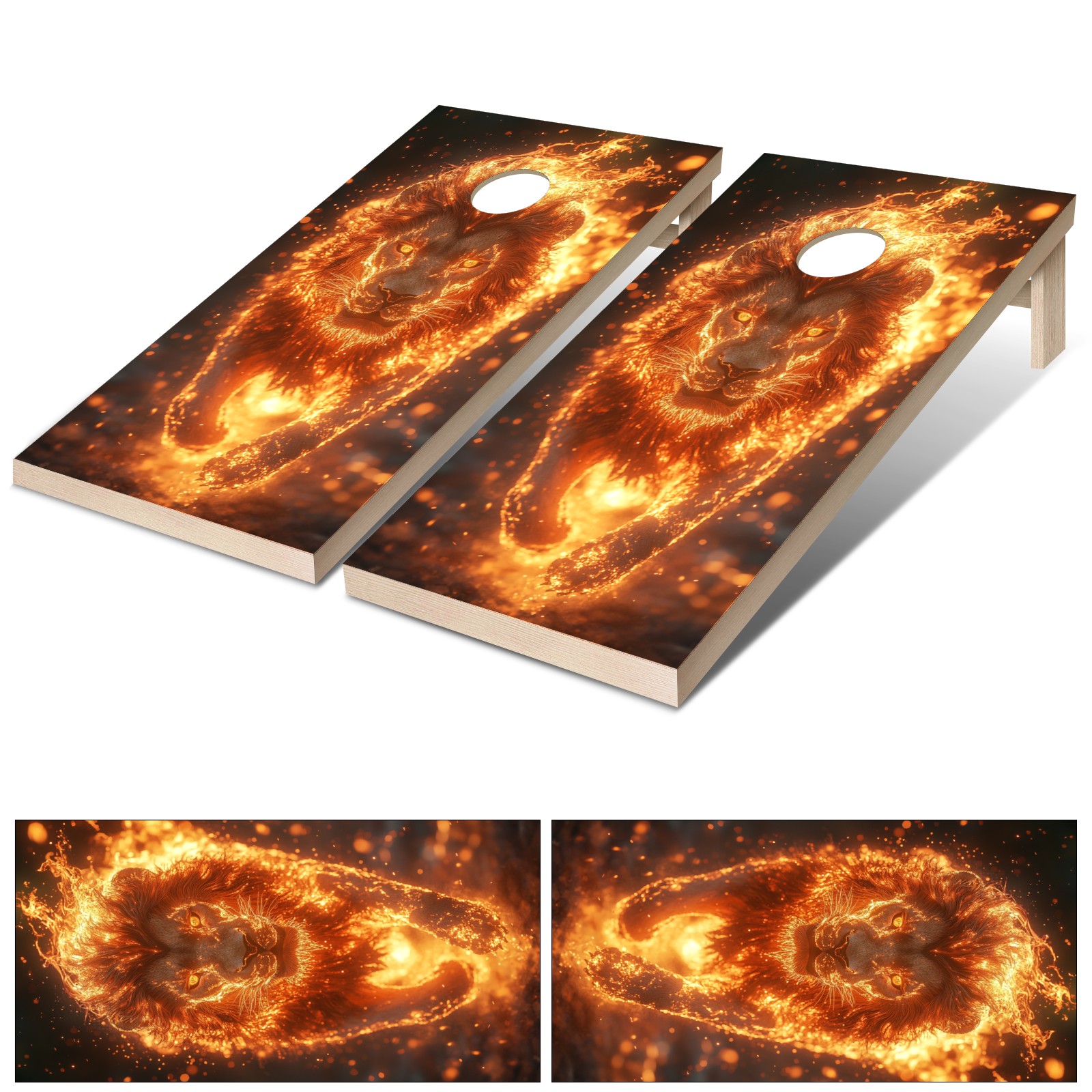 Portable 4x2 Cornhole Set with Two-piece Pack Boards - Cornhole Game Sticker Included - Yard Travel Outdoor Toss Board for Adults Outside Activities Flaming Lion Pattern