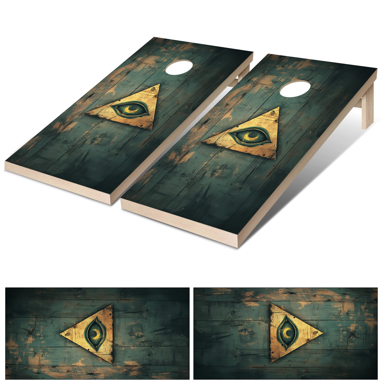 Portable 4x2 Cornhole Set with Two-piece Pack Boards - Cornhole Game Sticker Included - Yard Travel Outdoor Toss Board for Adults Outside Activities Triangular eye pattern
