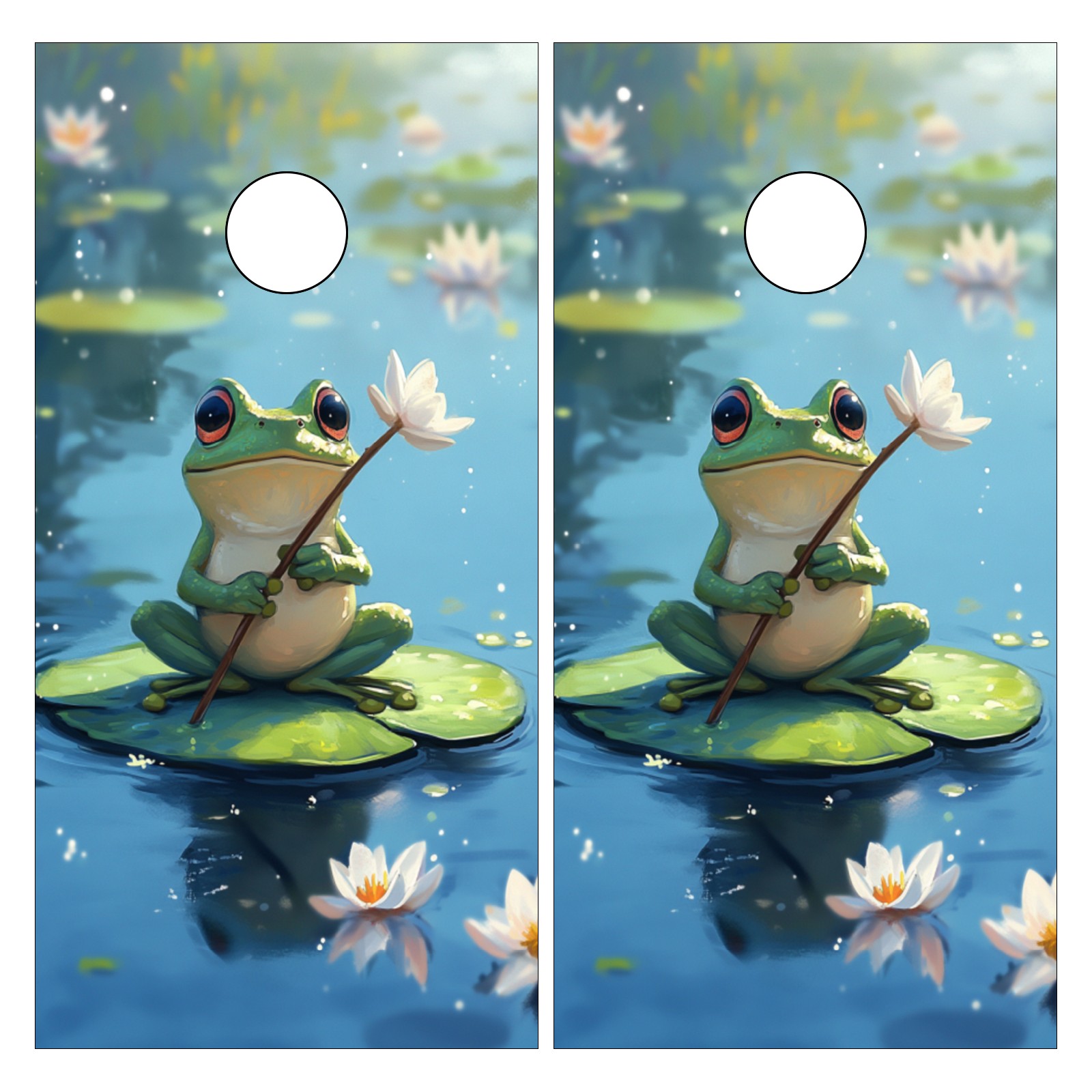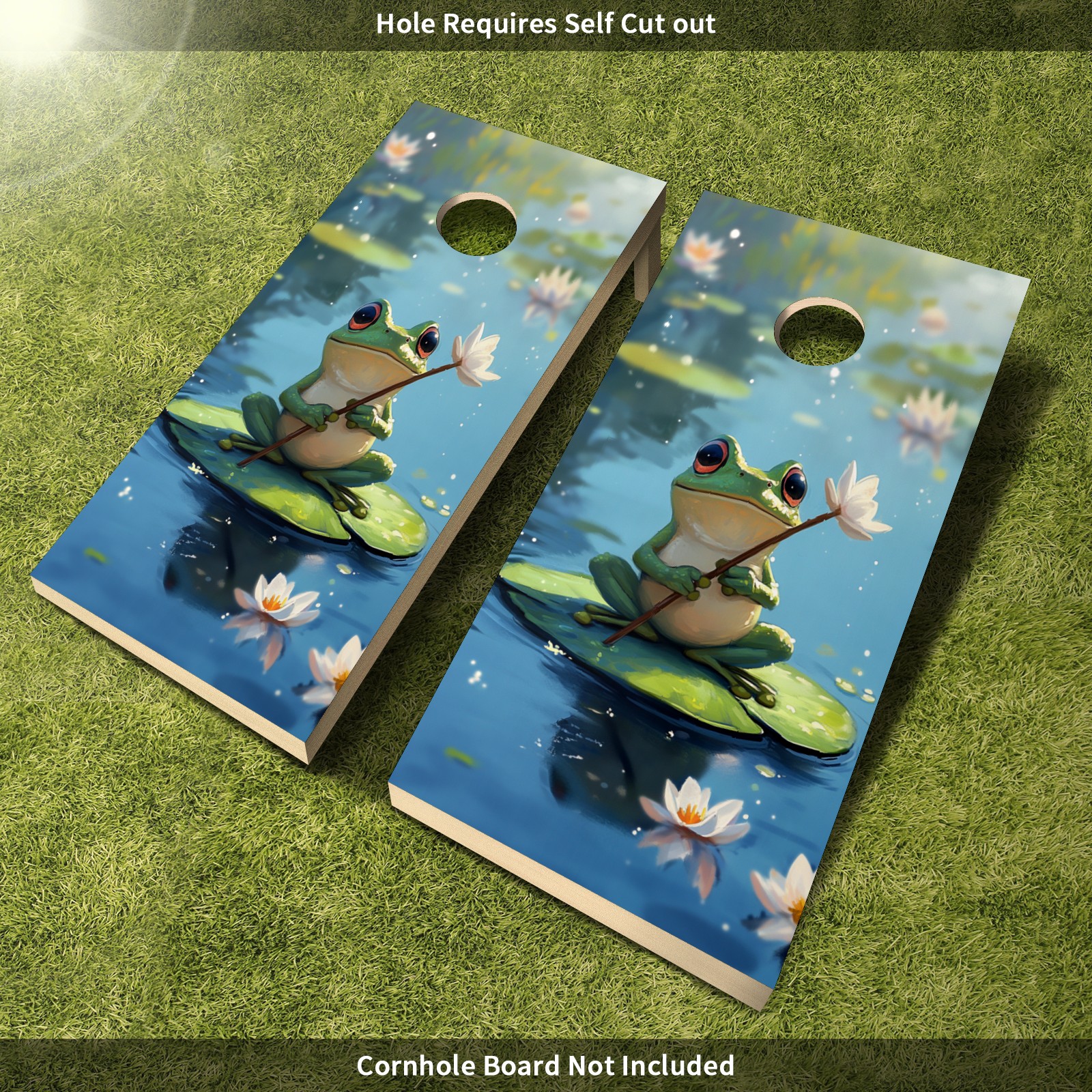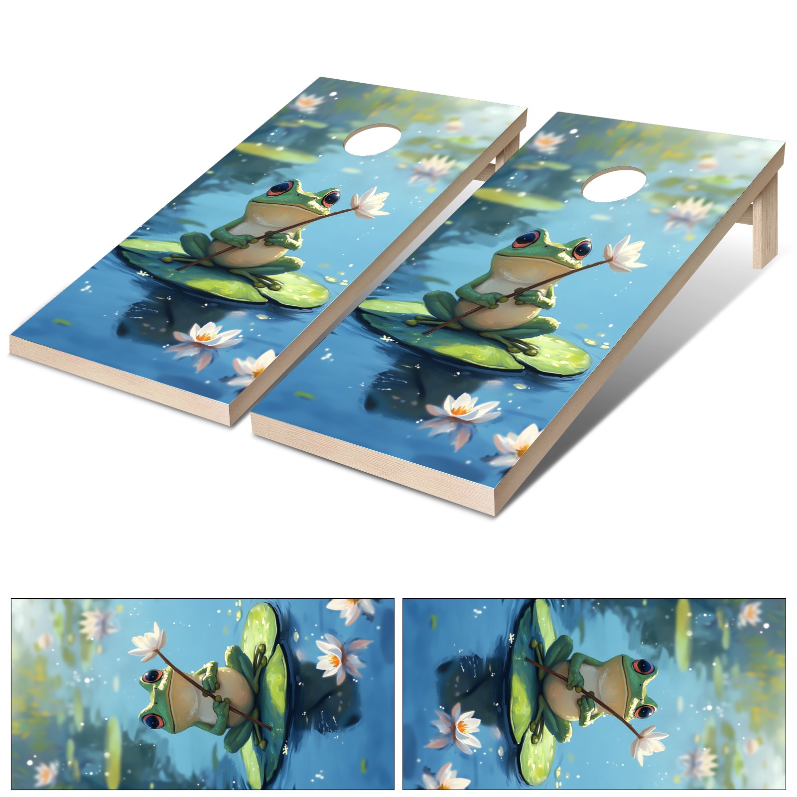 Portable 4x2 Cornhole Set with Two-piece Pack Boards - Cornhole Game Sticker Included - Yard Travel Outdoor Toss Board for Adults Outside Activities Pond Frog