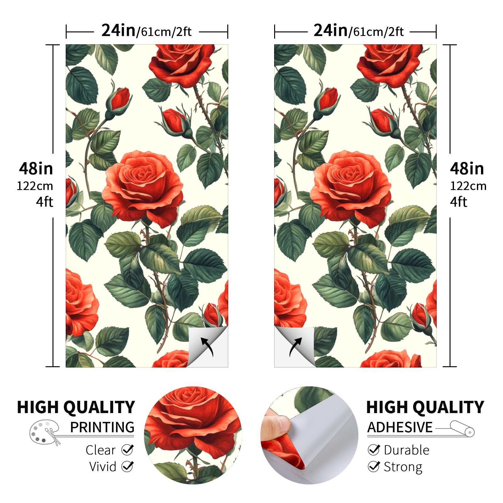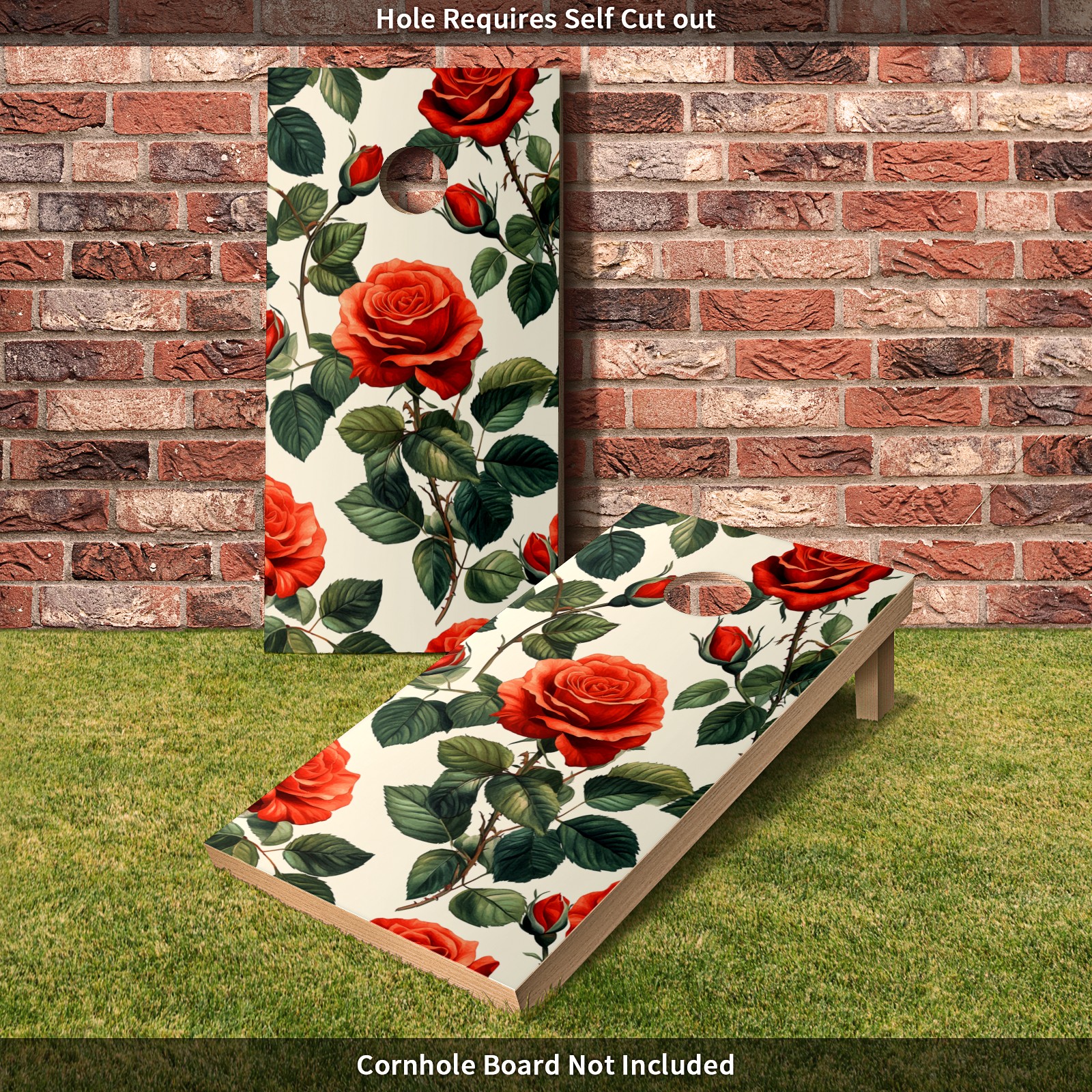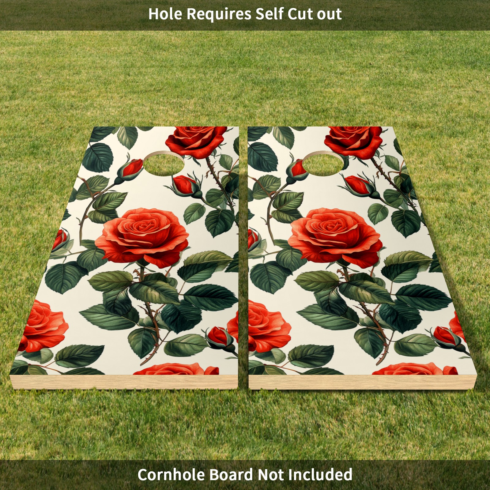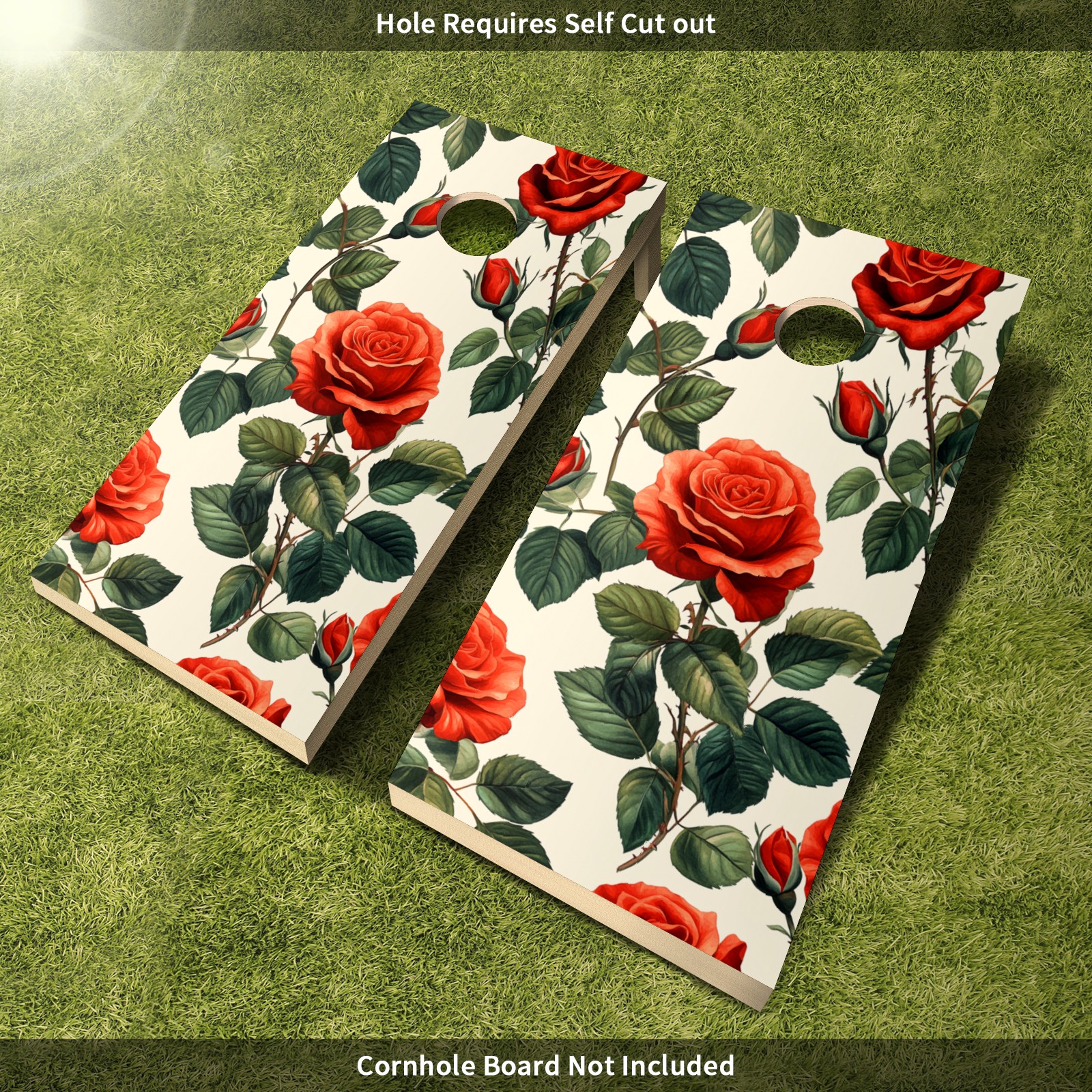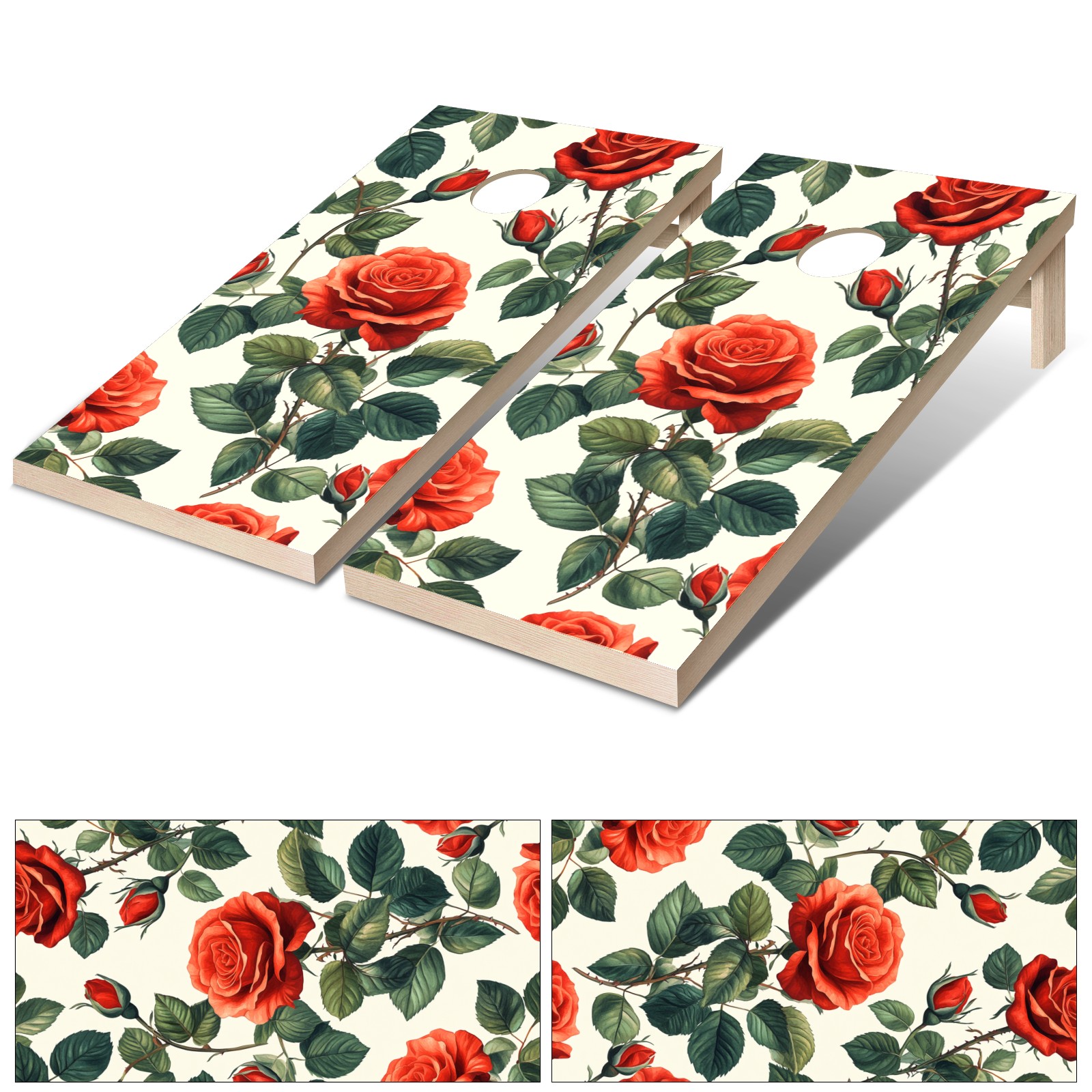 Portable 4x2 Cornhole Set with Two-piece Pack Boards - Cornhole Game Sticker Included - Yard Travel Outdoor Toss Board for Adults Outside Activities Red Rose Pattern