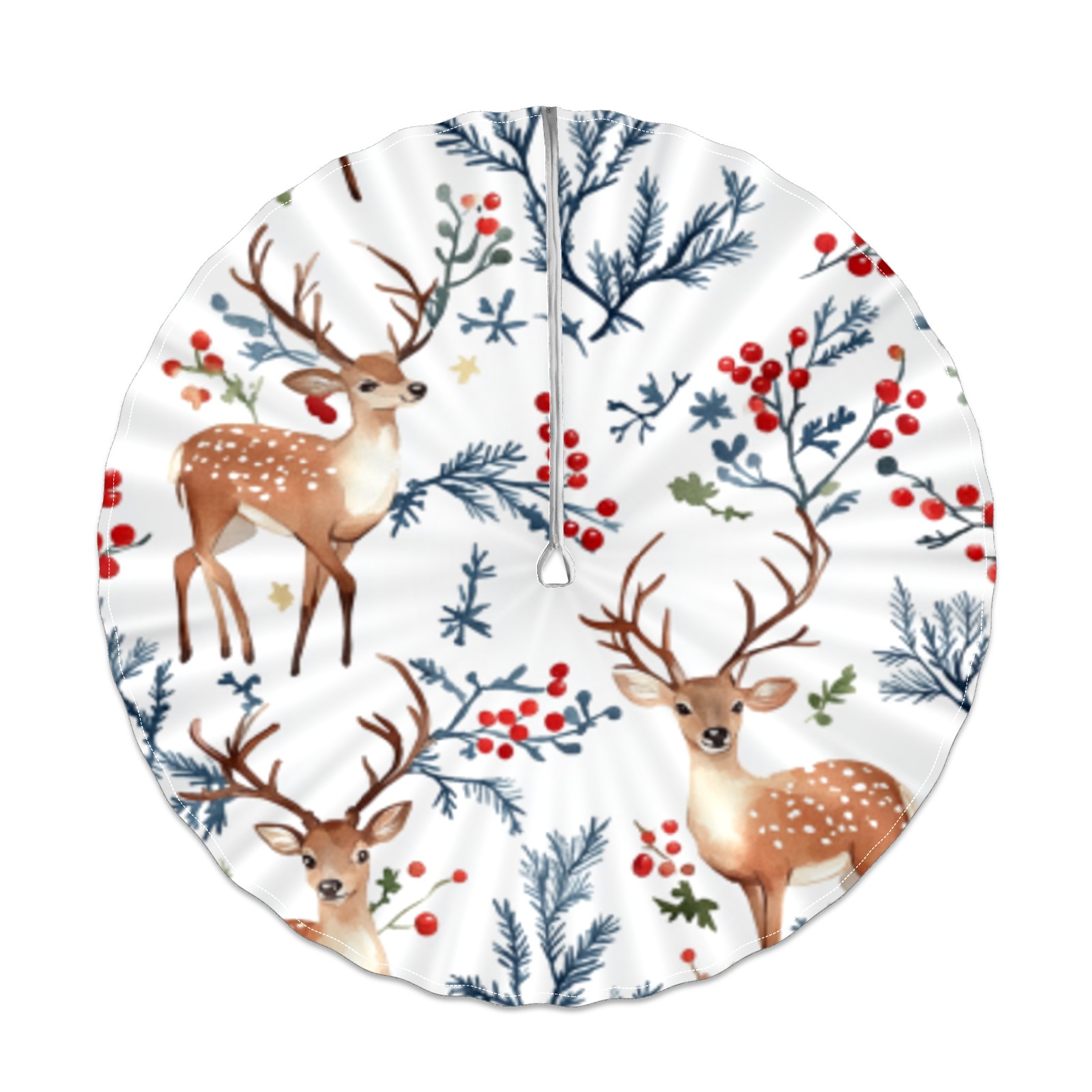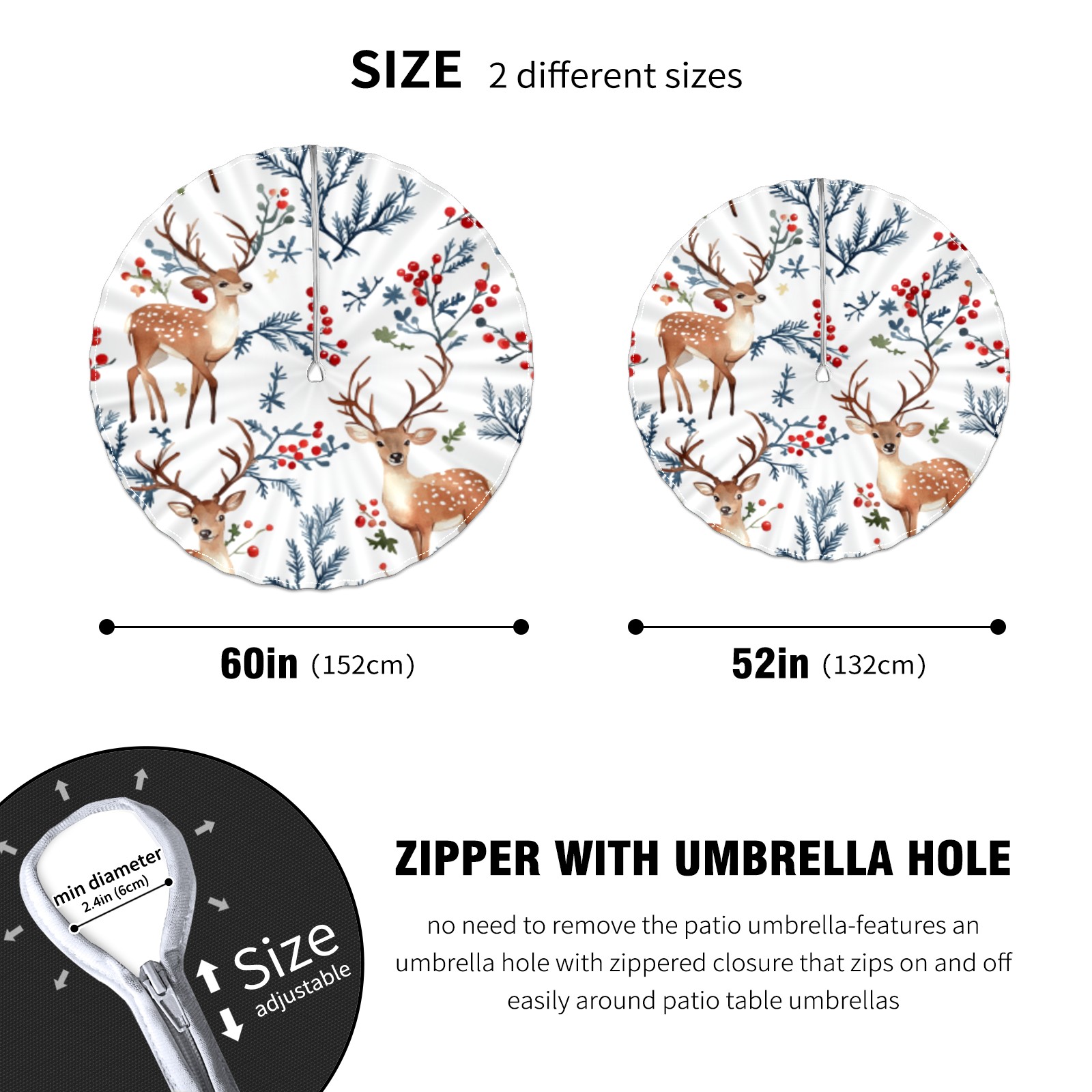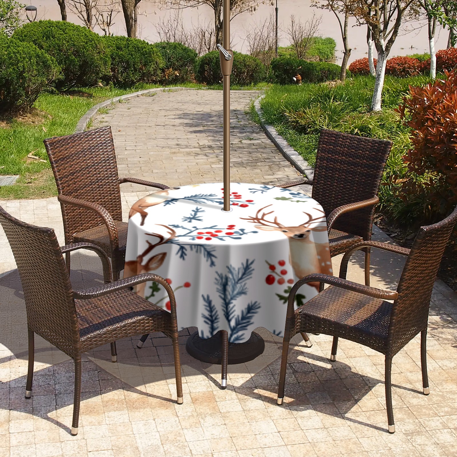 Round Tablecloth with Adjustable Zippered Umbrella Hole Polyester Table Cover Easy Install for Patio, Restaurant & Outdoor Dining Deer And Berry Pattern (60in)