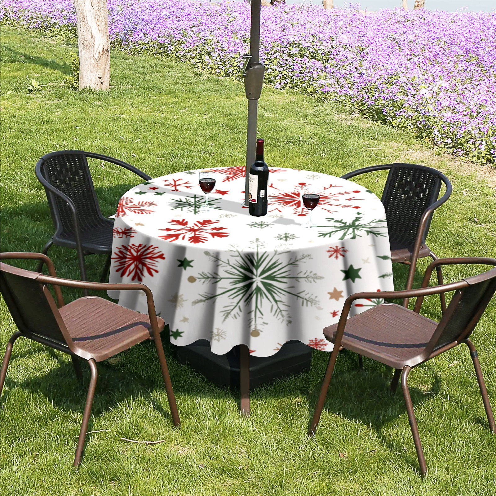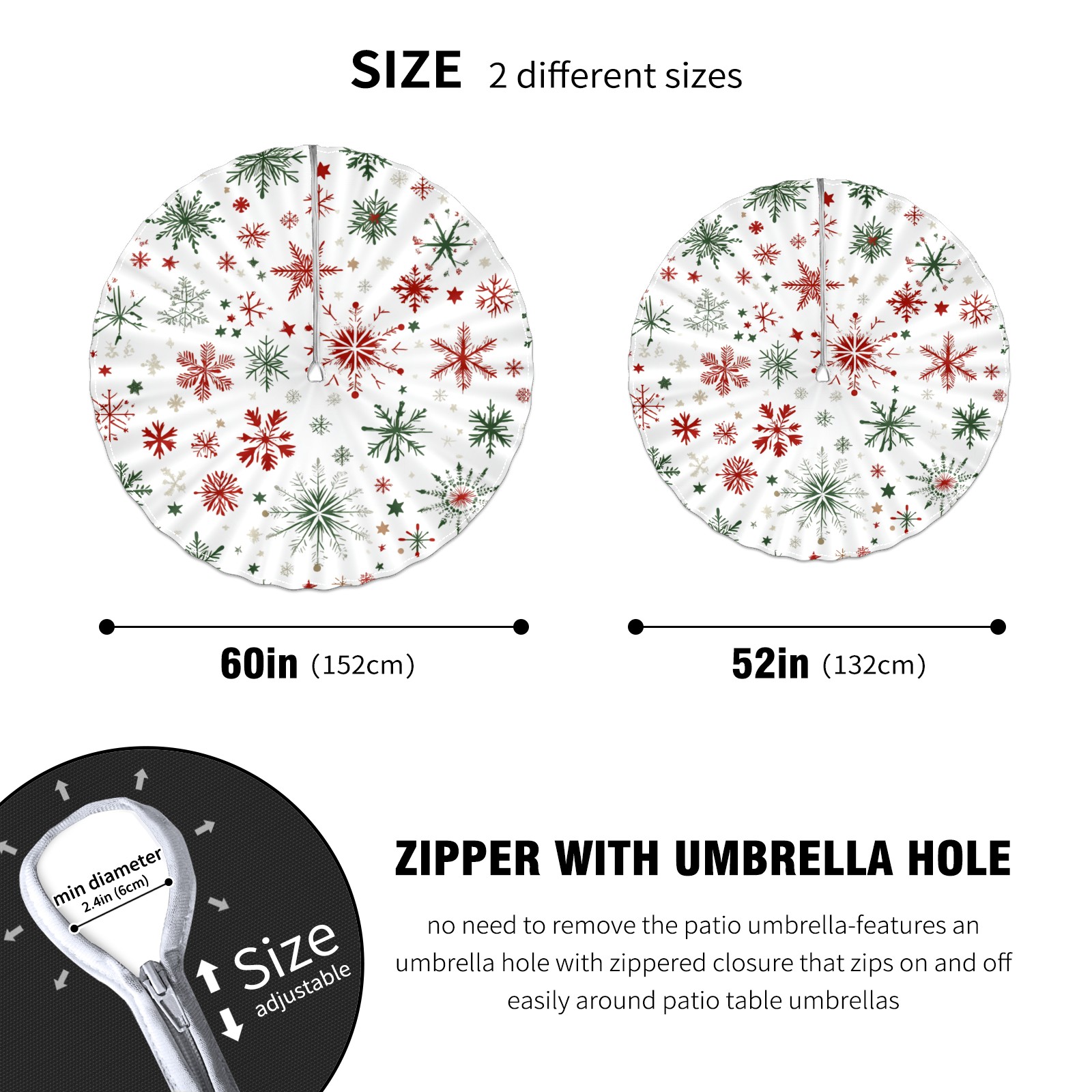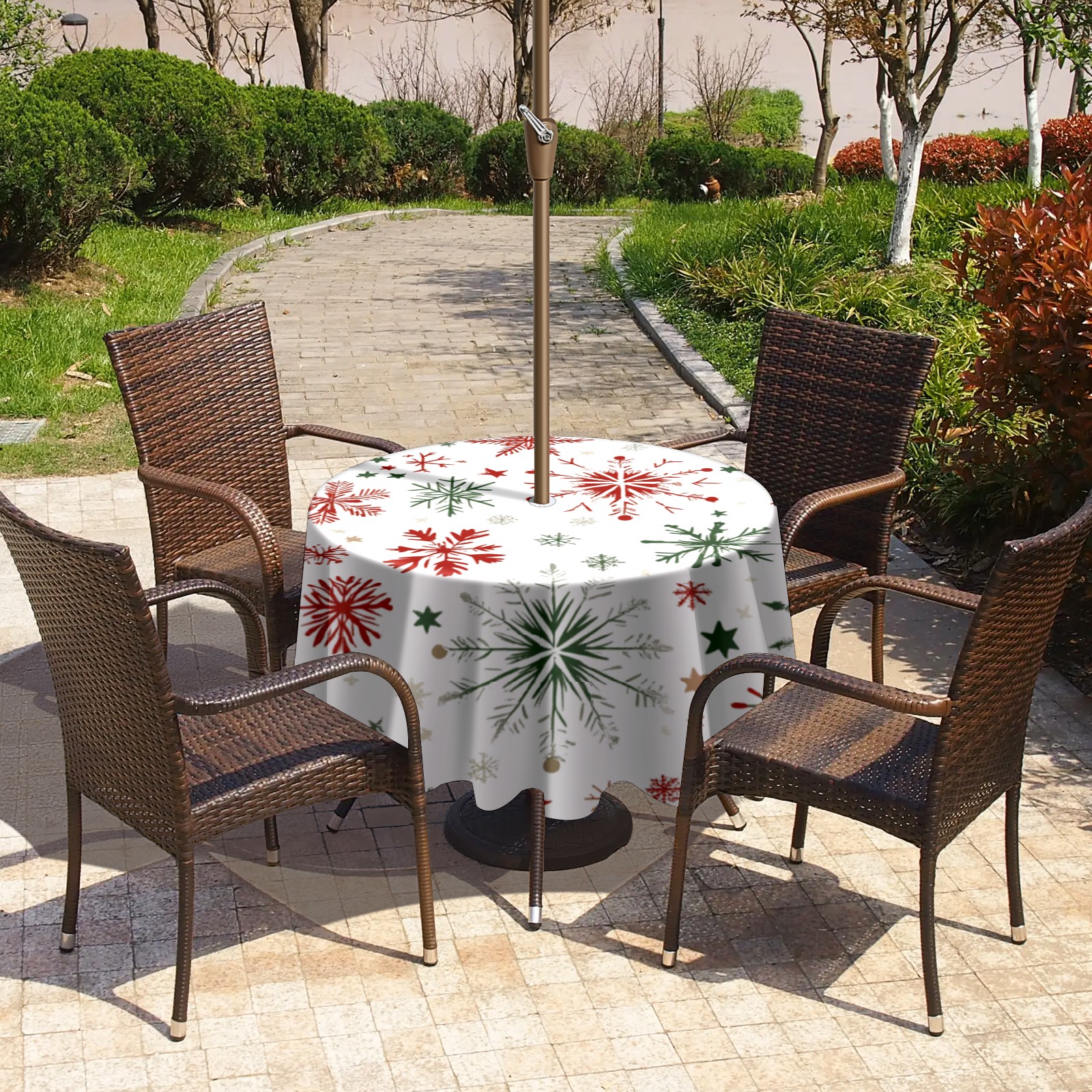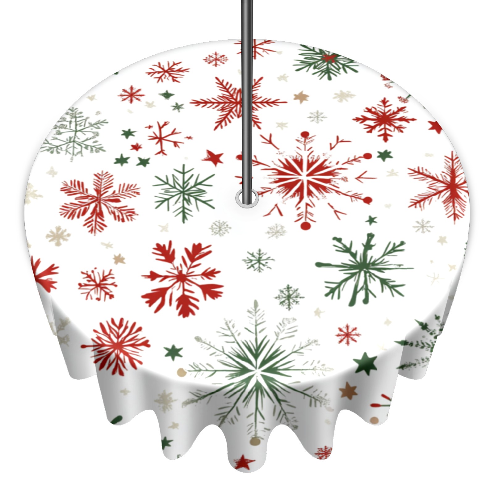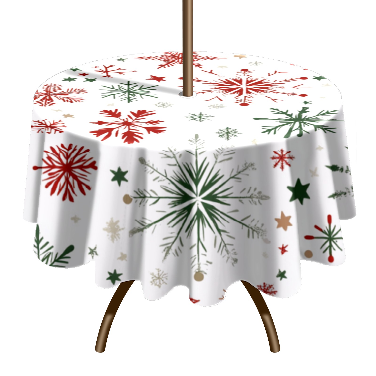 Round Tablecloth with Adjustable Zippered Umbrella Hole Polyester Table Cover Easy Install for Patio, Restaurant & Outdoor Dining Snowflake Pattern (60in)