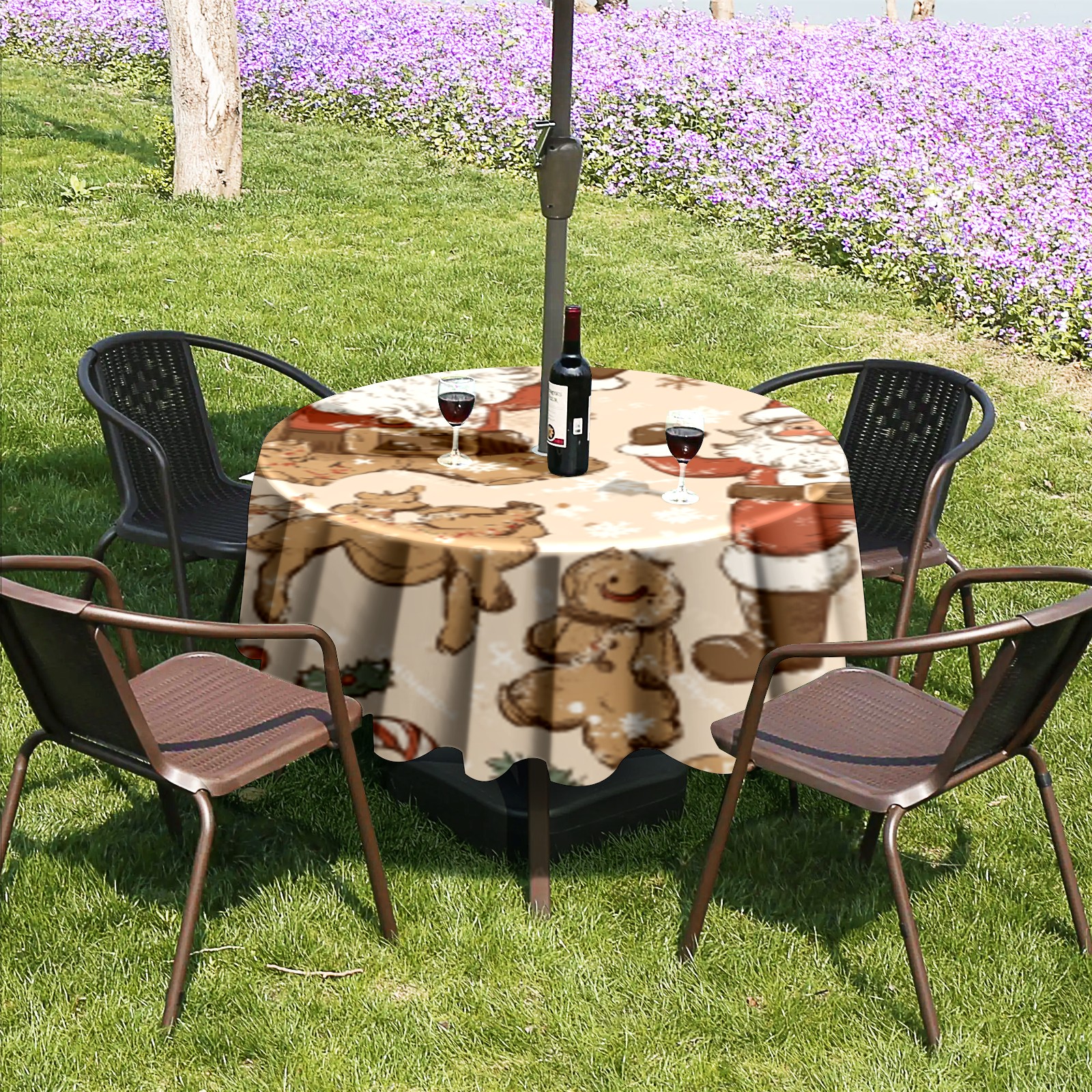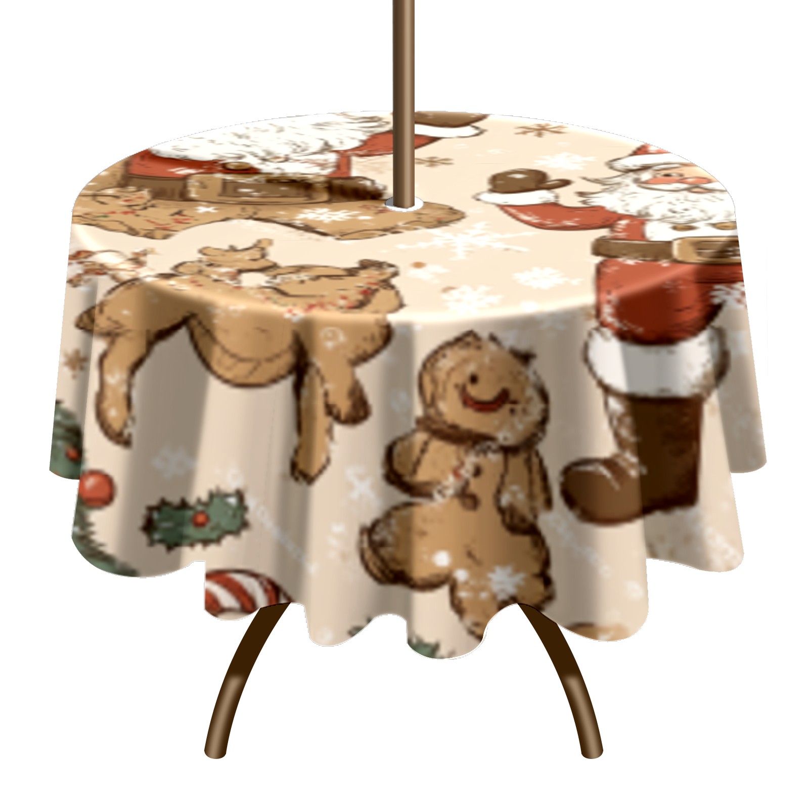 <p>Constructed with heavy-duty polyester fabric, this tablecloth withstands outdoor wear while maintaining a clean appearance. The adjustable zipper hole accommodates umbrella poles of varying thickness, allowing installation without disassembling the umbrella stand.Ideal for backyard BBQs or cafe patios, this tablecloth elevates table presentation instantly. Available in two classic sizes, the precision circular cut ensures full table coverage. Machine washable in cold water without color fading or shape distortion. The lightweight fabric folds compactly for space-efficient storage between uses.</p>