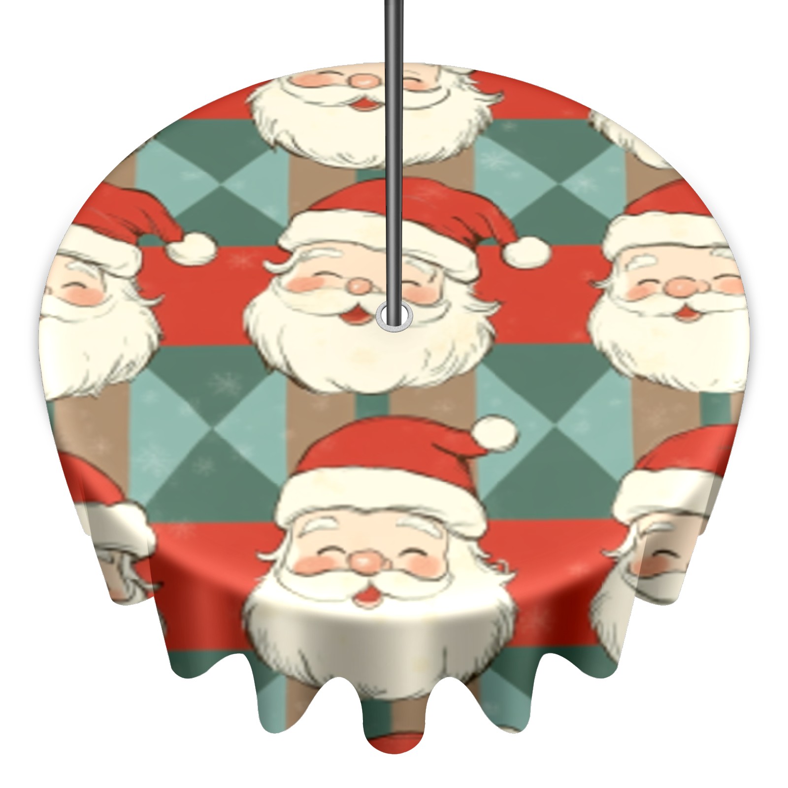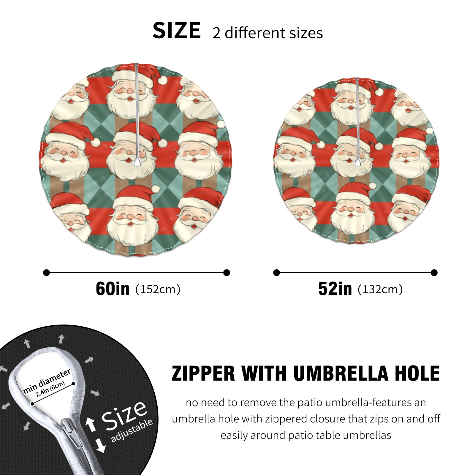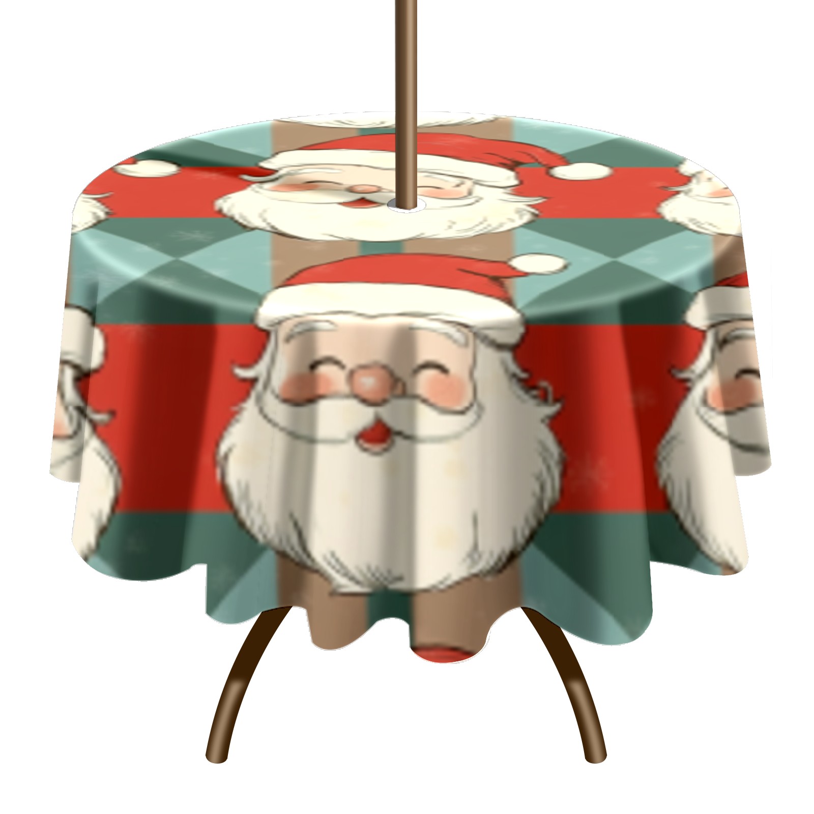 Round Tablecloth with Adjustable Zippered Umbrella Hole Polyester Table Cover Easy Install for Patio, Restaurant & Outdoor Dining Vintage Santa Pattern (60in)