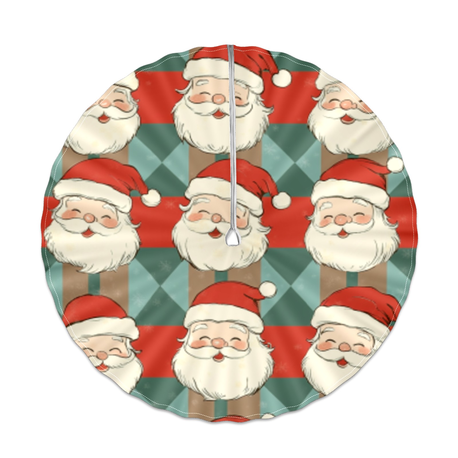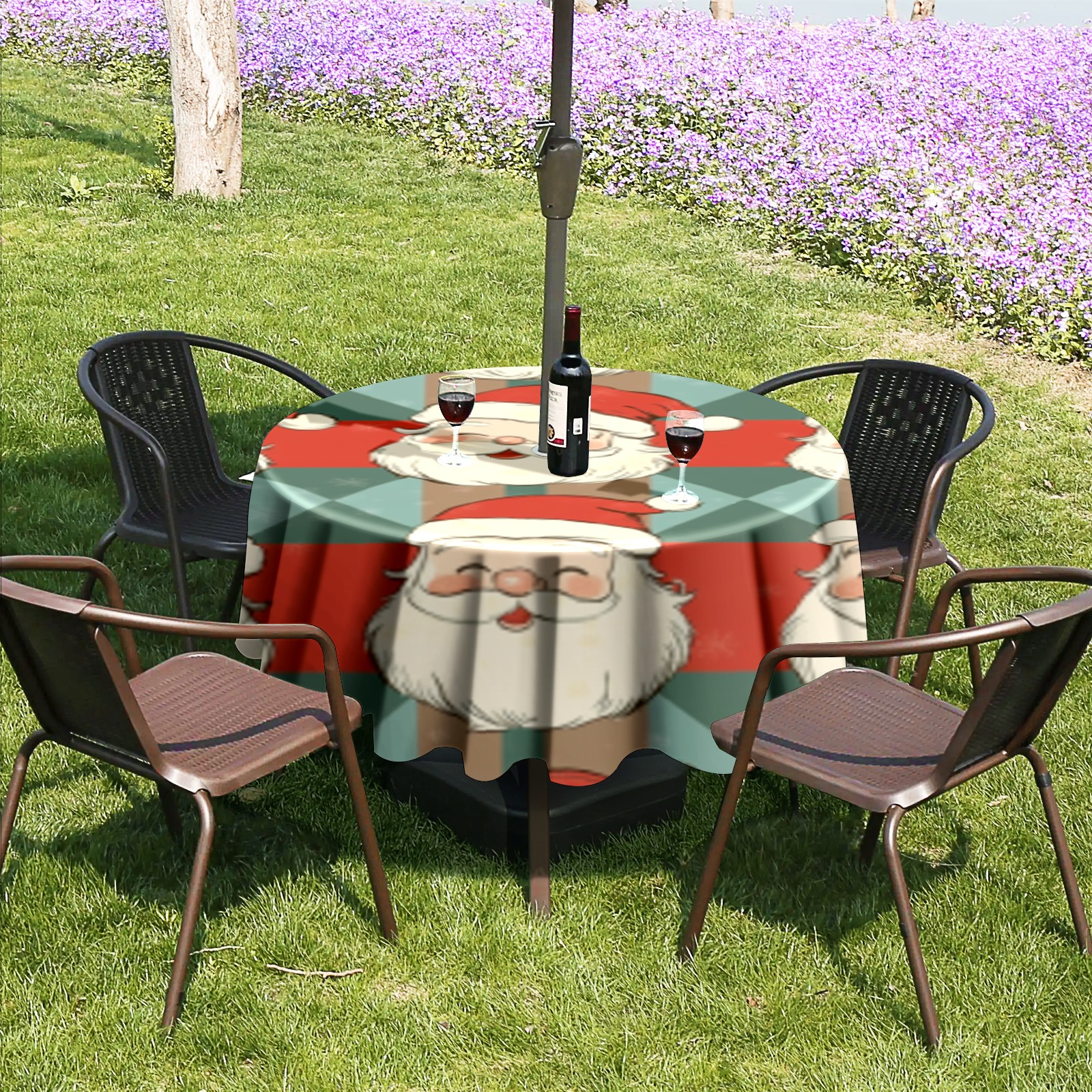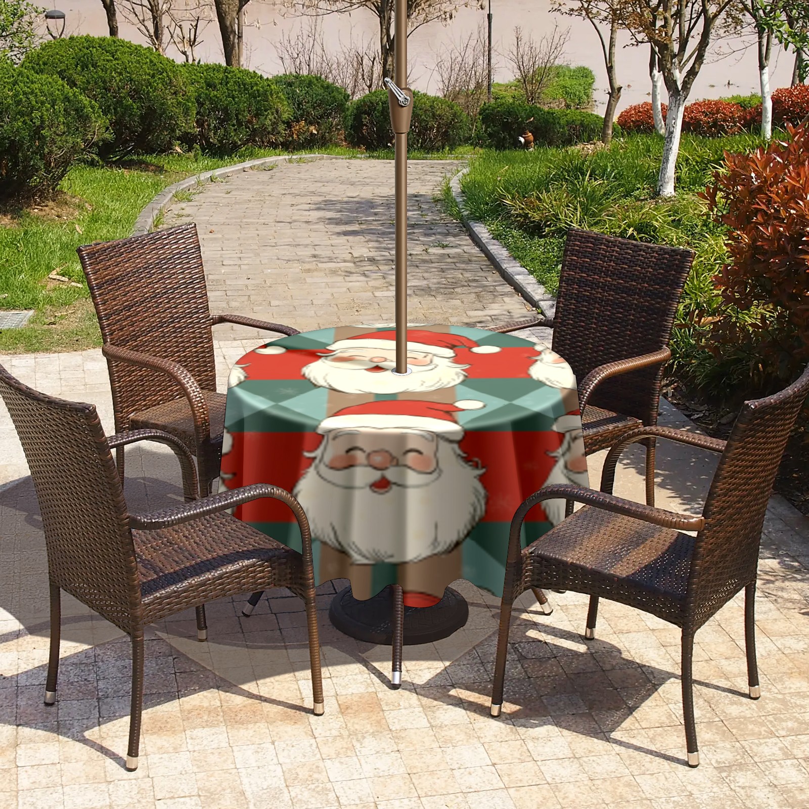 Round Tablecloth with Adjustable Zippered Umbrella Hole Polyester Table Cover Easy Install for Patio, Restaurant & Outdoor Dining Vintage Santa Pattern (60in)