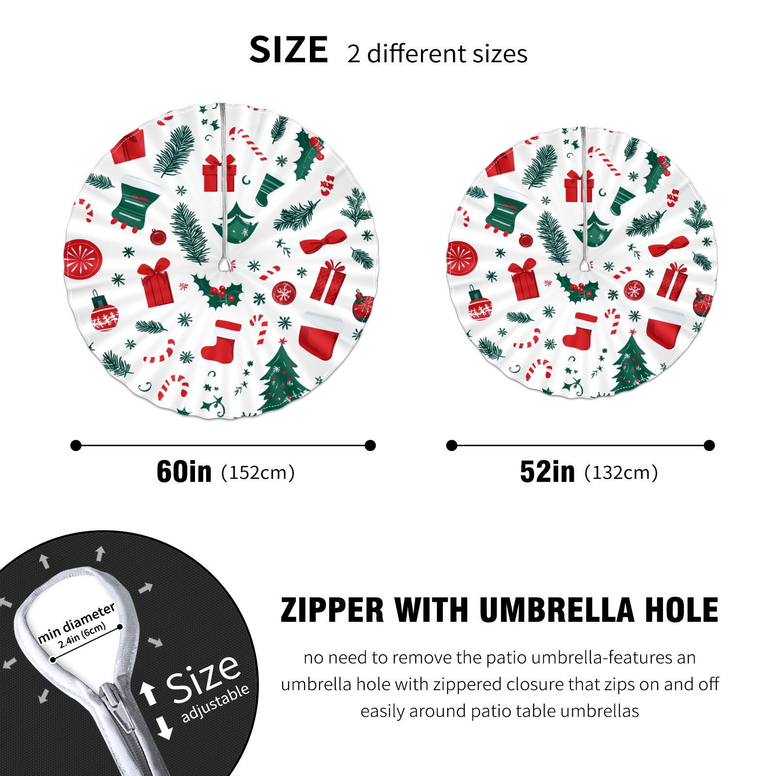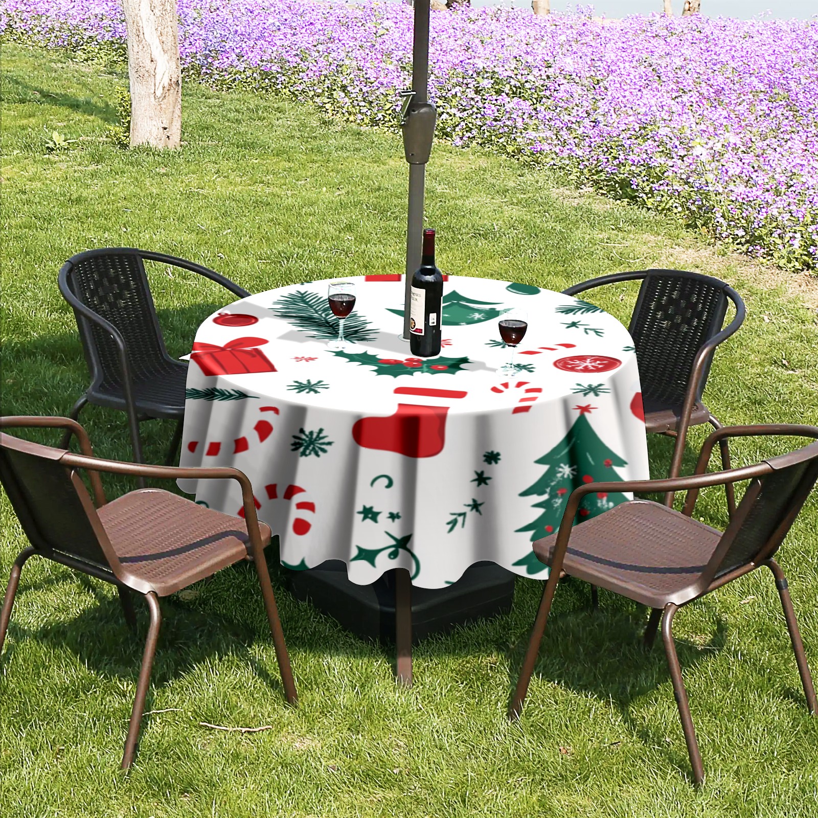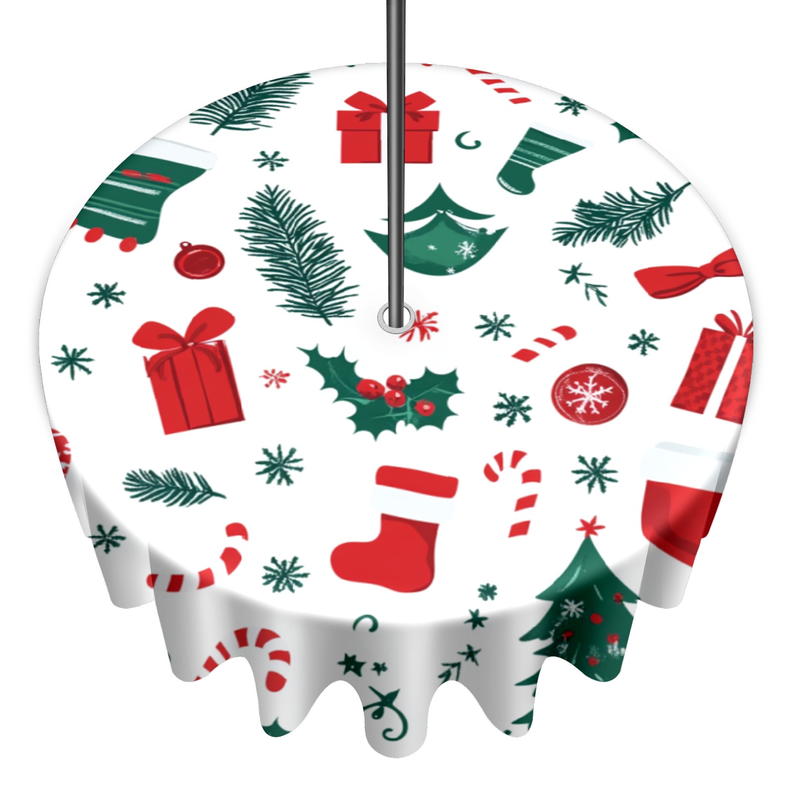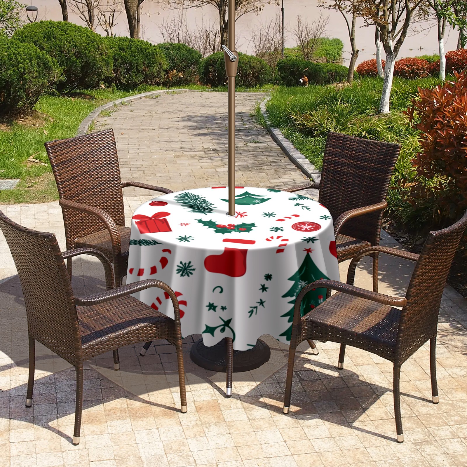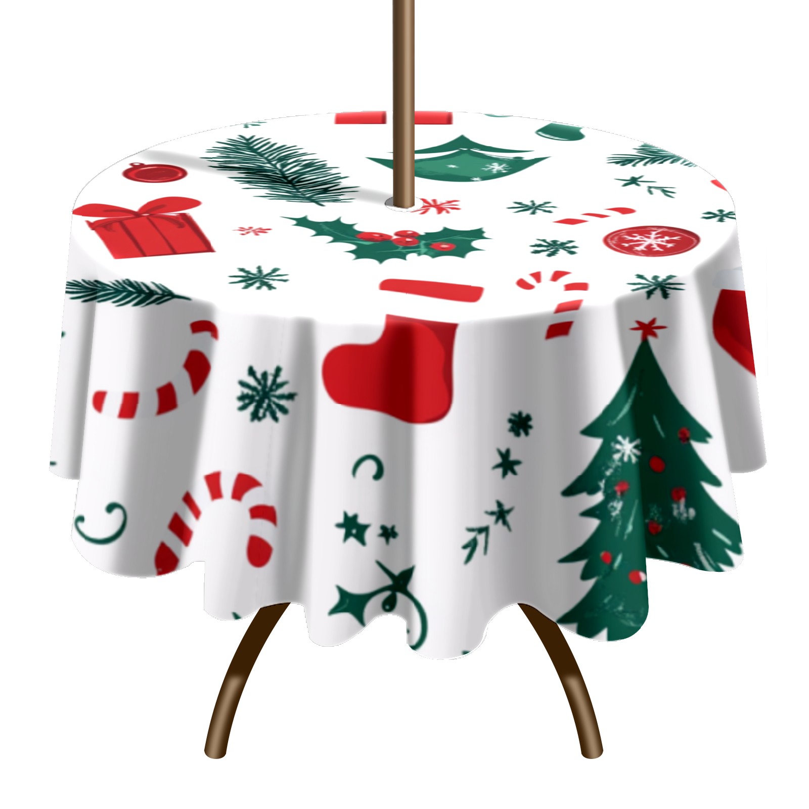 Round Tablecloth with Adjustable Zippered Umbrella Hole Polyester Table Cover Easy Install for Patio, Restaurant & Outdoor Dining Christmas Candy Gift Pattern (60in)