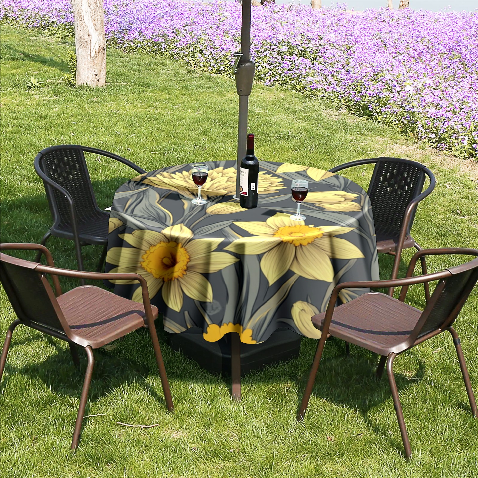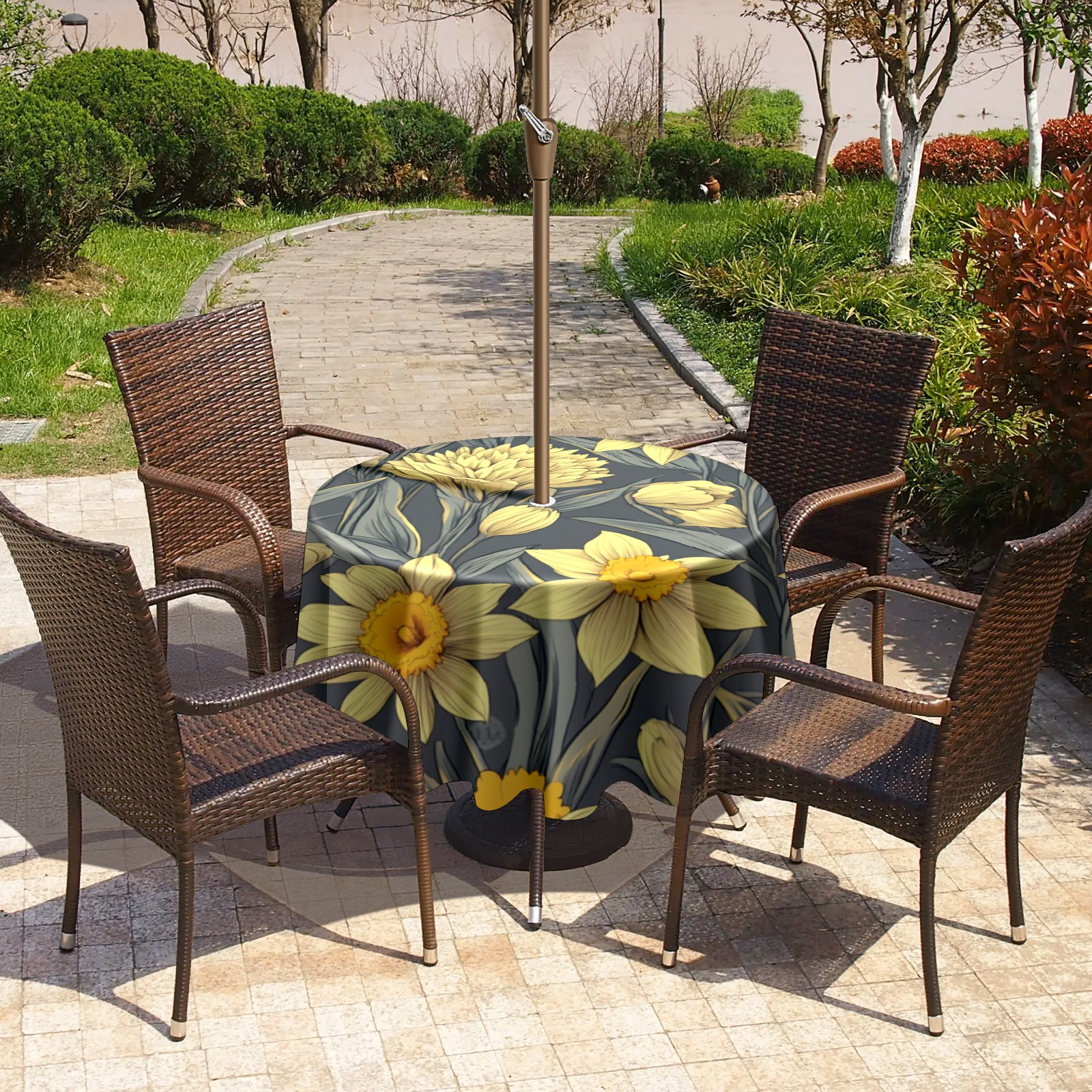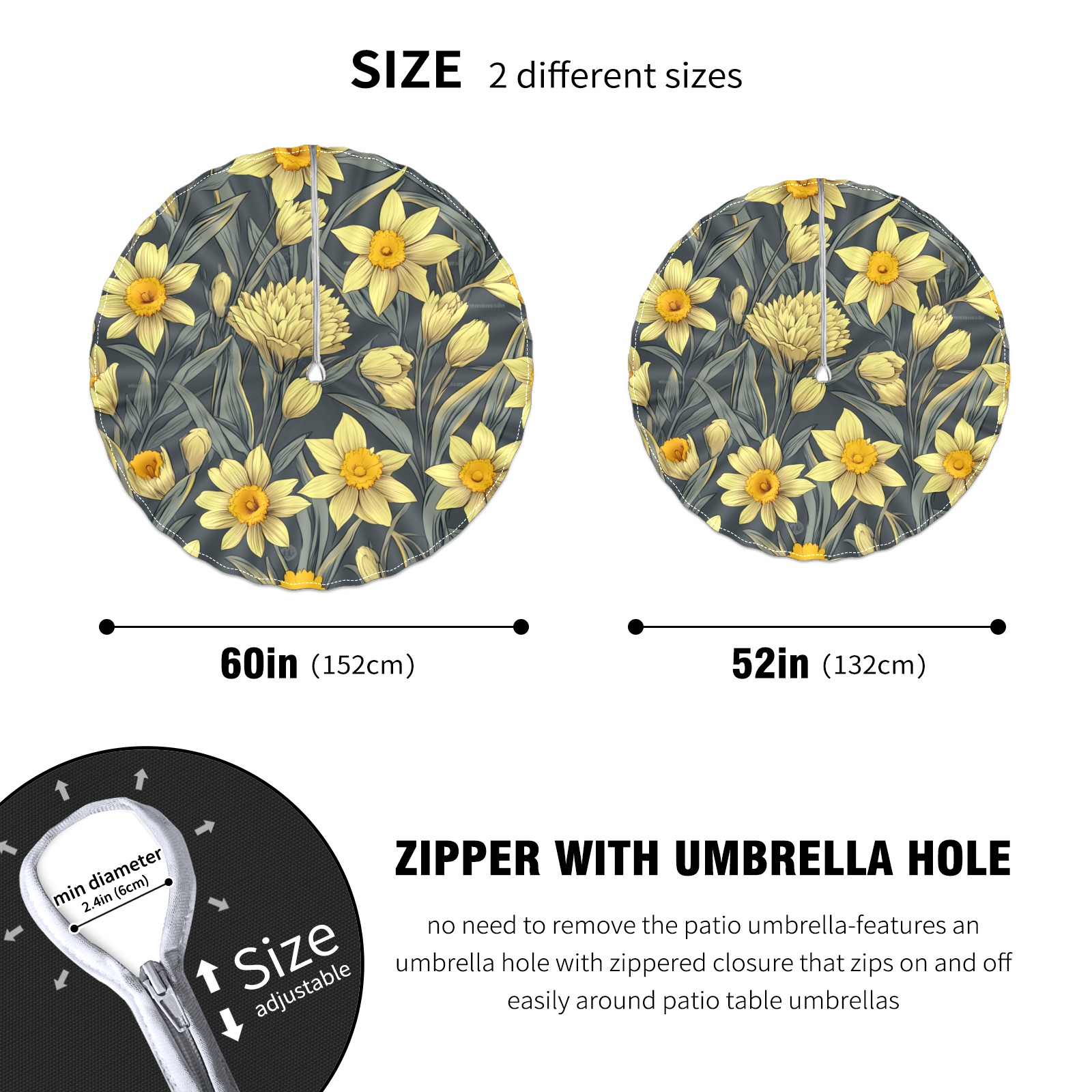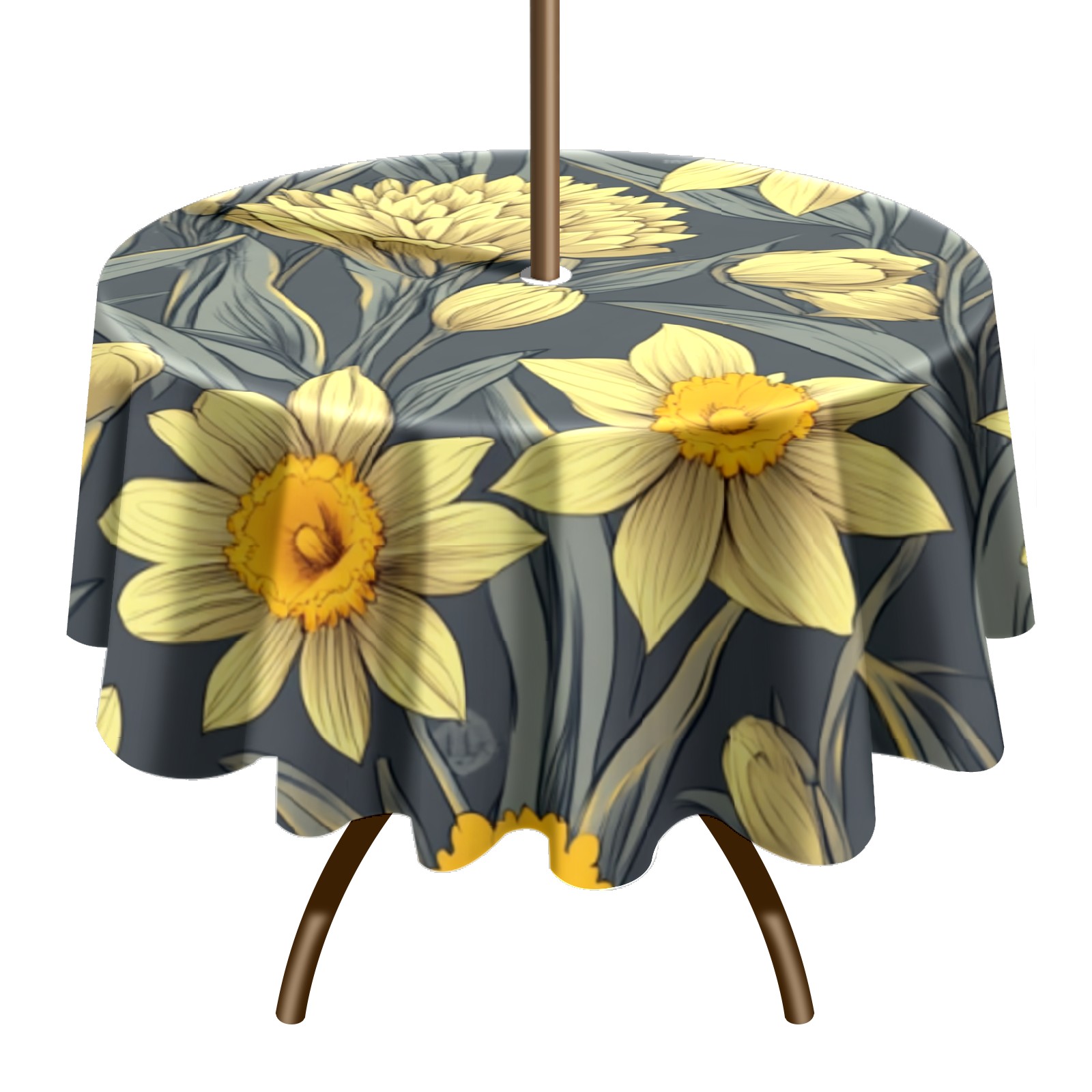 Round Tablecloth with Adjustable Zippered Umbrella Hole Polyester Table Cover Easy Install for Patio, Restaurant & Outdoor Dining Yellow Daisy Patternfa45e614-1758685140572 (60in)
