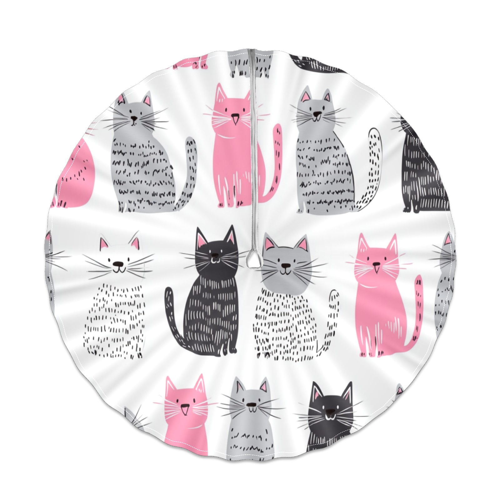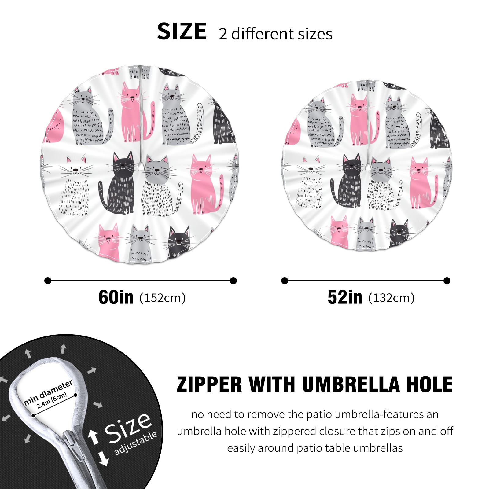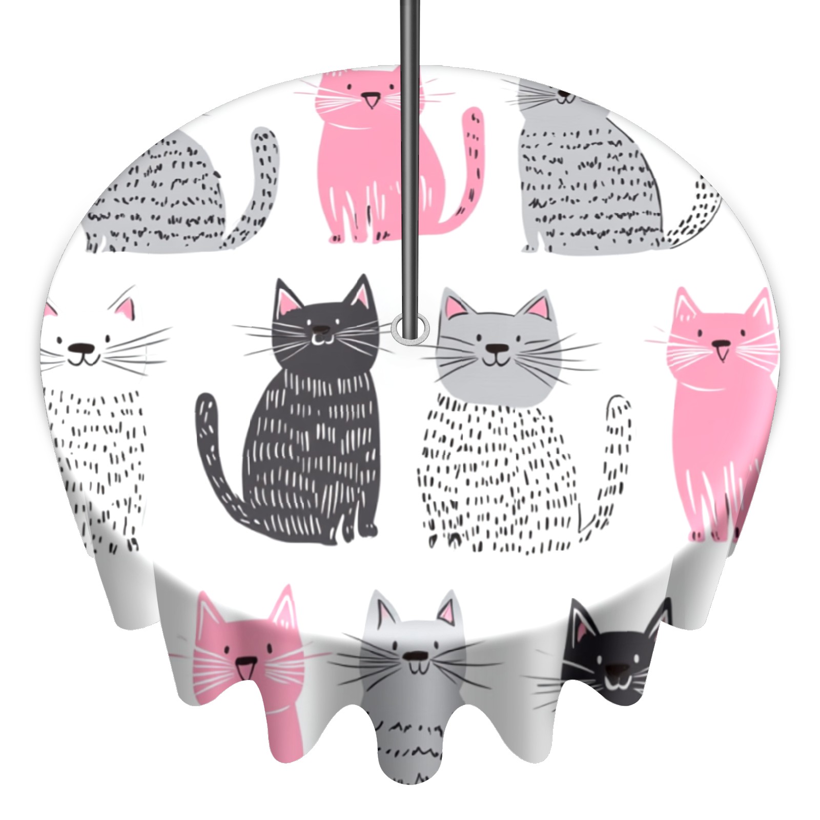 Round Tablecloth with Adjustable Zippered Umbrella Hole Polyester Table Cover Easy Install for Patio, Restaurant & Outdoor Dining Cat Face Pattern (60in)