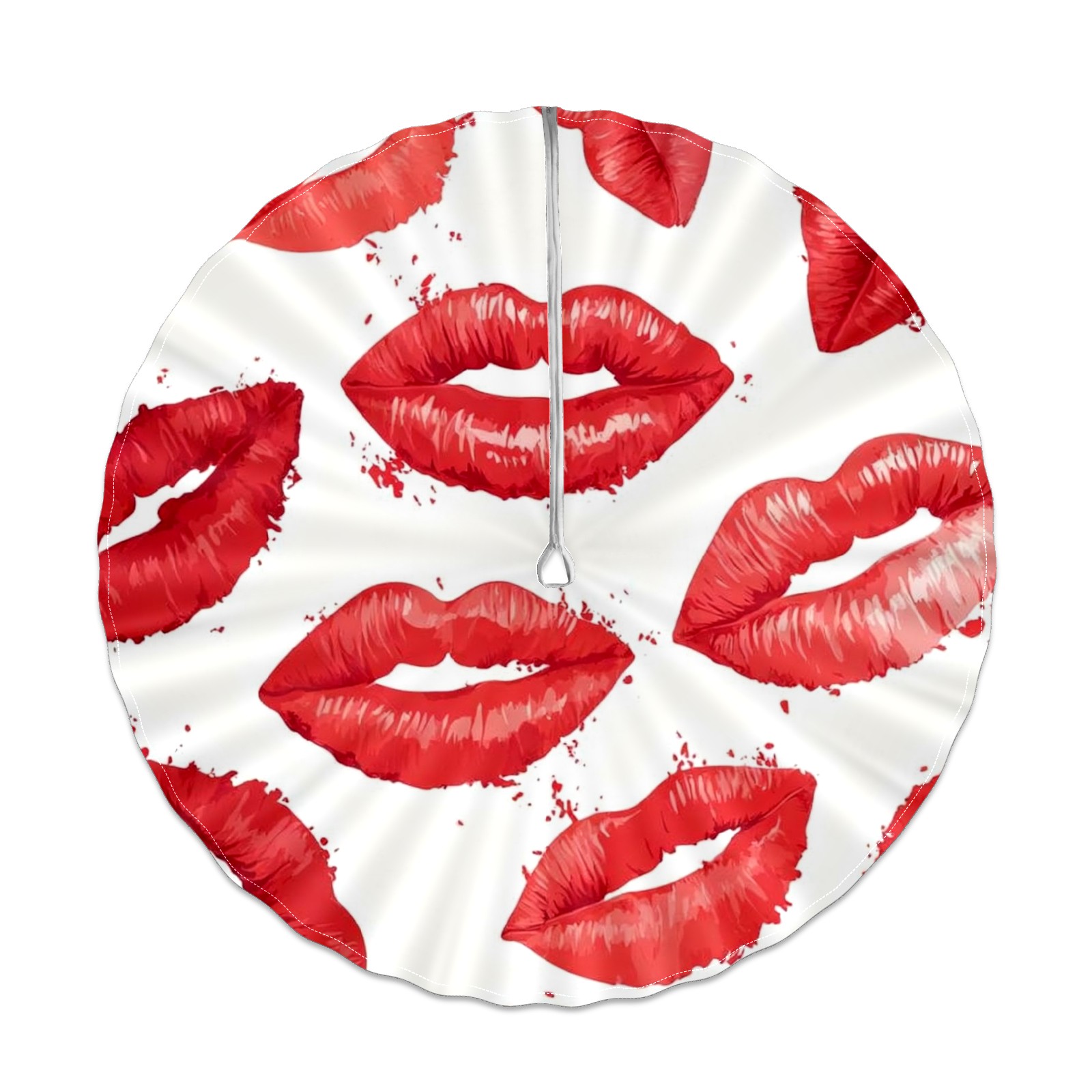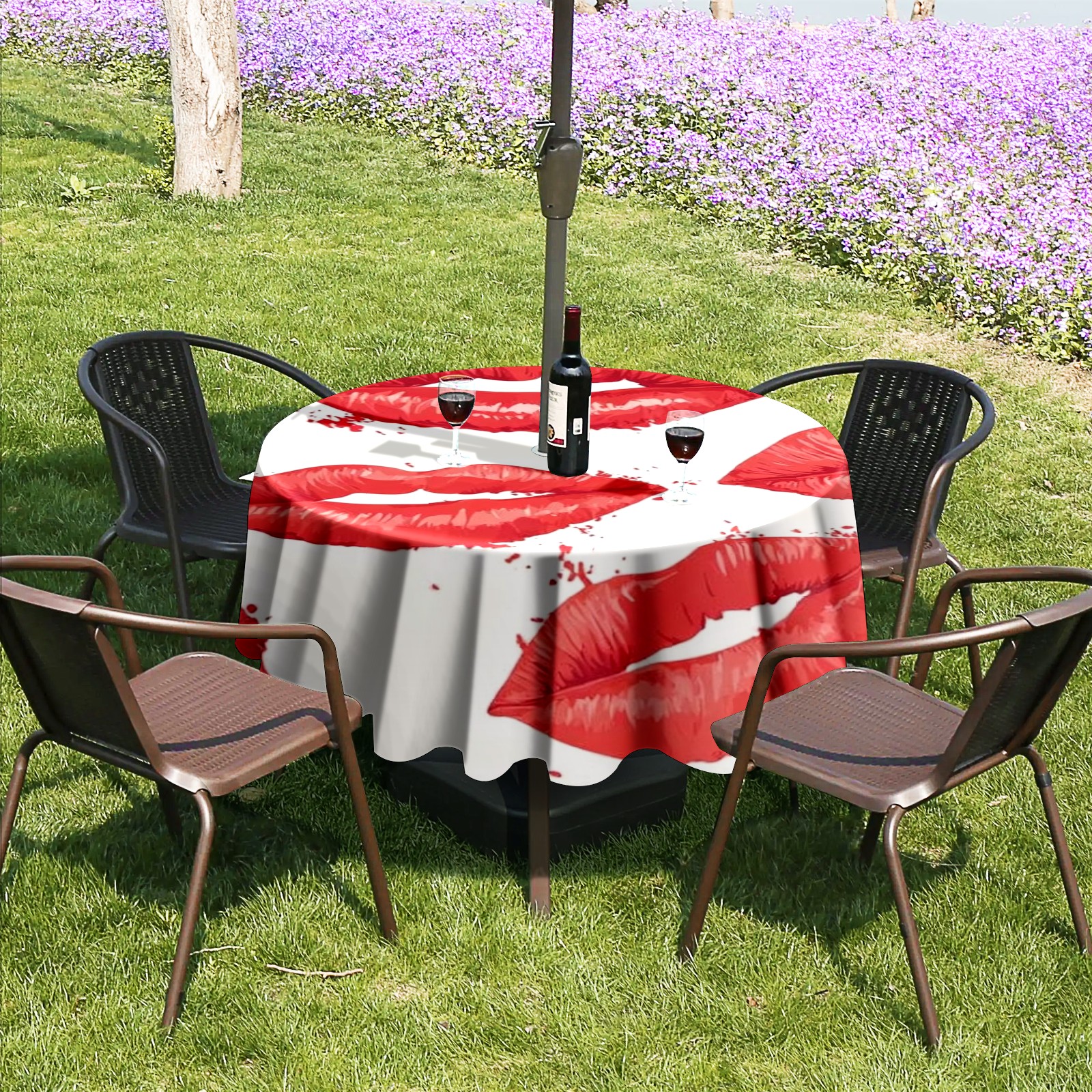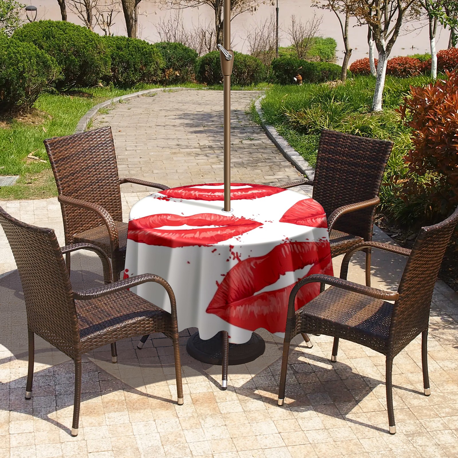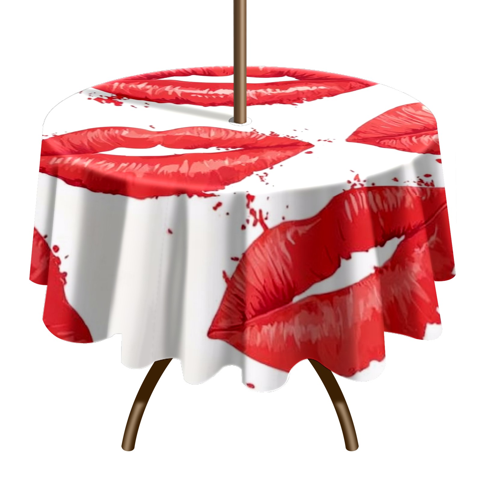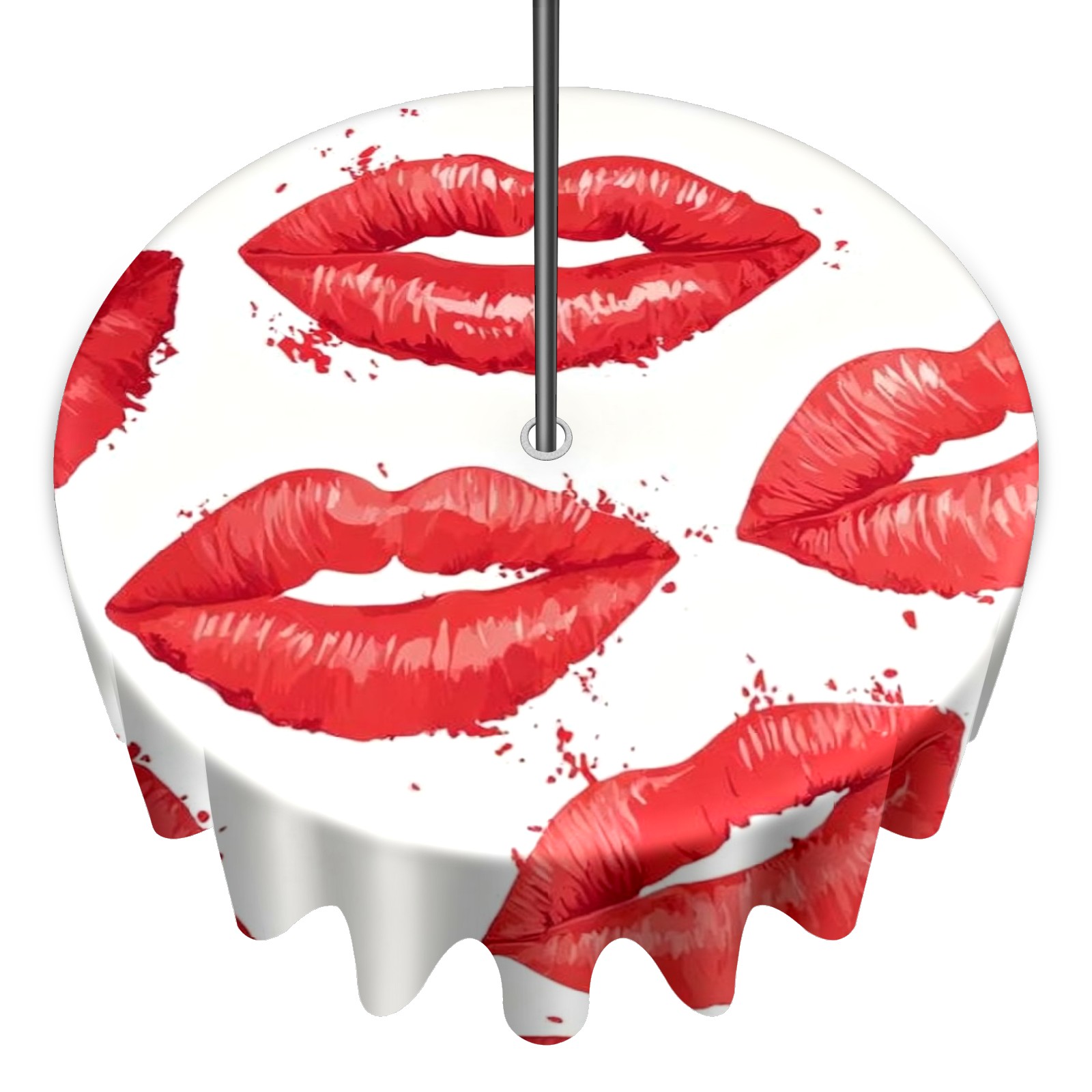 Round Tablecloth with Adjustable Zippered Umbrella Hole Polyester Table Cover Easy Install for Patio, Restaurant & Outdoor Dining Red Lips (60in)