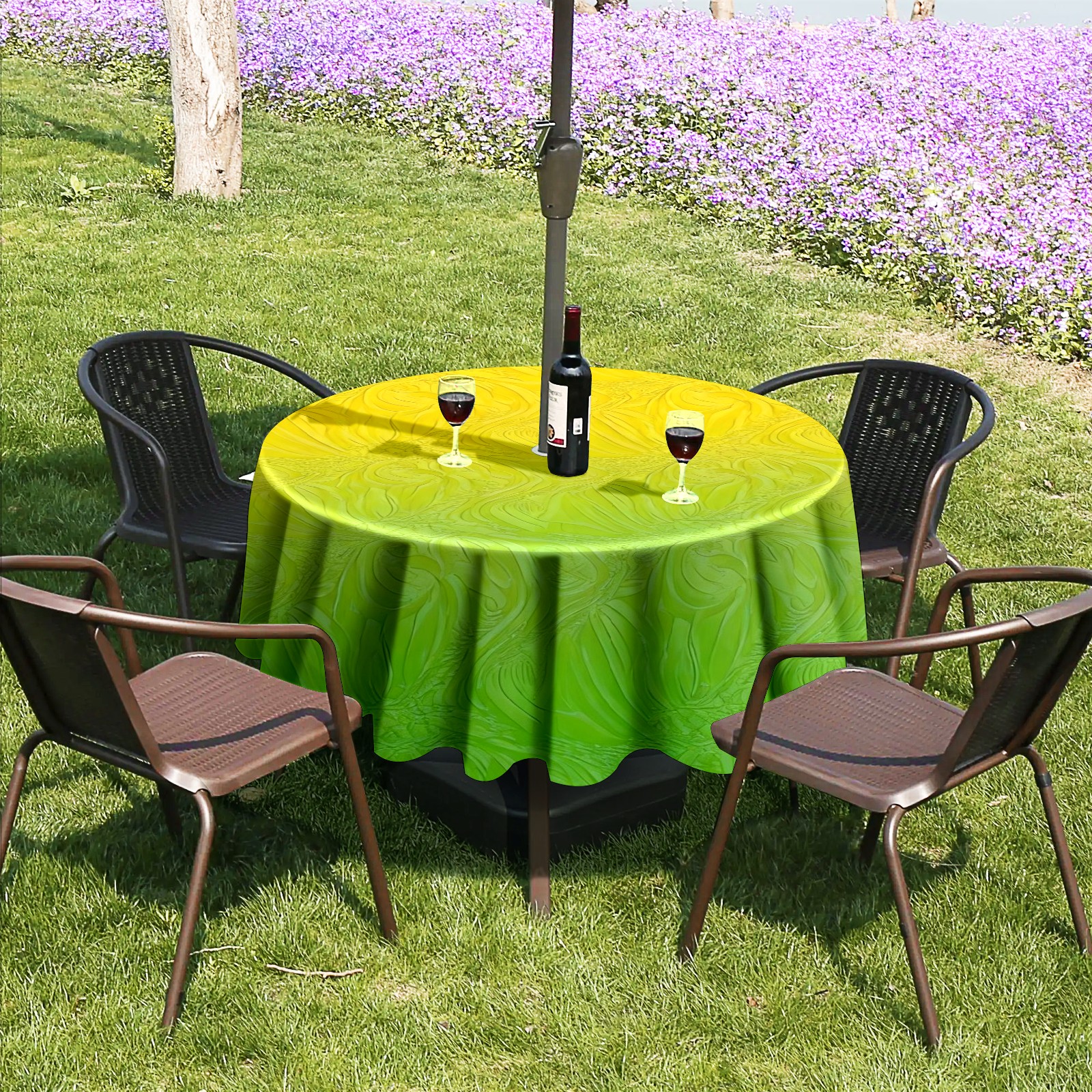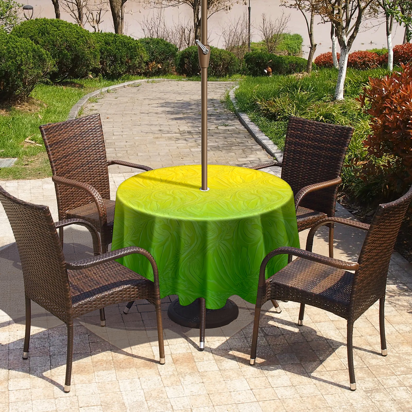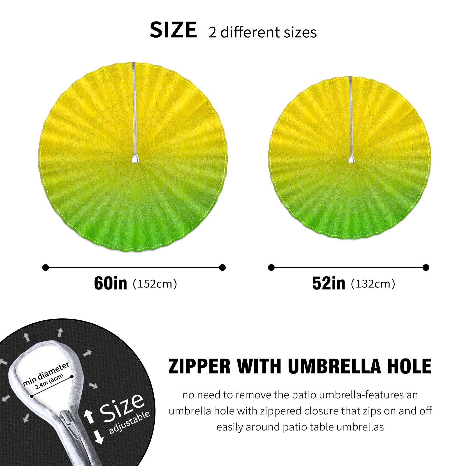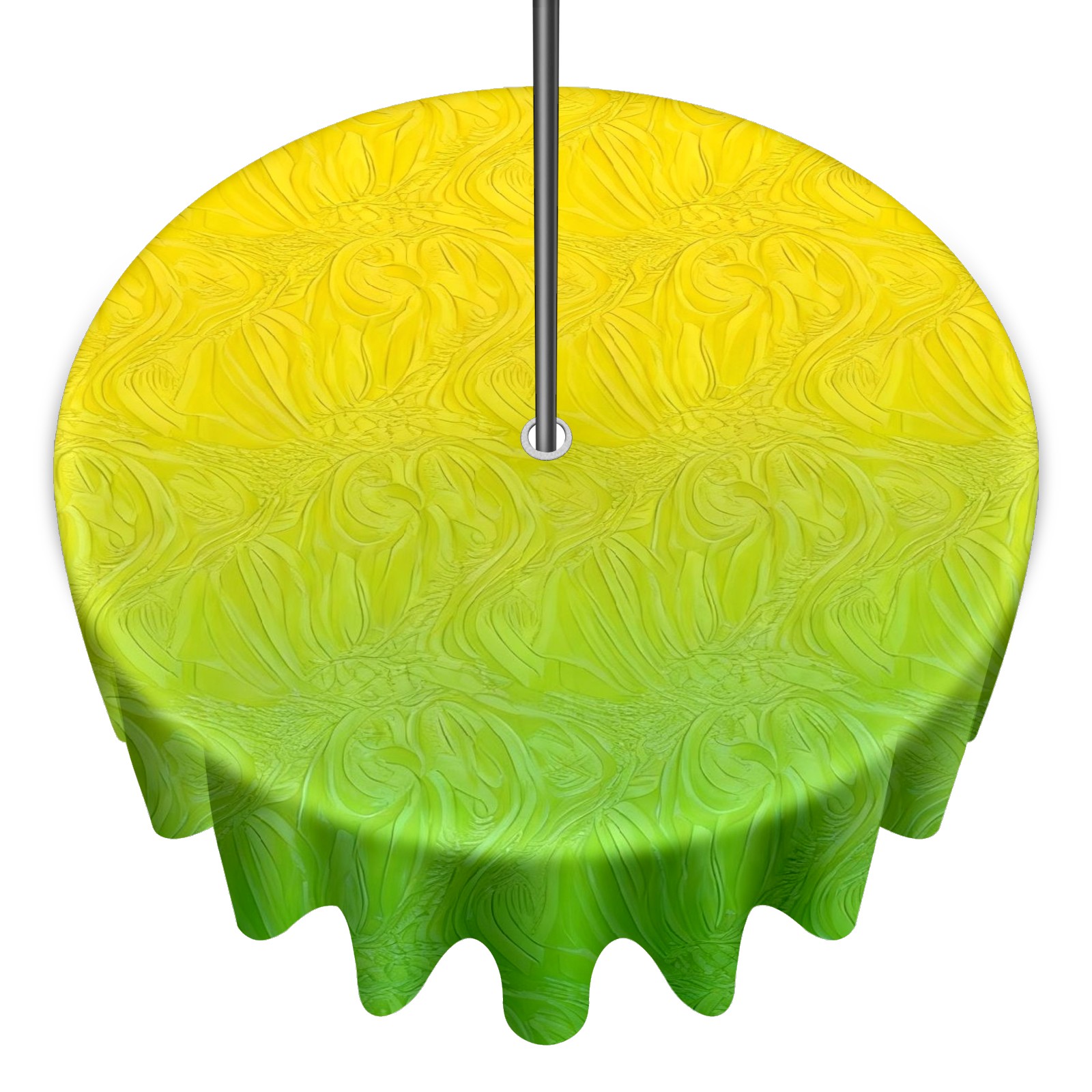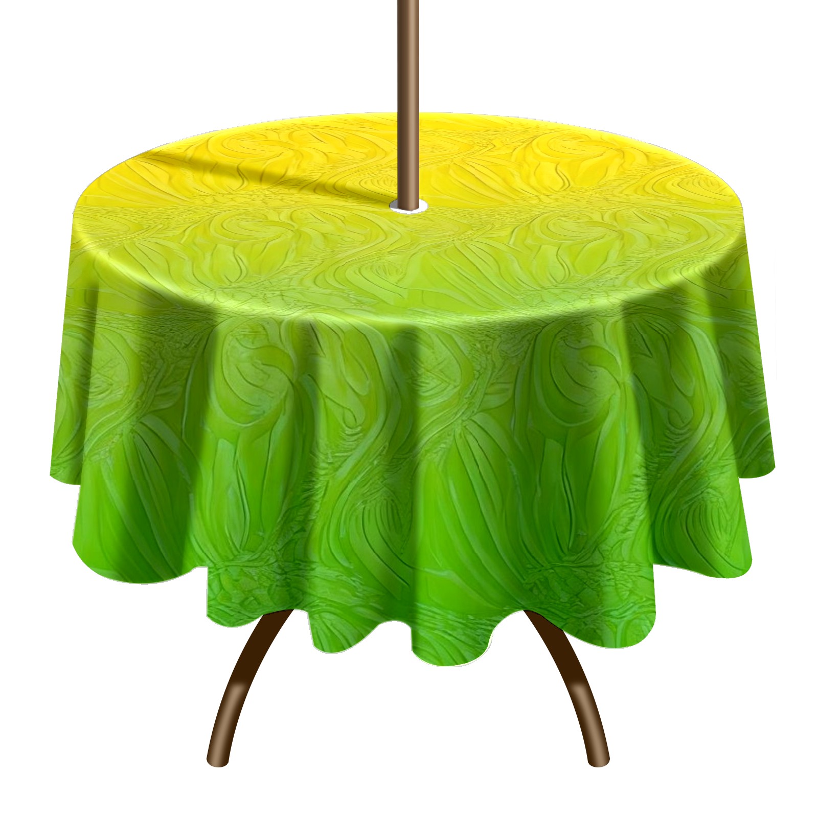 Round Tablecloth with Adjustable Zippered Umbrella Hole Polyester Table Cover Easy Install for Patio, Restaurant & Outdoor Dining Yellow Green Gradient (60in)