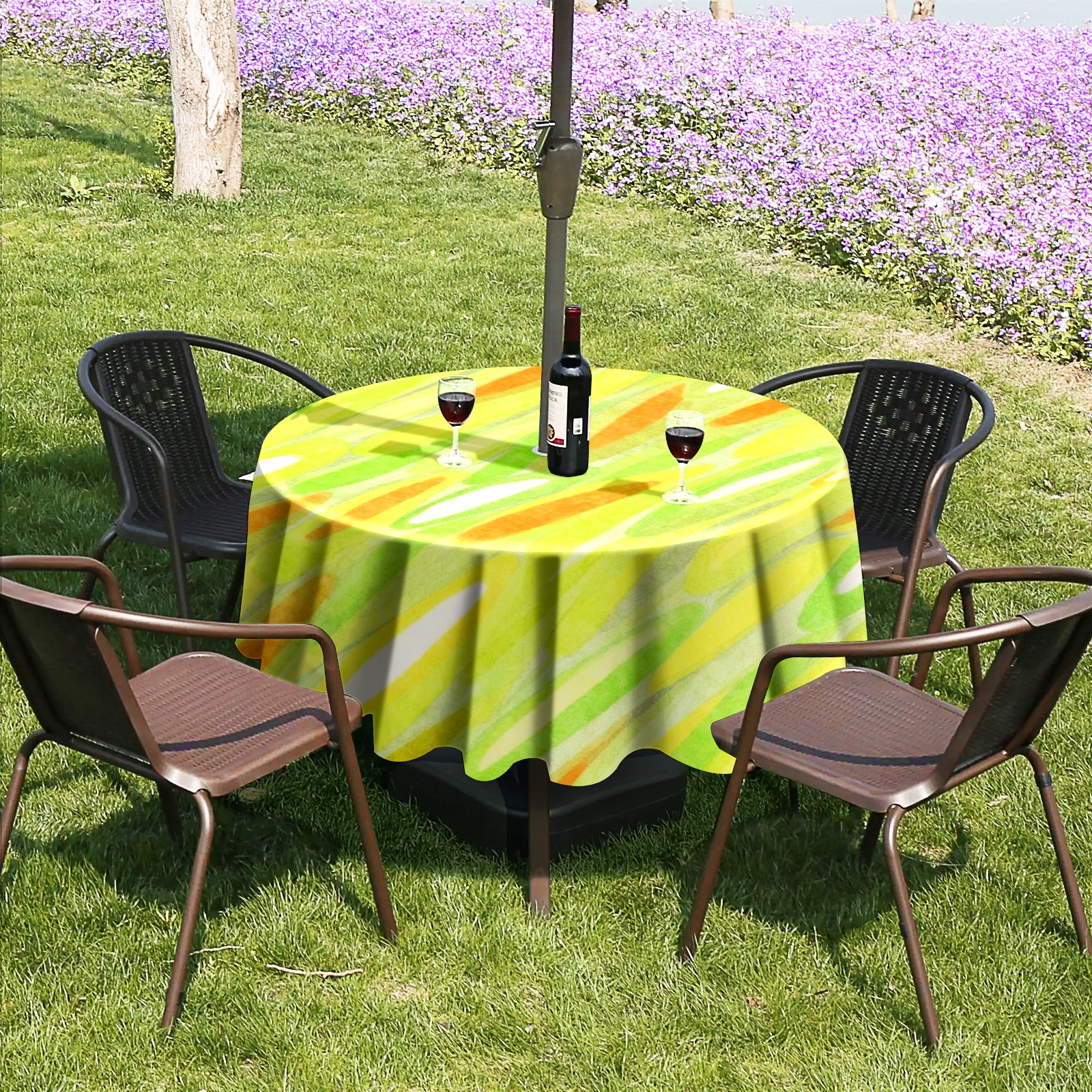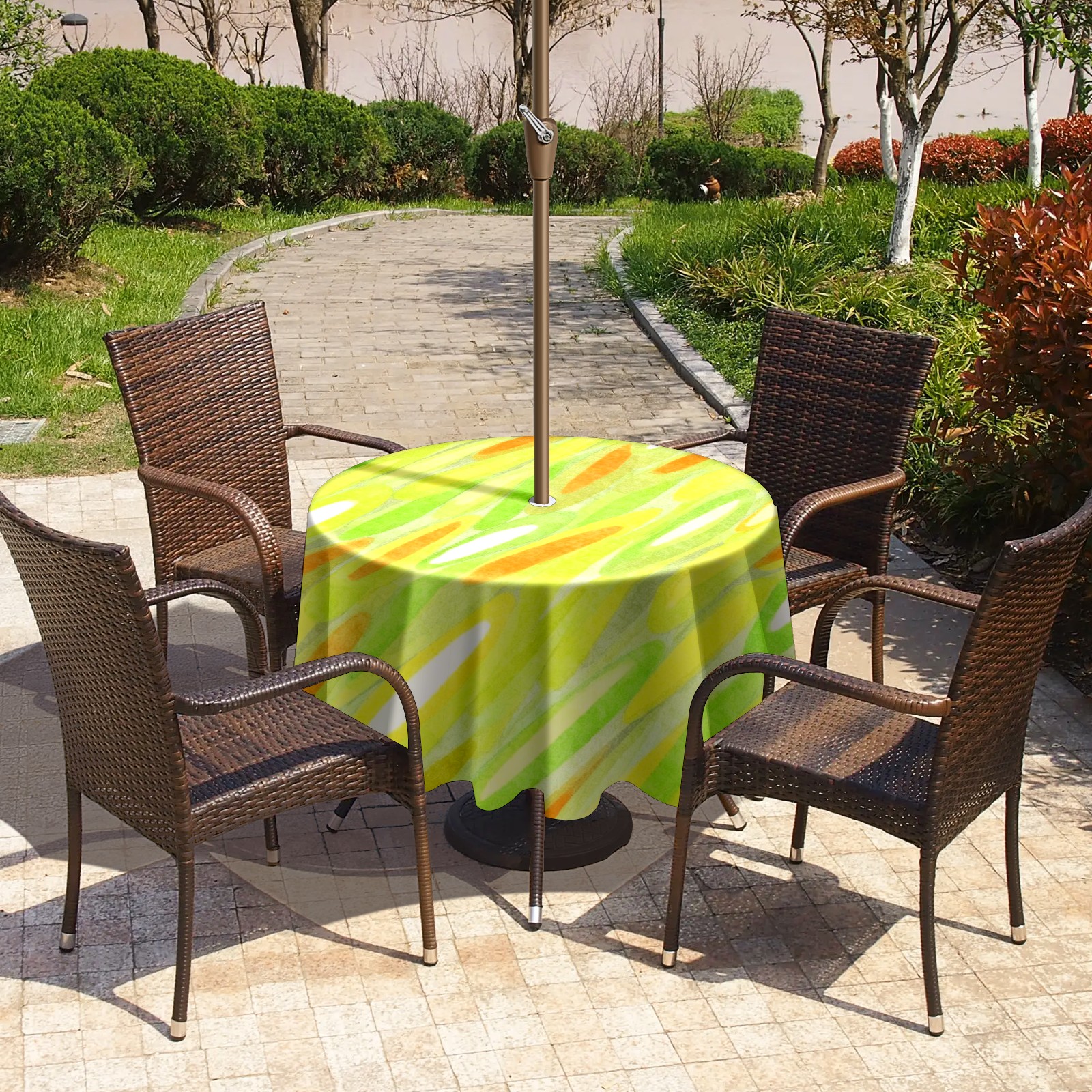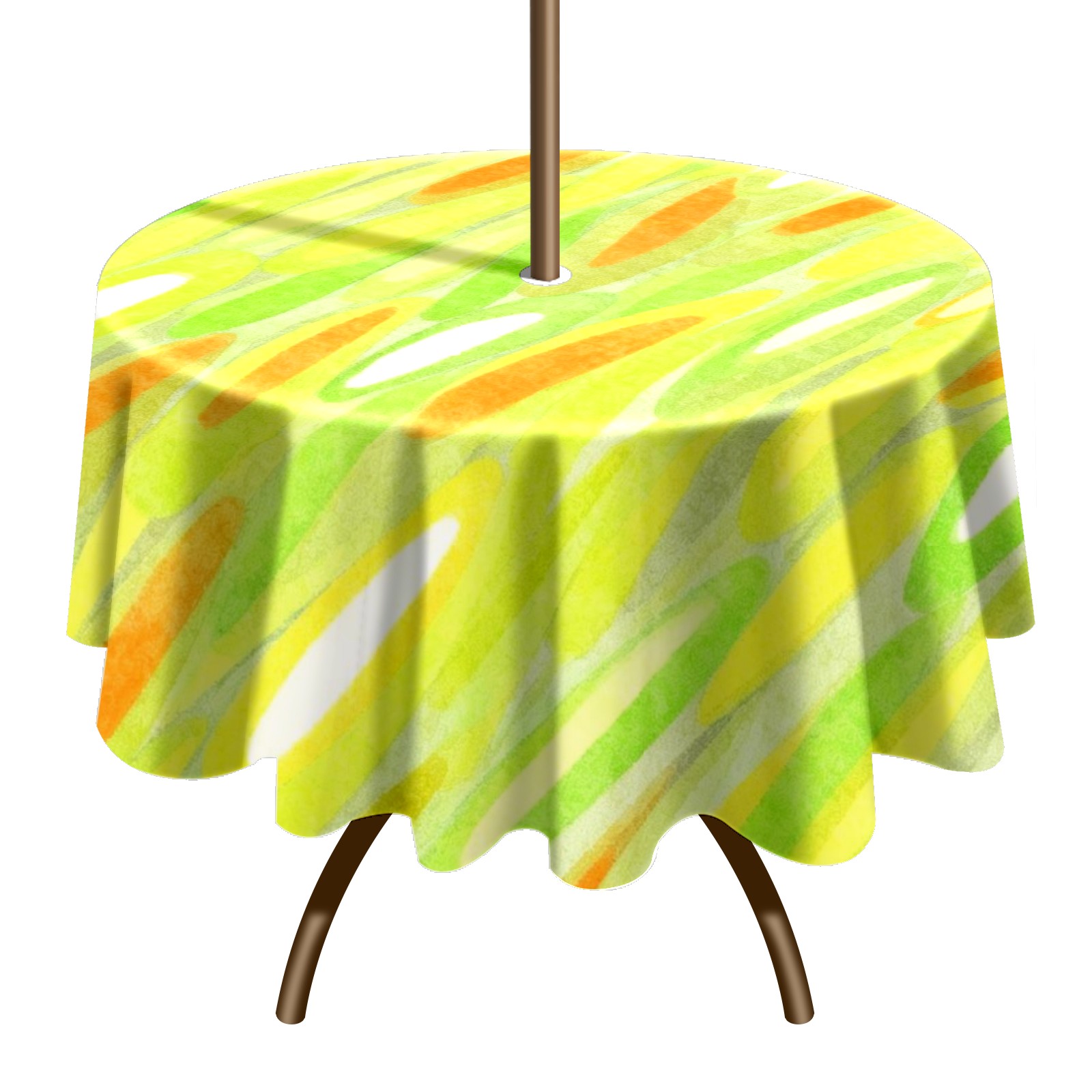 Round Tablecloth with Adjustable Zippered Umbrella Hole Polyester Table Cover Easy Install for Patio, Restaurant & Outdoor Dining Green Yellow Gradient Pattern (60in)