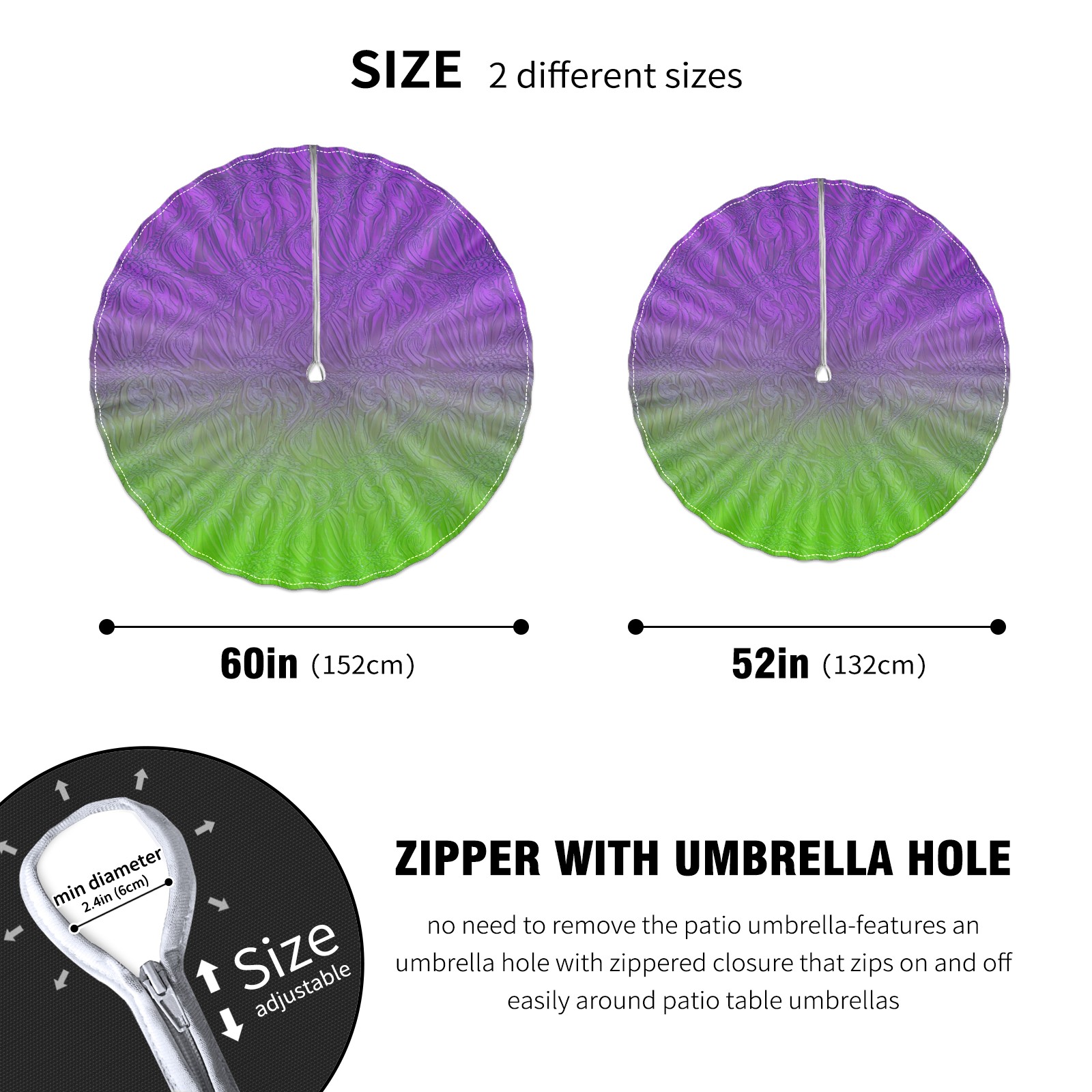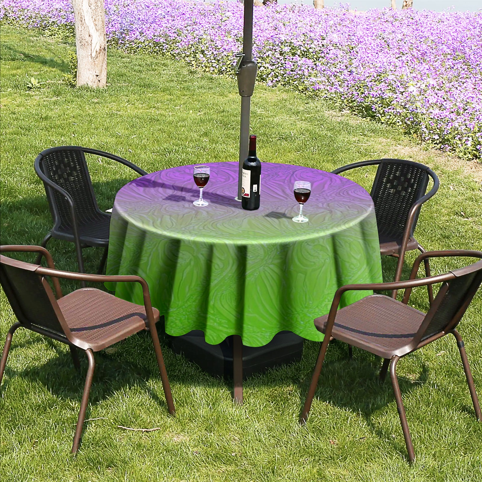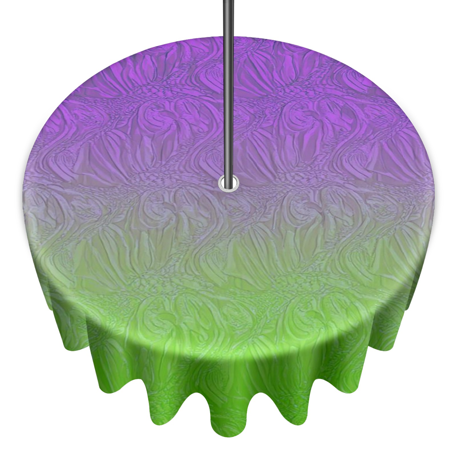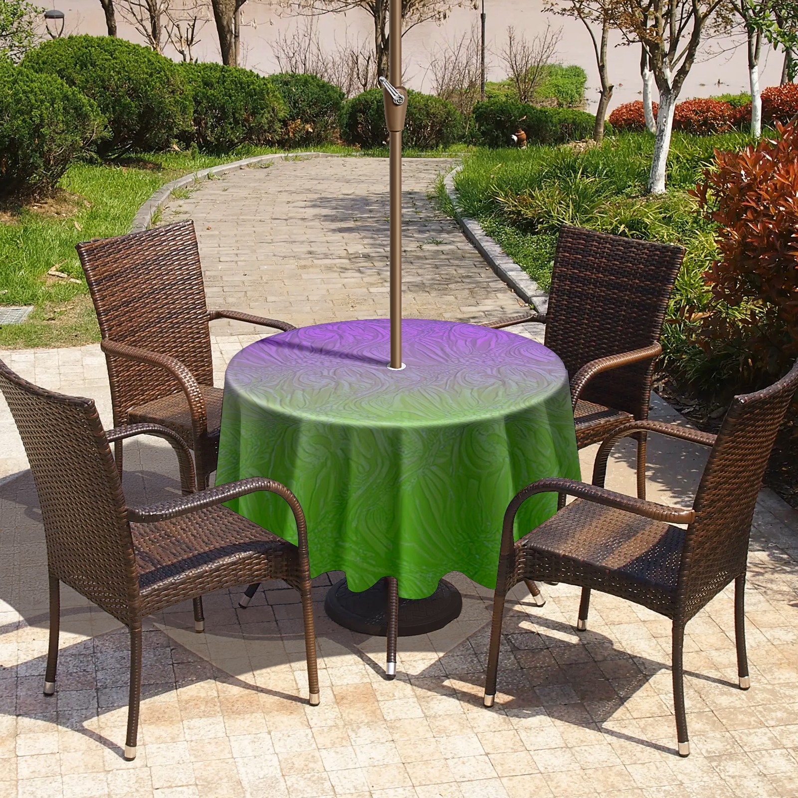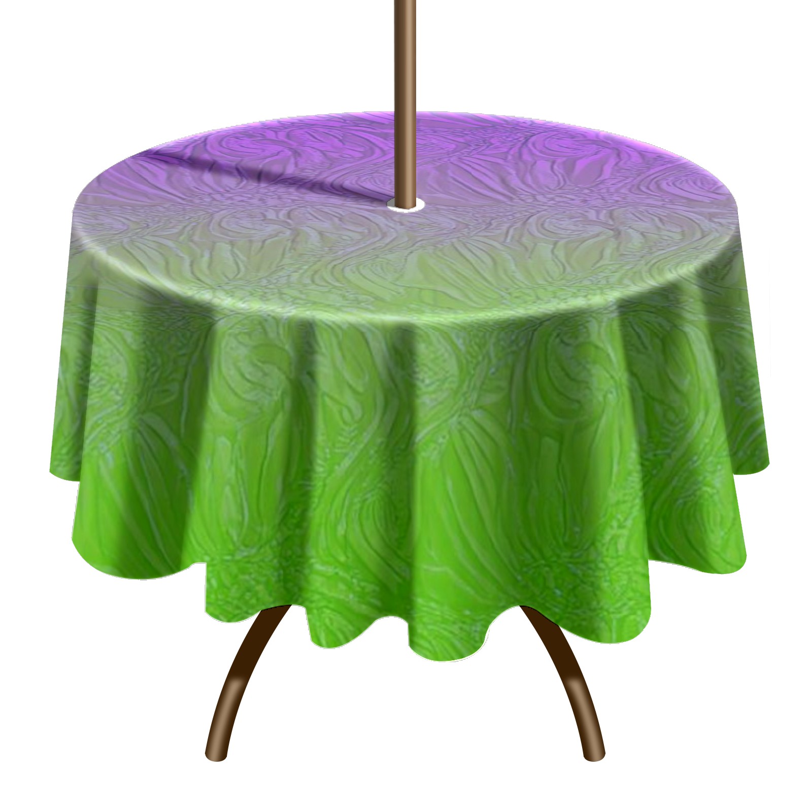 Round Tablecloth with Adjustable Zippered Umbrella Hole Polyester Table Cover Easy Install for Patio, Restaurant & Outdoor Dining Purple Green Gradient Pattern (60in)