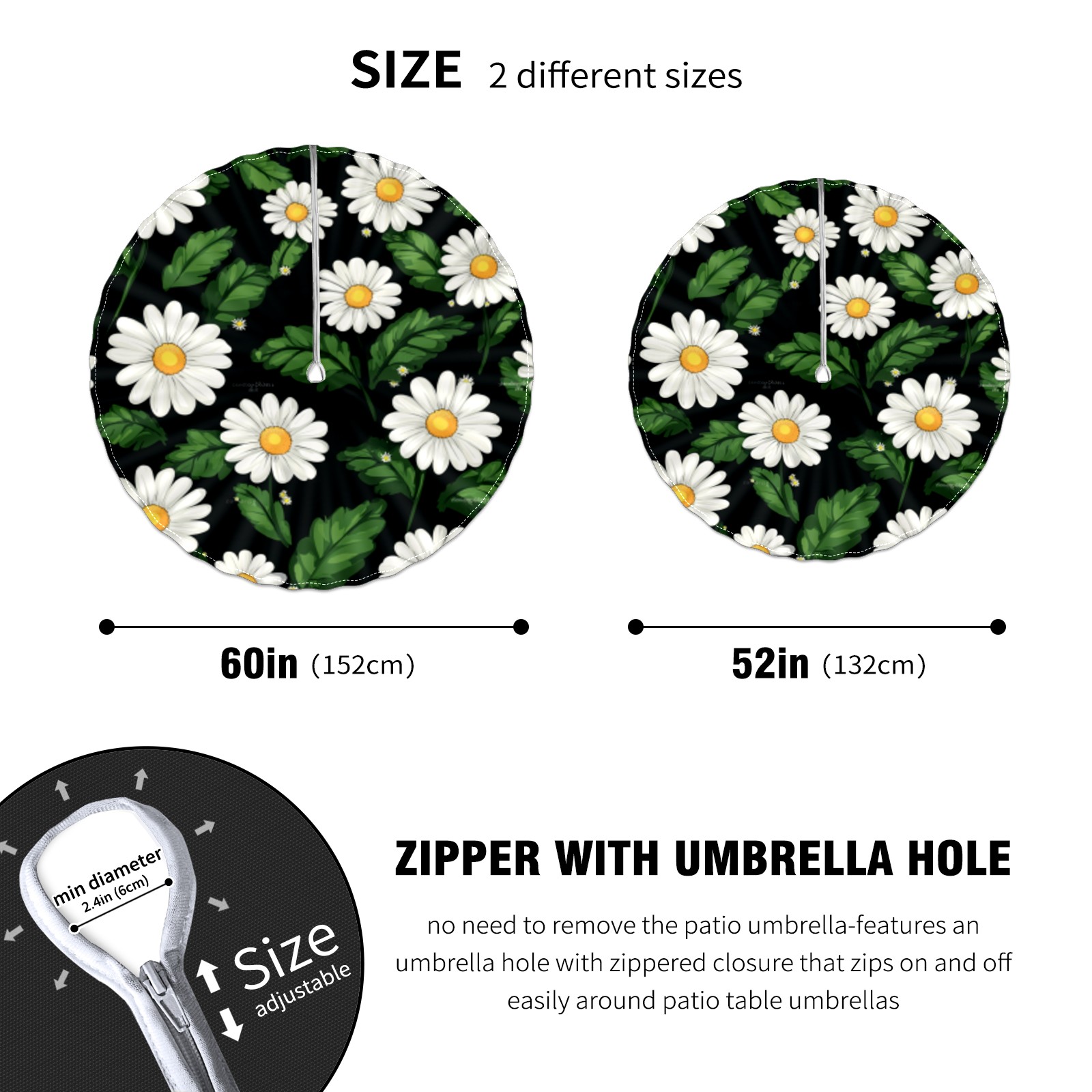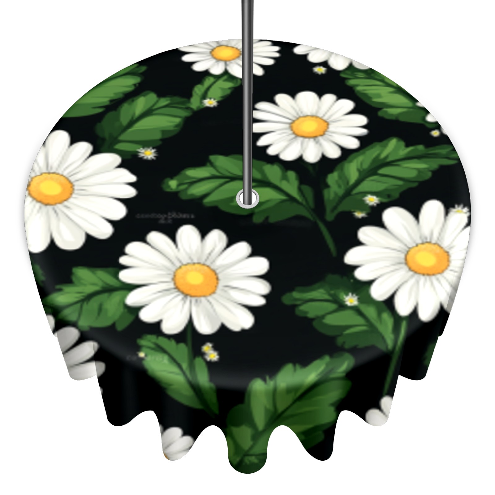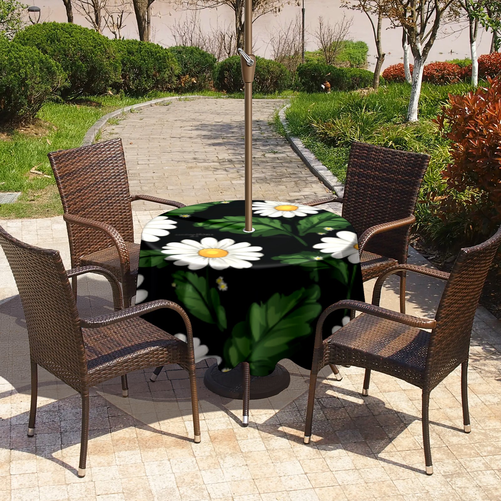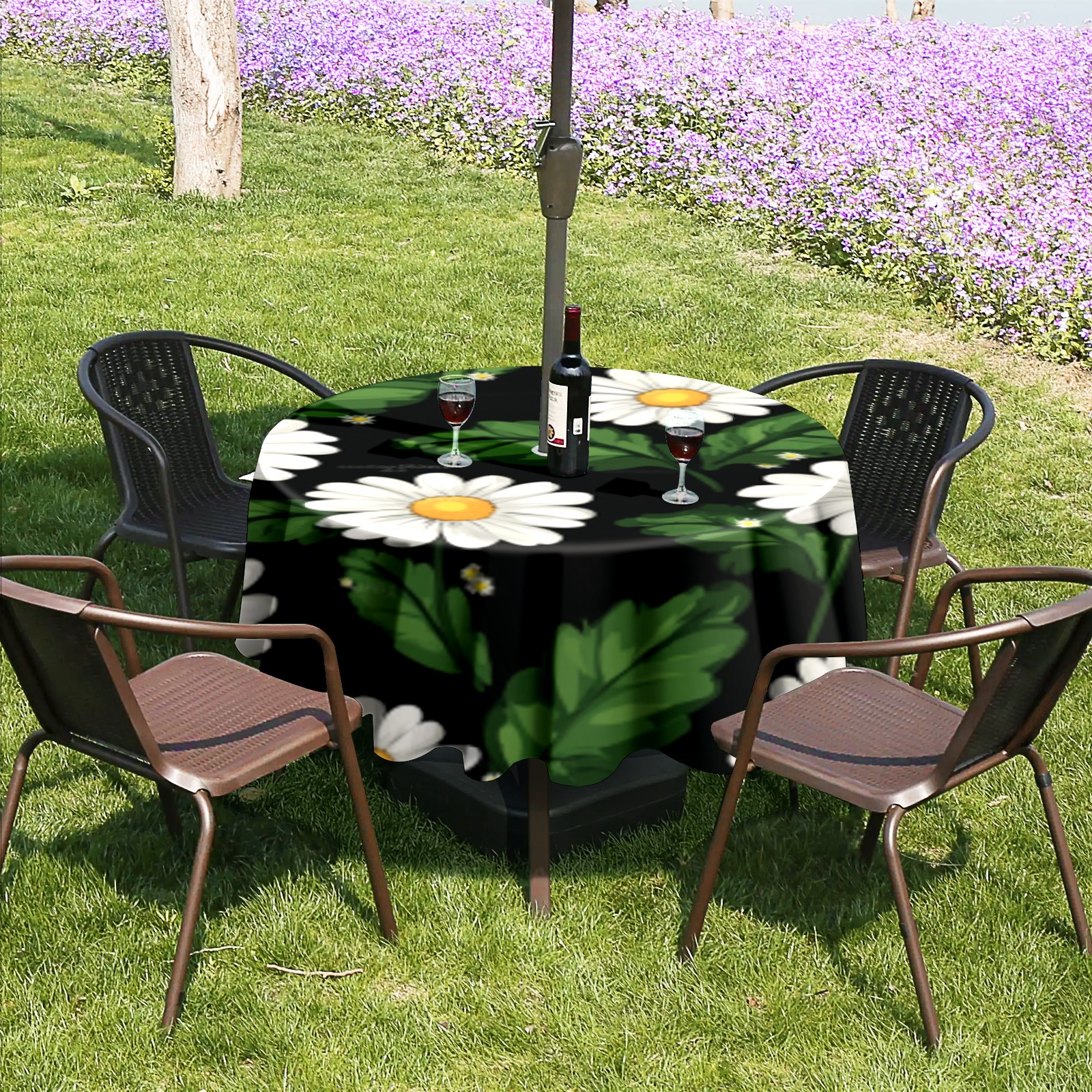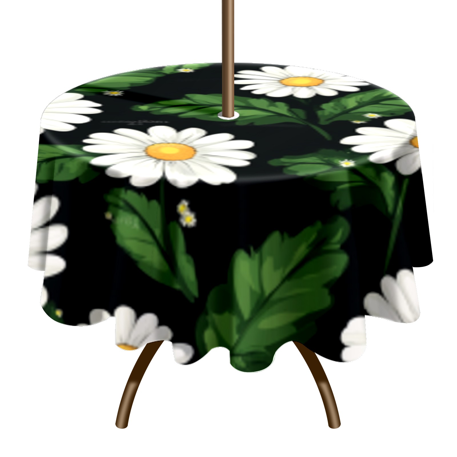 Round Tablecloth with Adjustable Zippered Umbrella Hole Polyester Table Cover Easy Install for Patio, Restaurant & Outdoor Dining Daisy Pattern (60in)