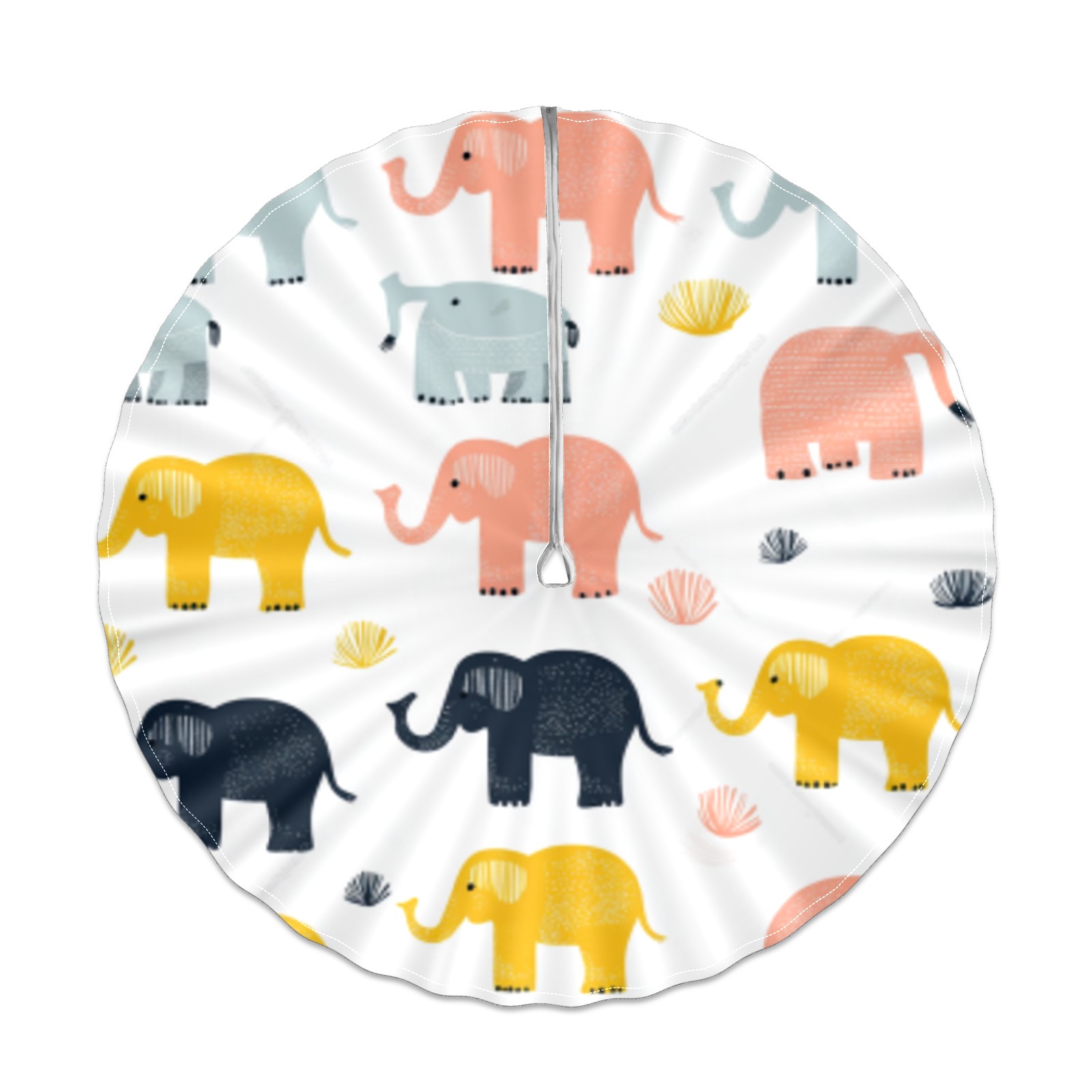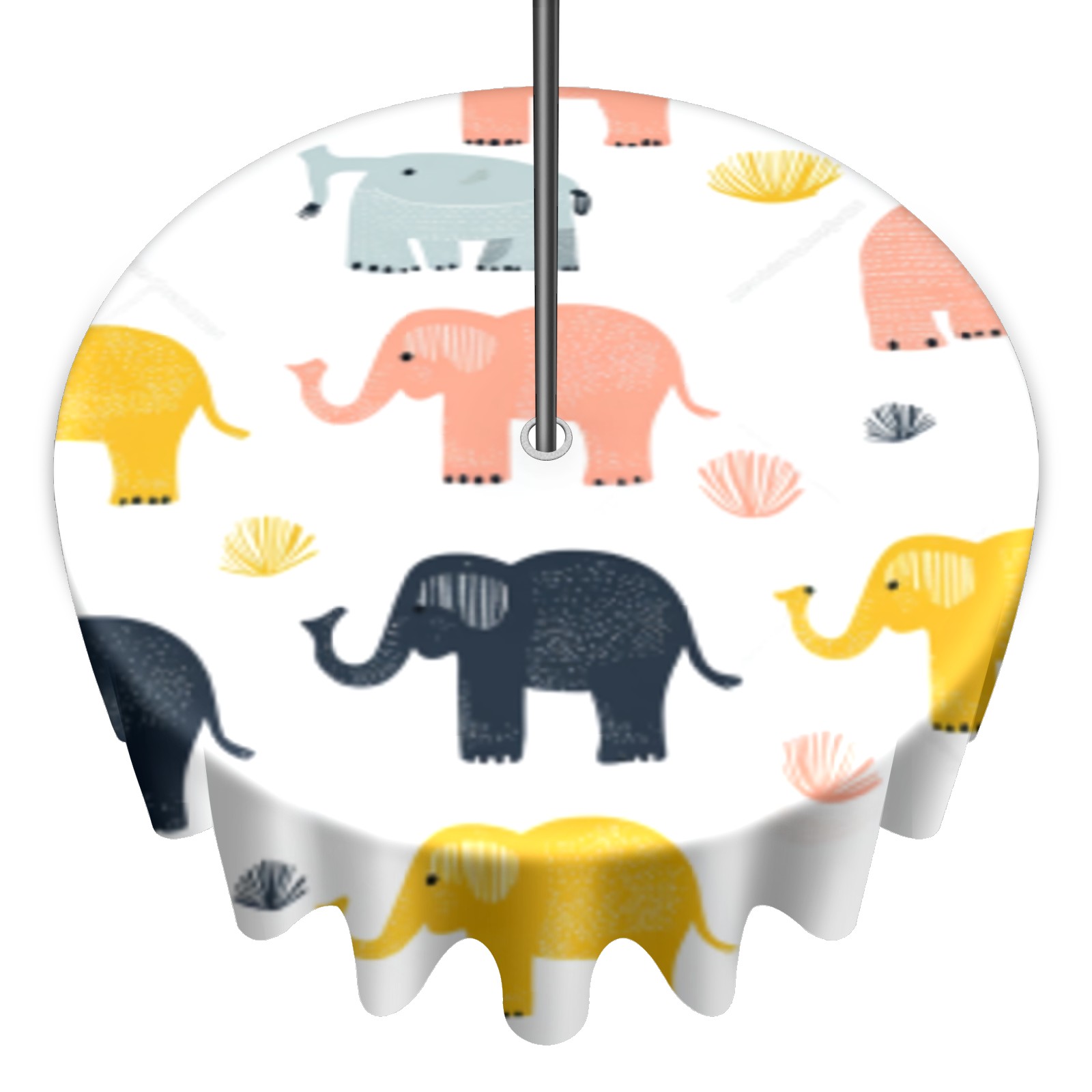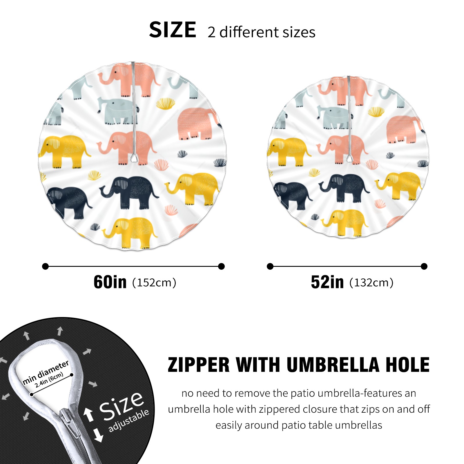 Round Tablecloth with Adjustable Zippered Umbrella Hole Polyester Table Cover Easy Install for Patio, Restaurant & Outdoor Dining Cute Elephant Pattern (60in)