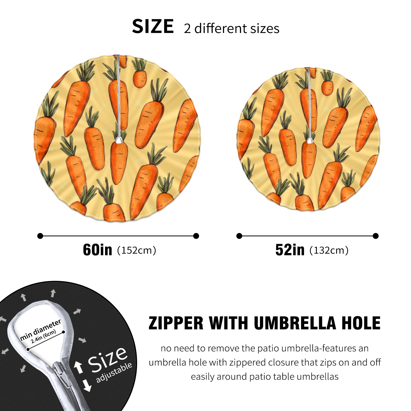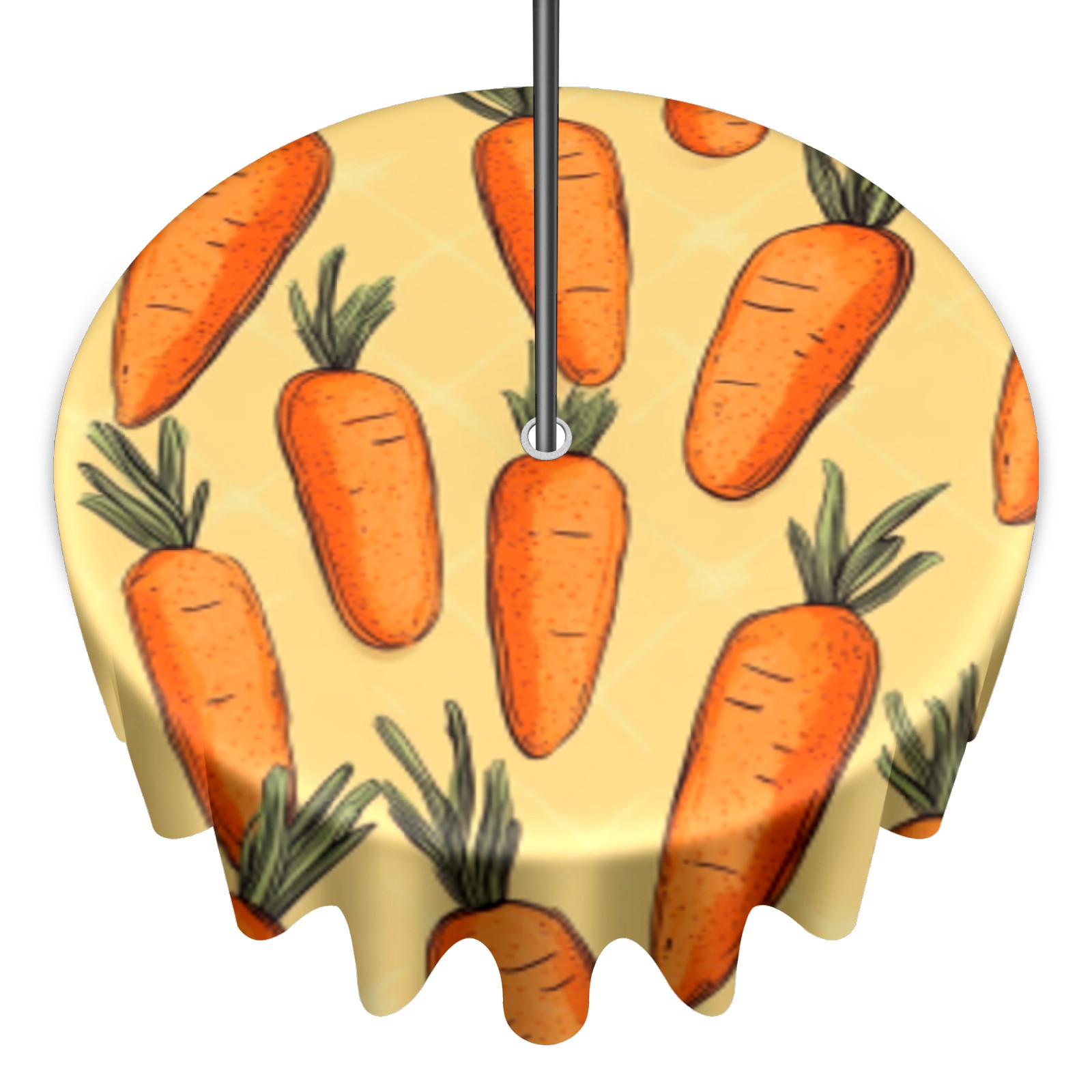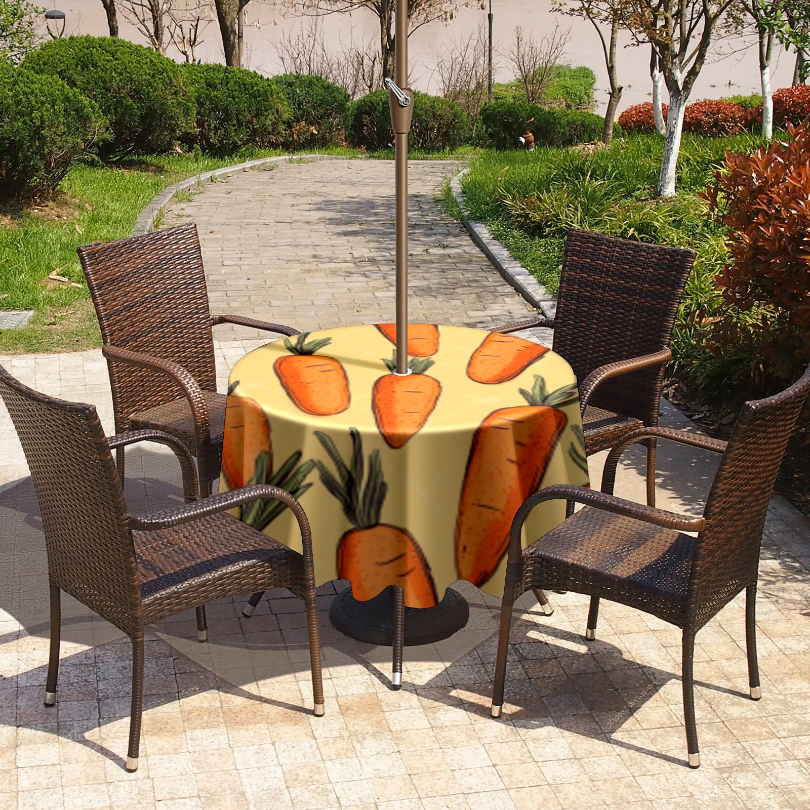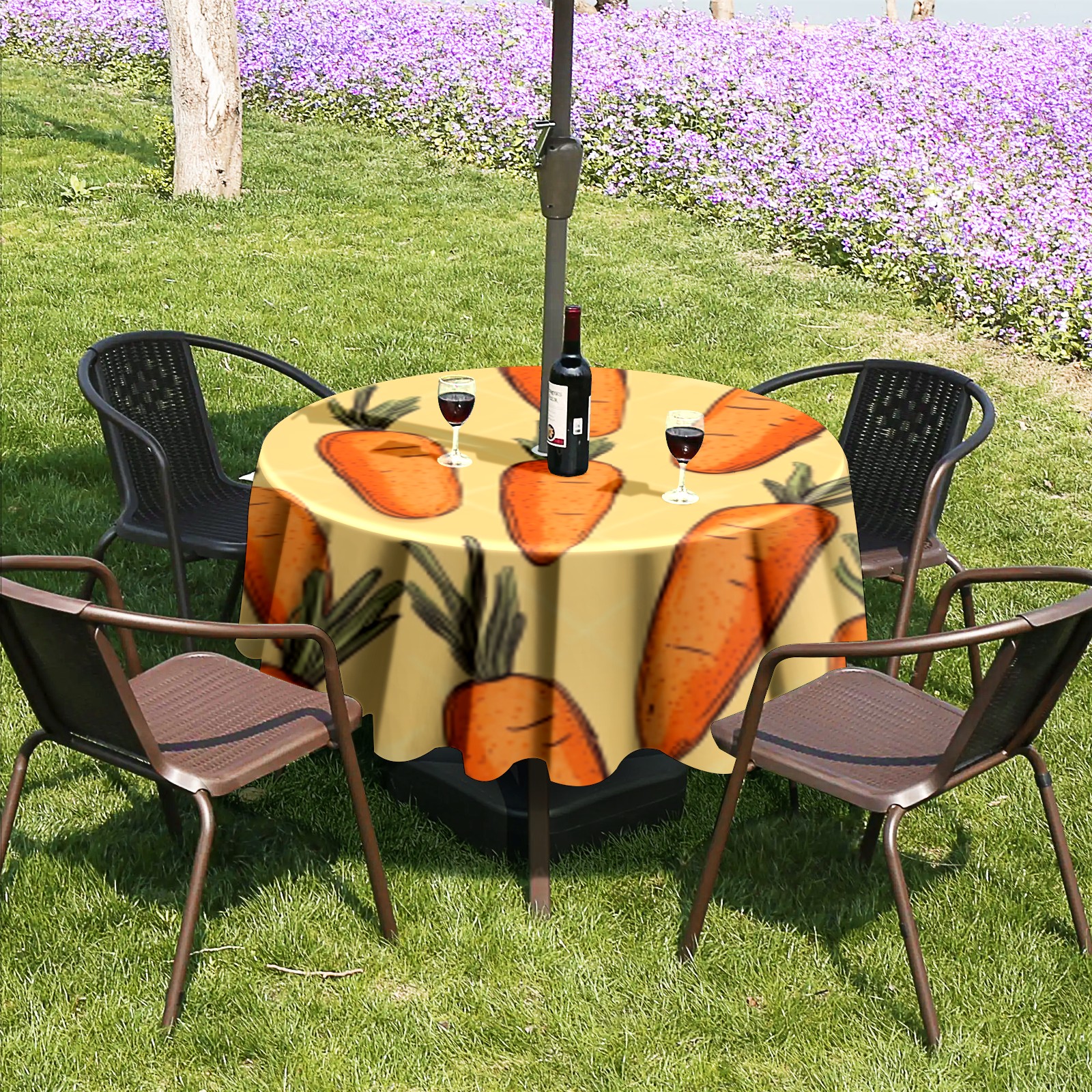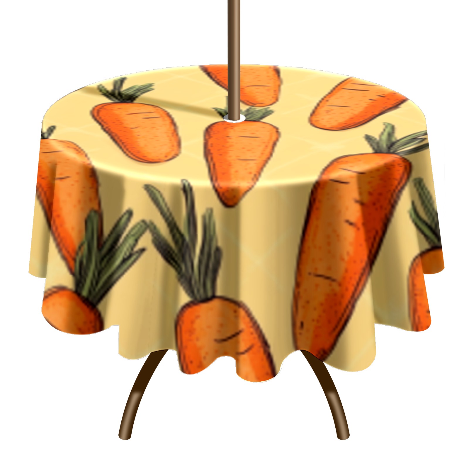 Round Tablecloth with Adjustable Zippered Umbrella Hole Polyester Table Cover Easy Install for Patio, Restaurant & Outdoor Dining Carrot Pattern (60in)