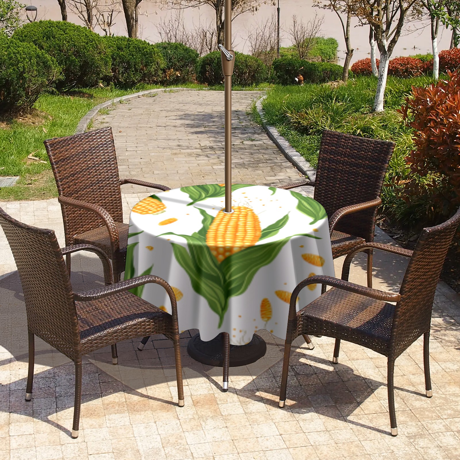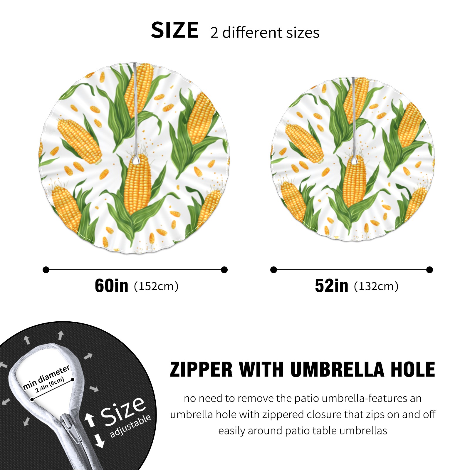 <p>Constructed with heavy-duty polyester fabric, this tablecloth withstands outdoor wear while maintaining a clean appearance. The adjustable zipper hole accommodates umbrella poles of varying thickness, allowing installation without disassembling the umbrella stand.Ideal for backyard BBQs or cafe patios, this tablecloth elevates table presentation instantly. Available in two classic sizes, the precision circular cut ensures full table coverage. Machine washable in cold water without color fading or shape distortion. The lightweight fabric folds compactly for space-efficient storage between uses.</p>