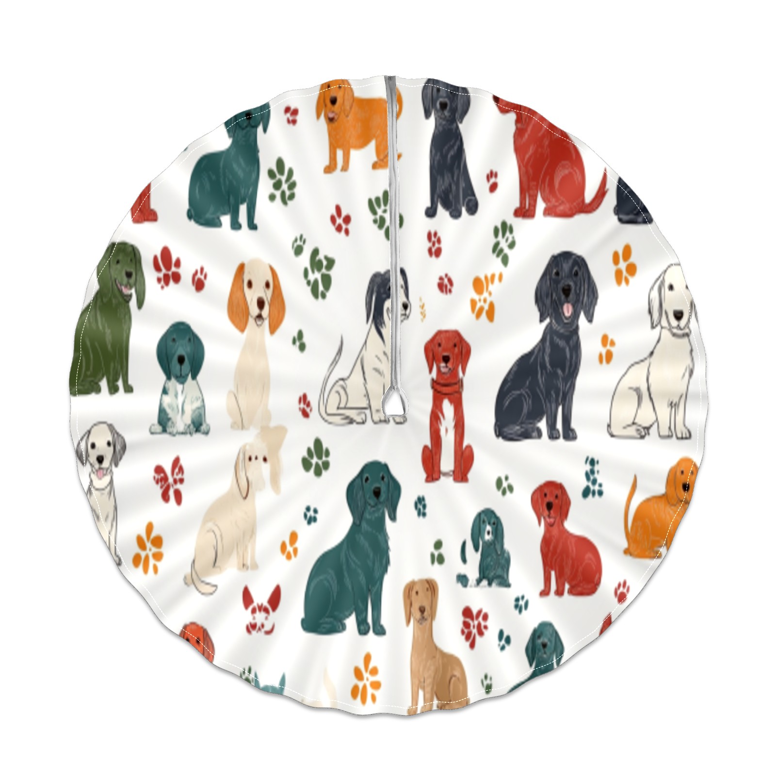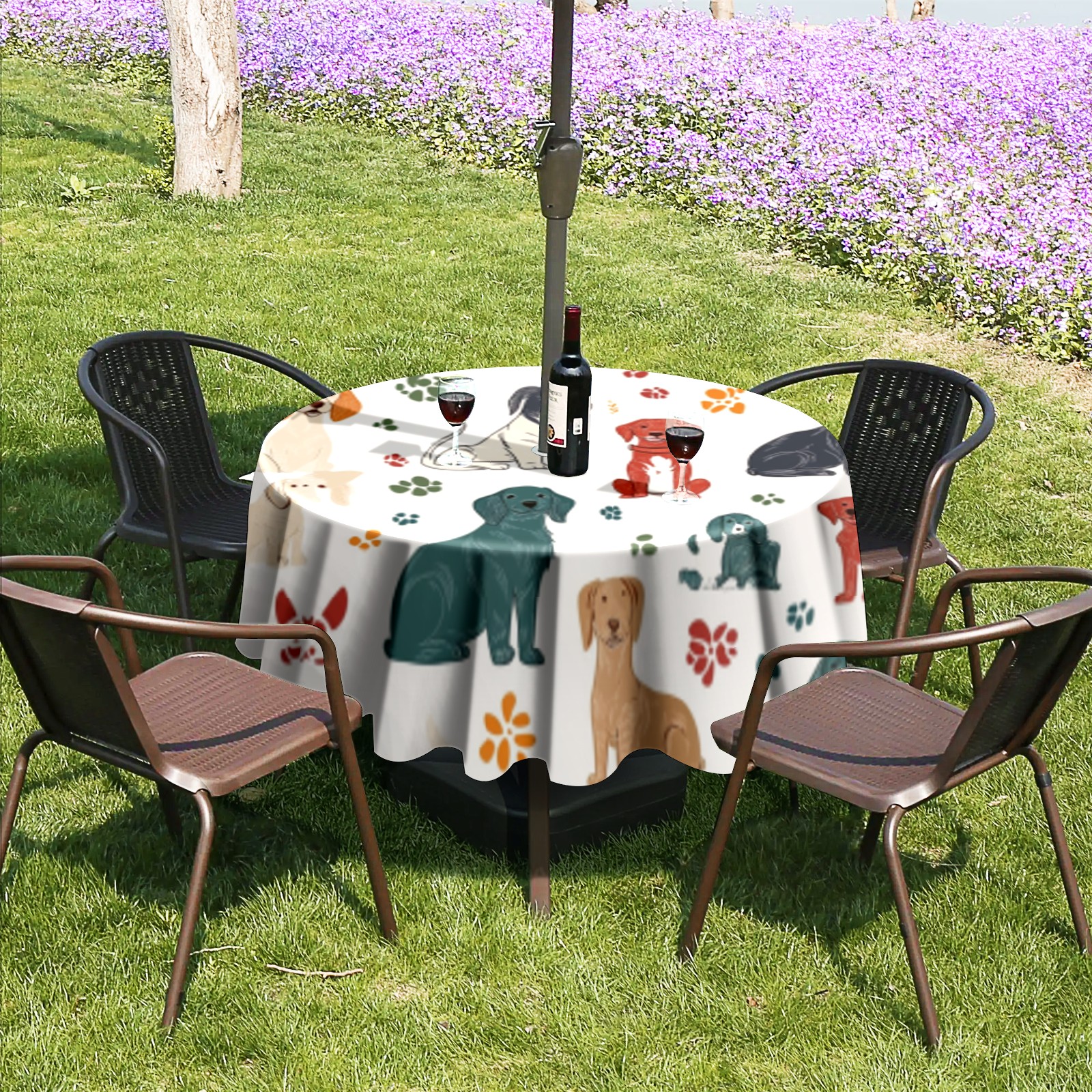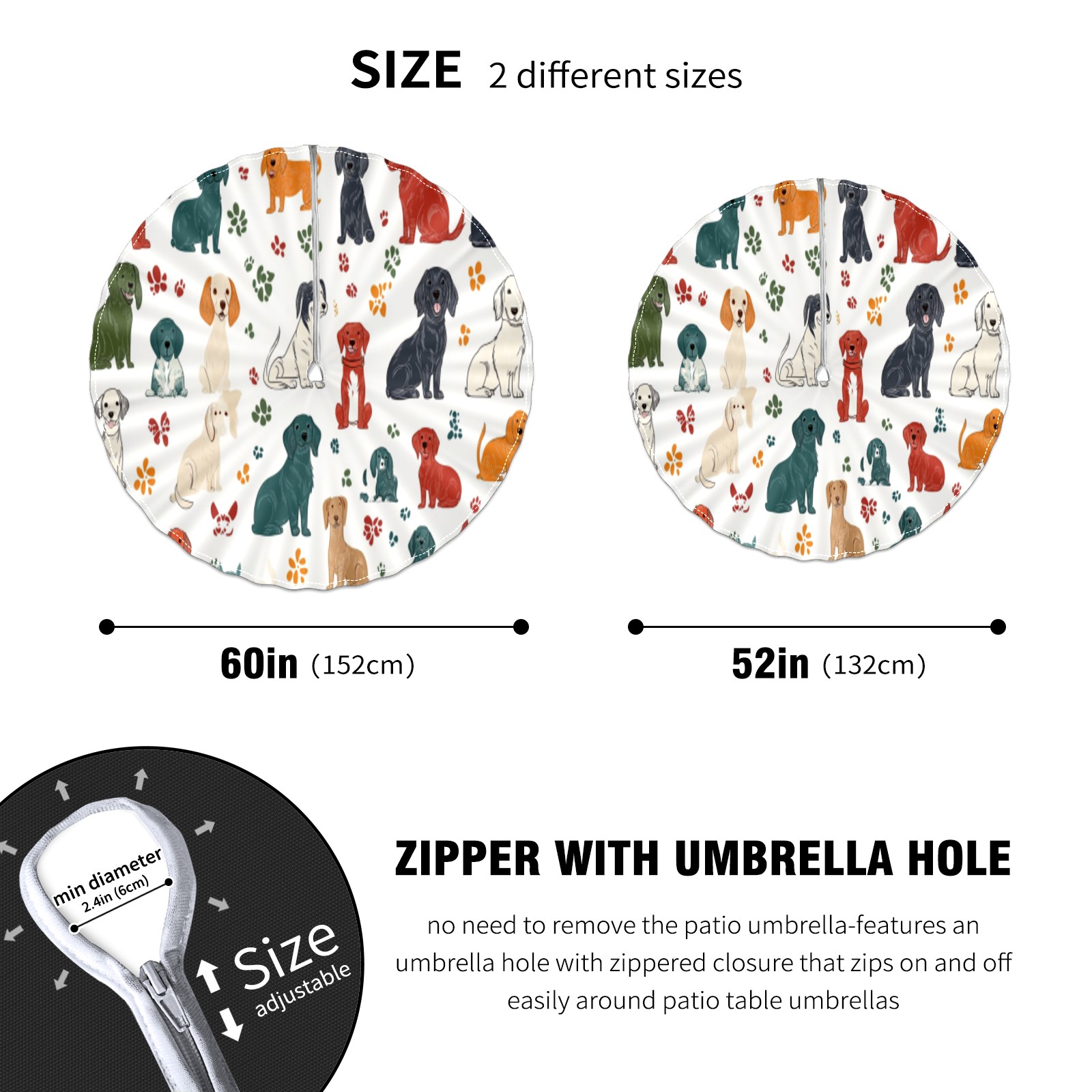 Round Tablecloth with Adjustable Zippered Umbrella Hole Polyester Table Cover Easy Install for Patio, Restaurant & Outdoor Dining Colorful Dog Pattern (60in)