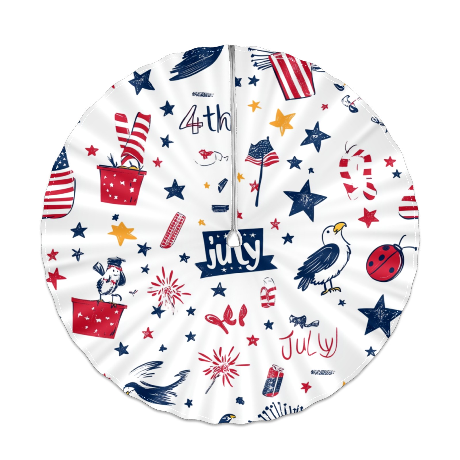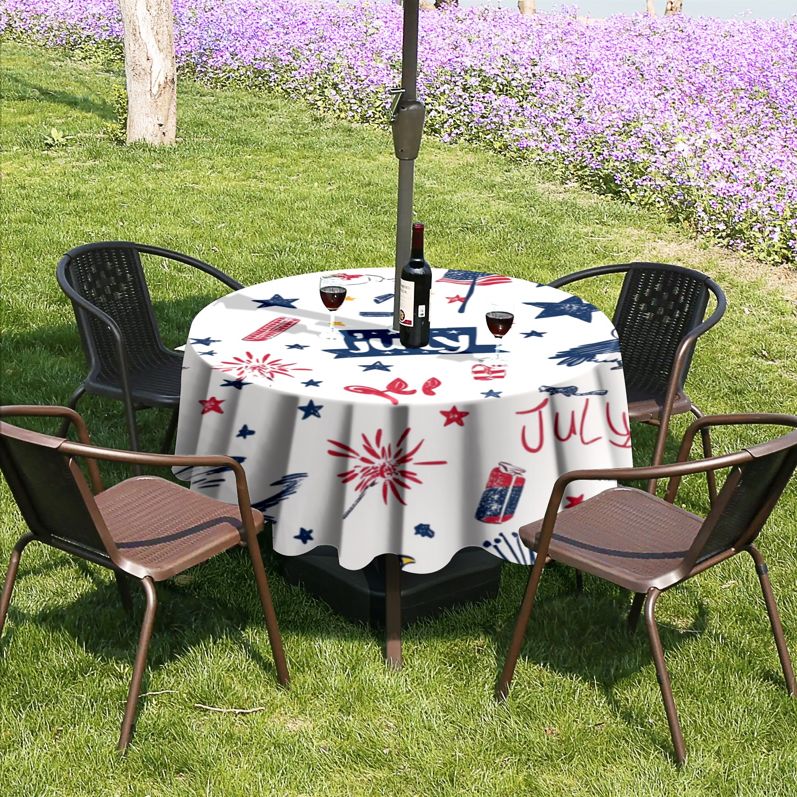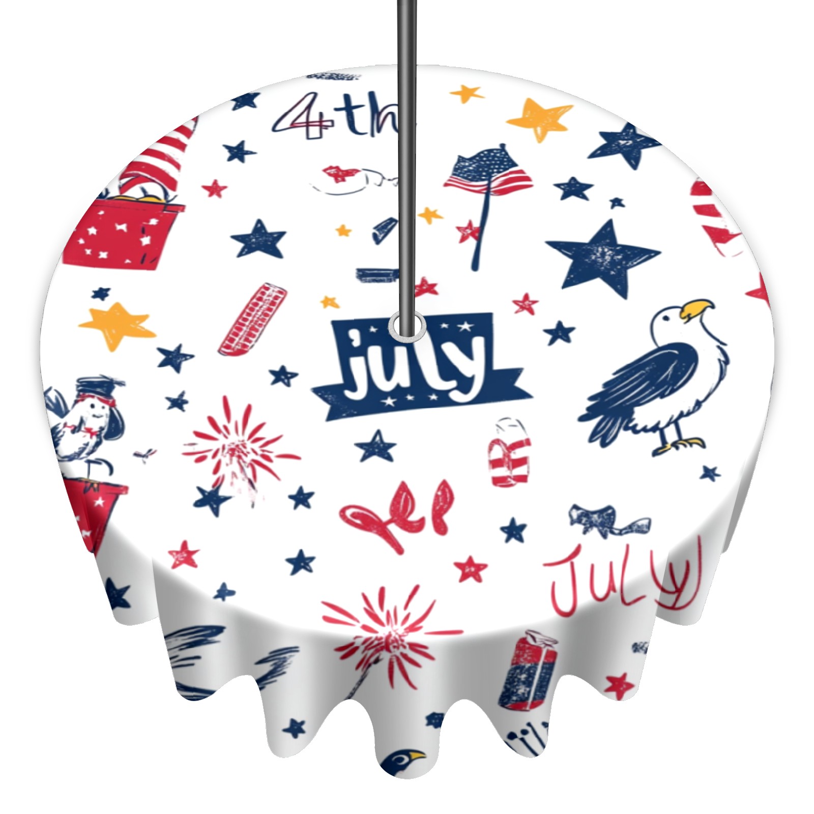 Round Tablecloth with Adjustable Zippered Umbrella Hole Polyester Table Cover Easy Install for Patio, Restaurant & Outdoor Dining July Cute Pattern (60in)