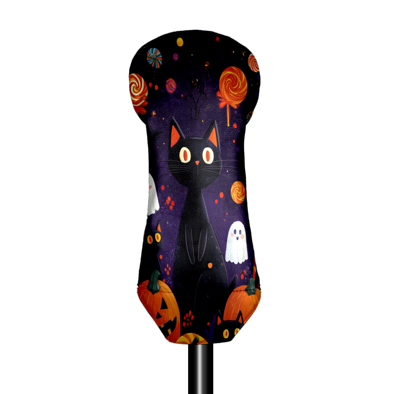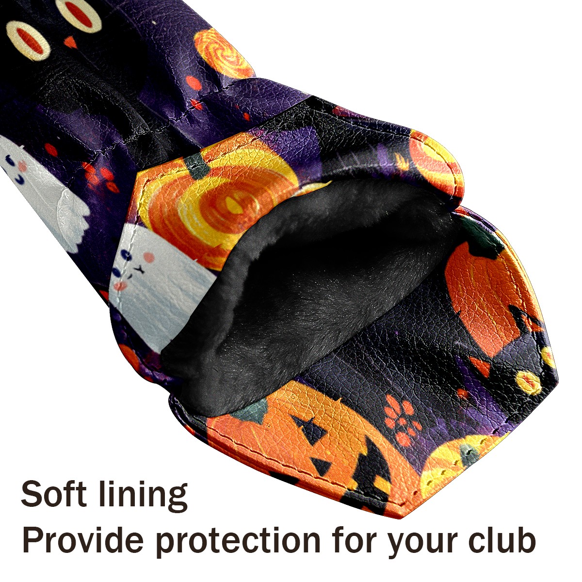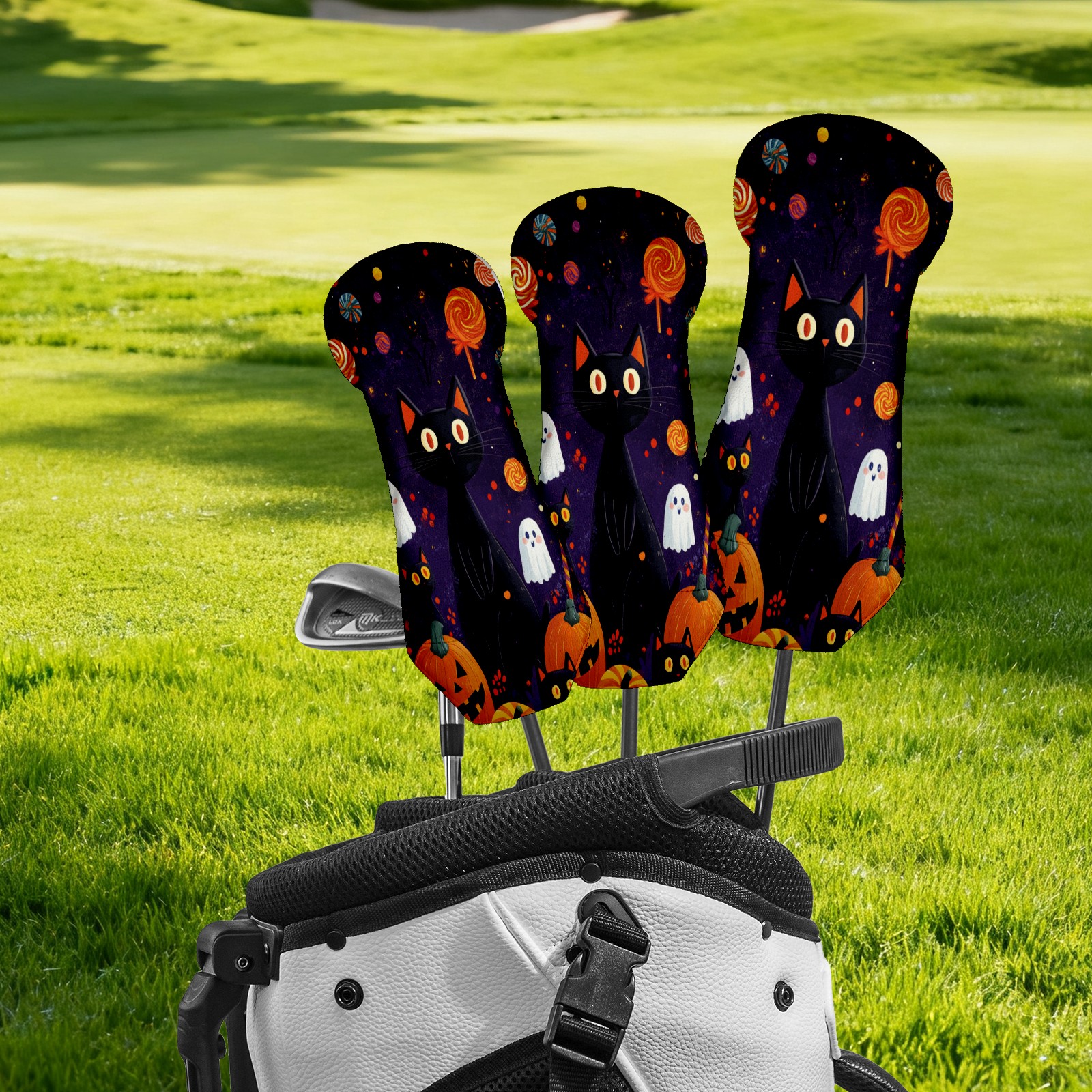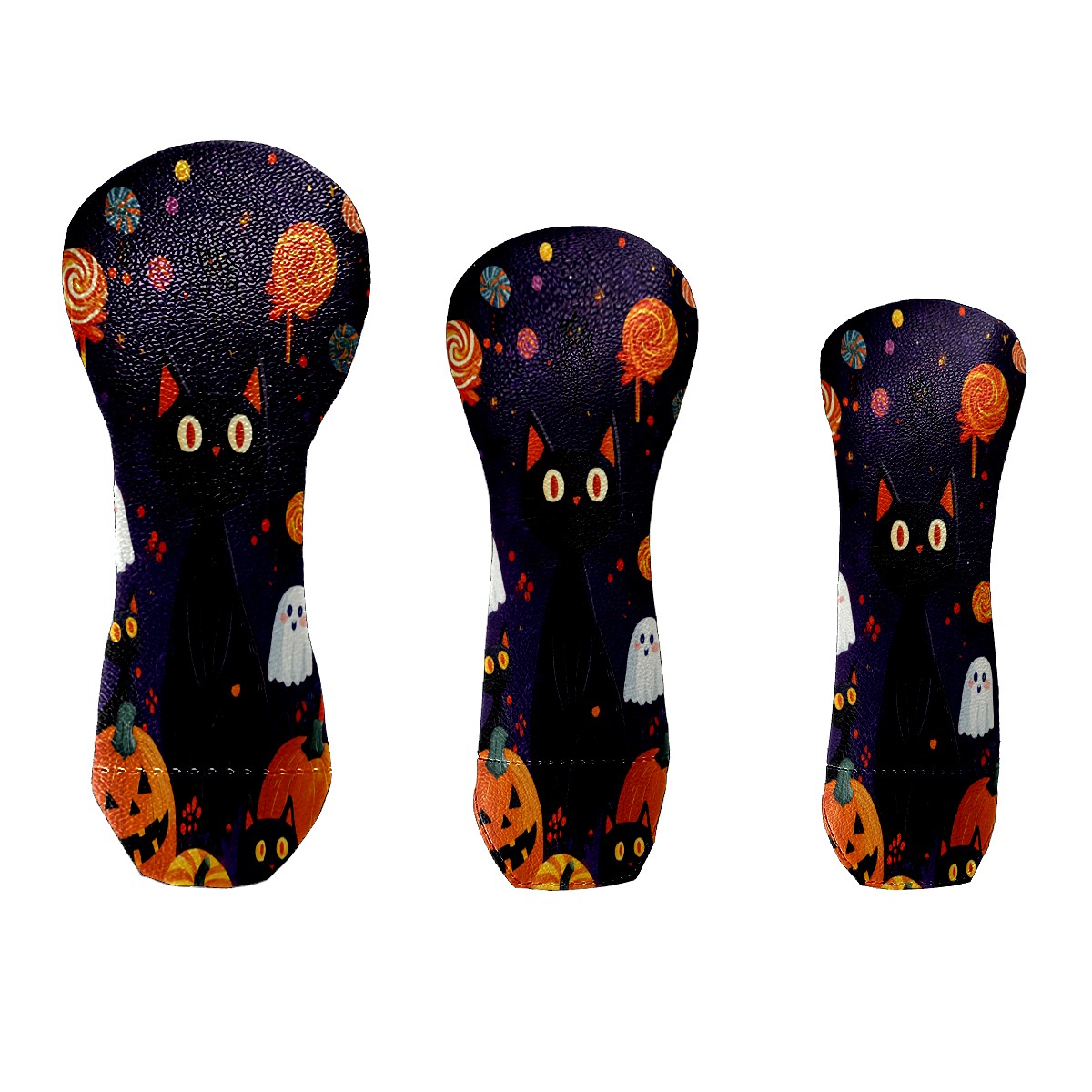 3 Pack PU Leather Golf Club Head Covers - Driver, Fairway Wood & Hybrid, Funny Golf Accessories, Ideal Golf Gift Pumpkin Cat Purple